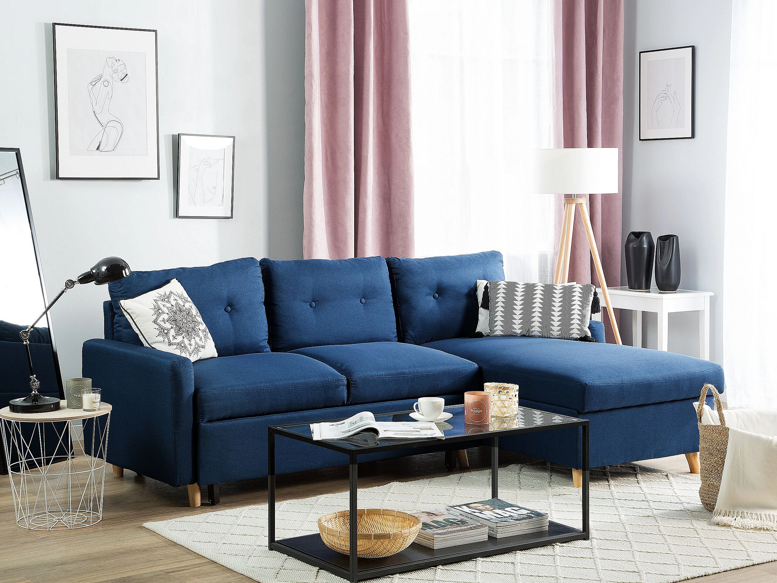 Beliani - Canapé angle à gauche - Flakk - En Tissu, Bleu Marine