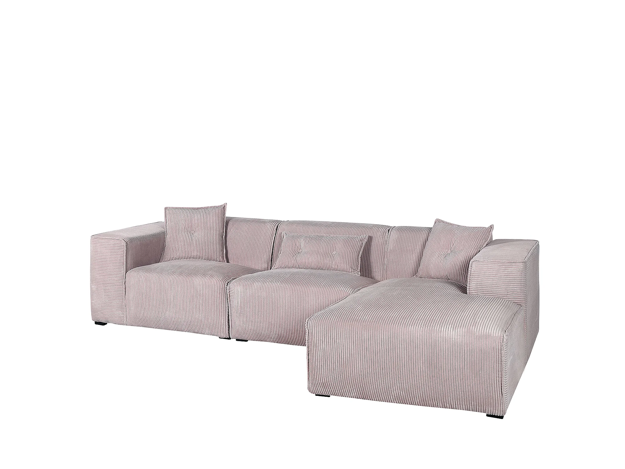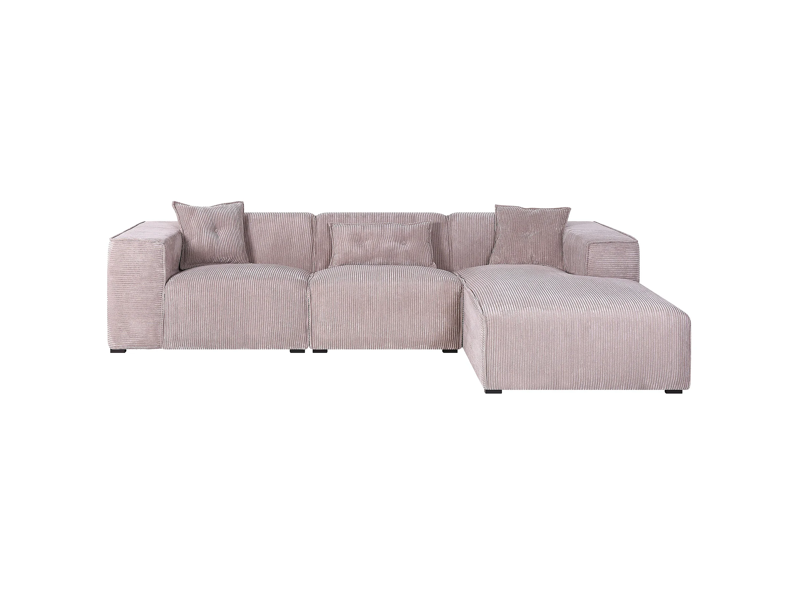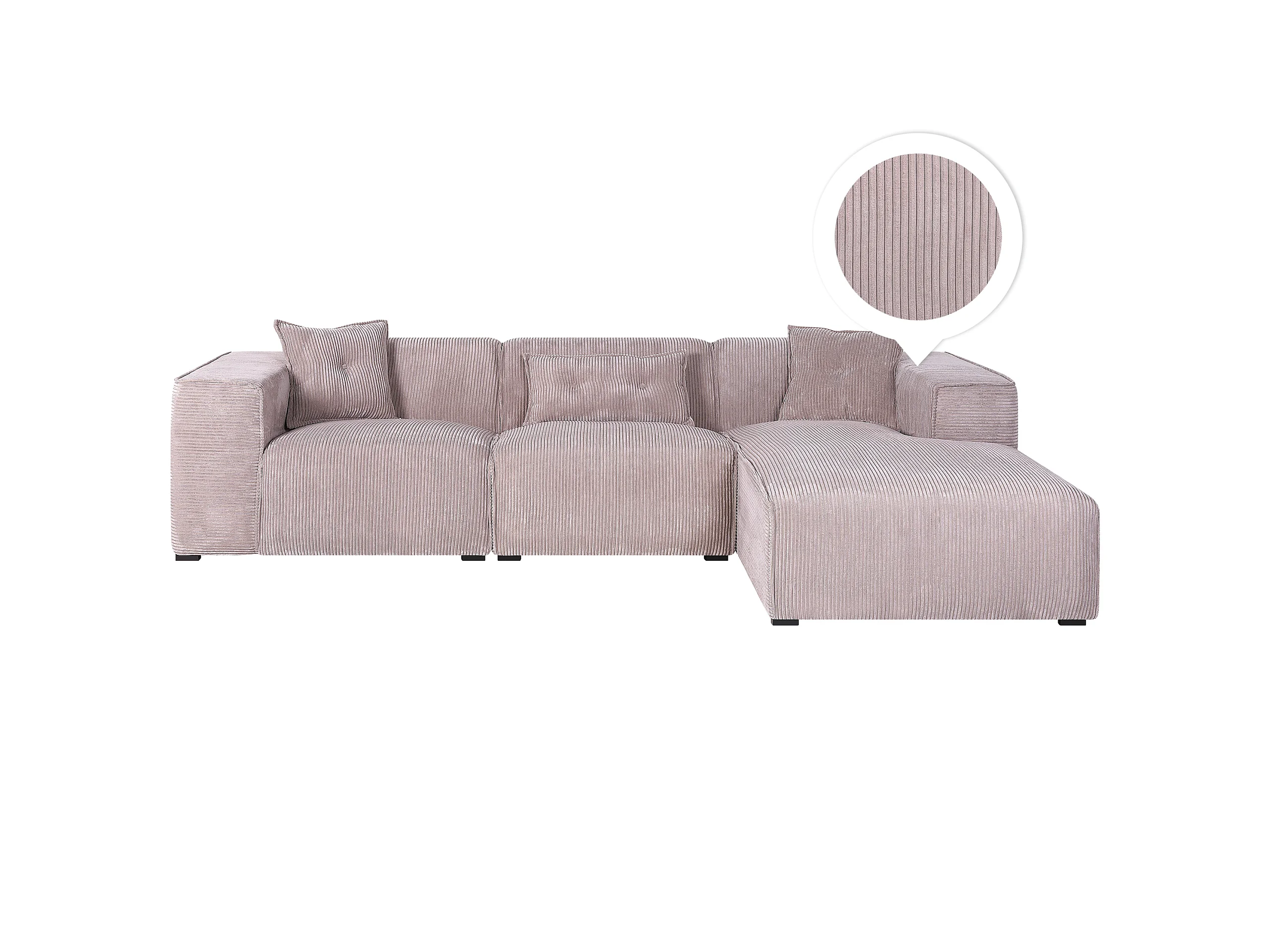 Canapé d'Angle 3 Places - Dolva - Côté Gauche, en Velours Côtelé, Gris Taupe