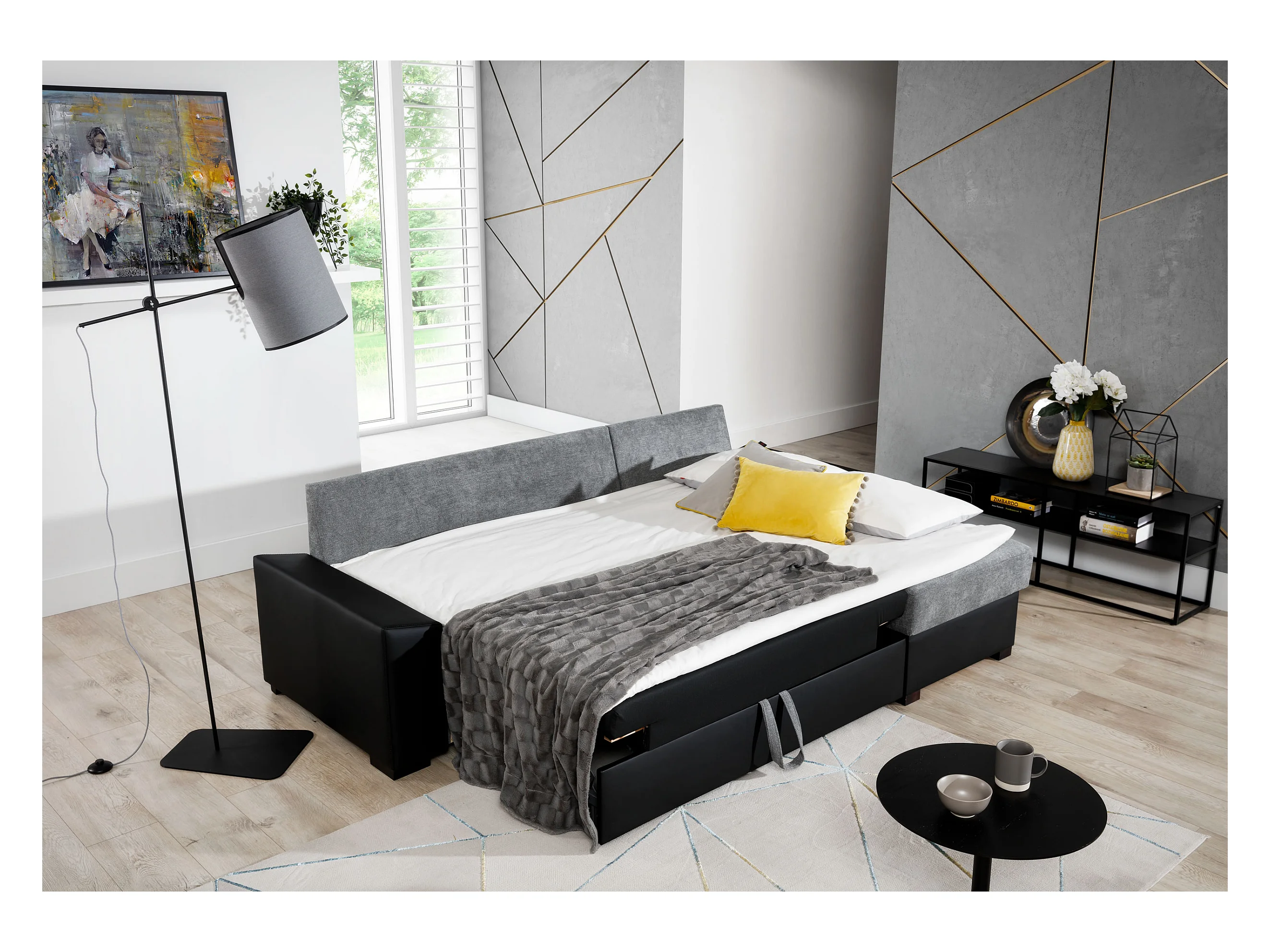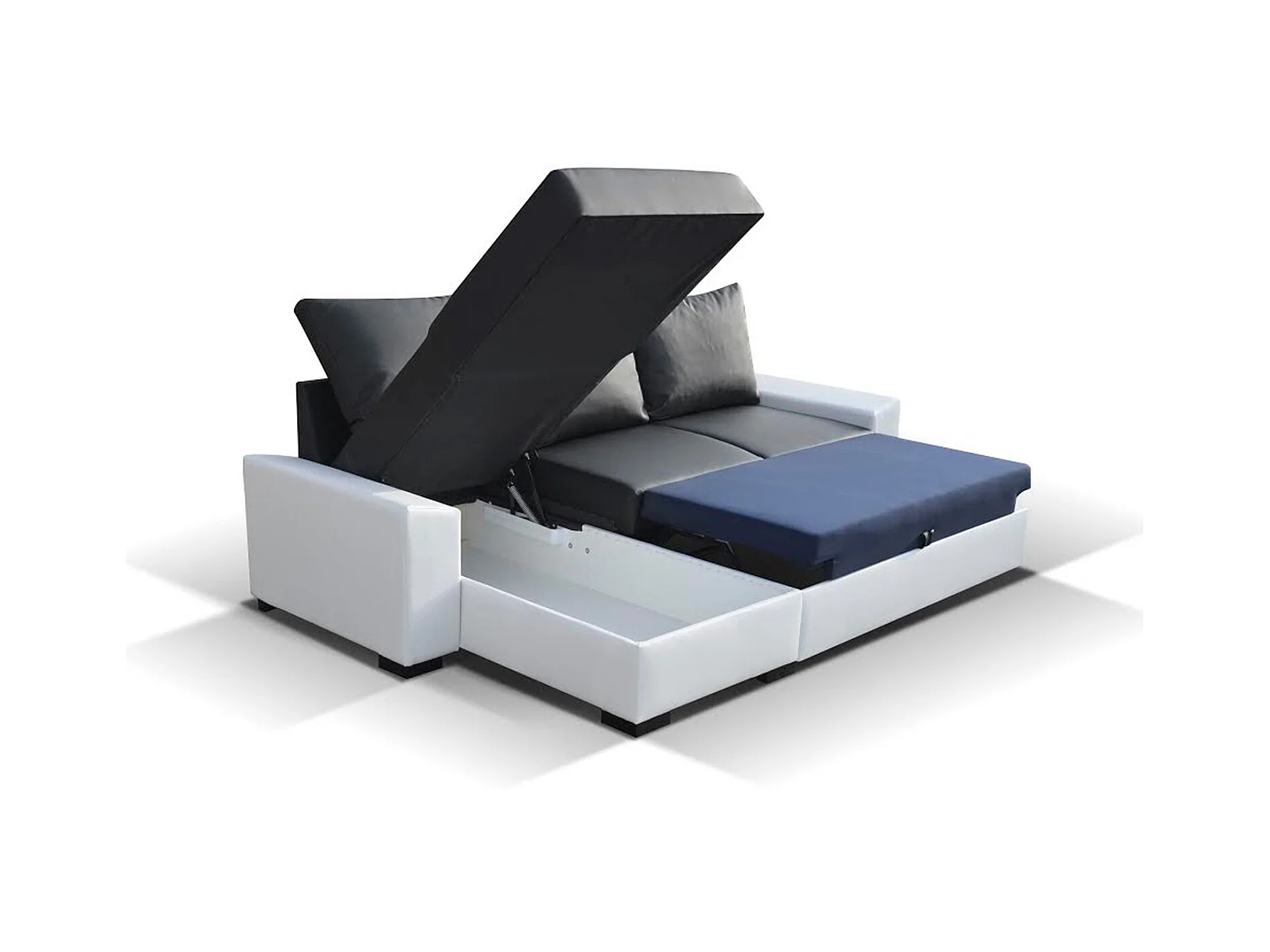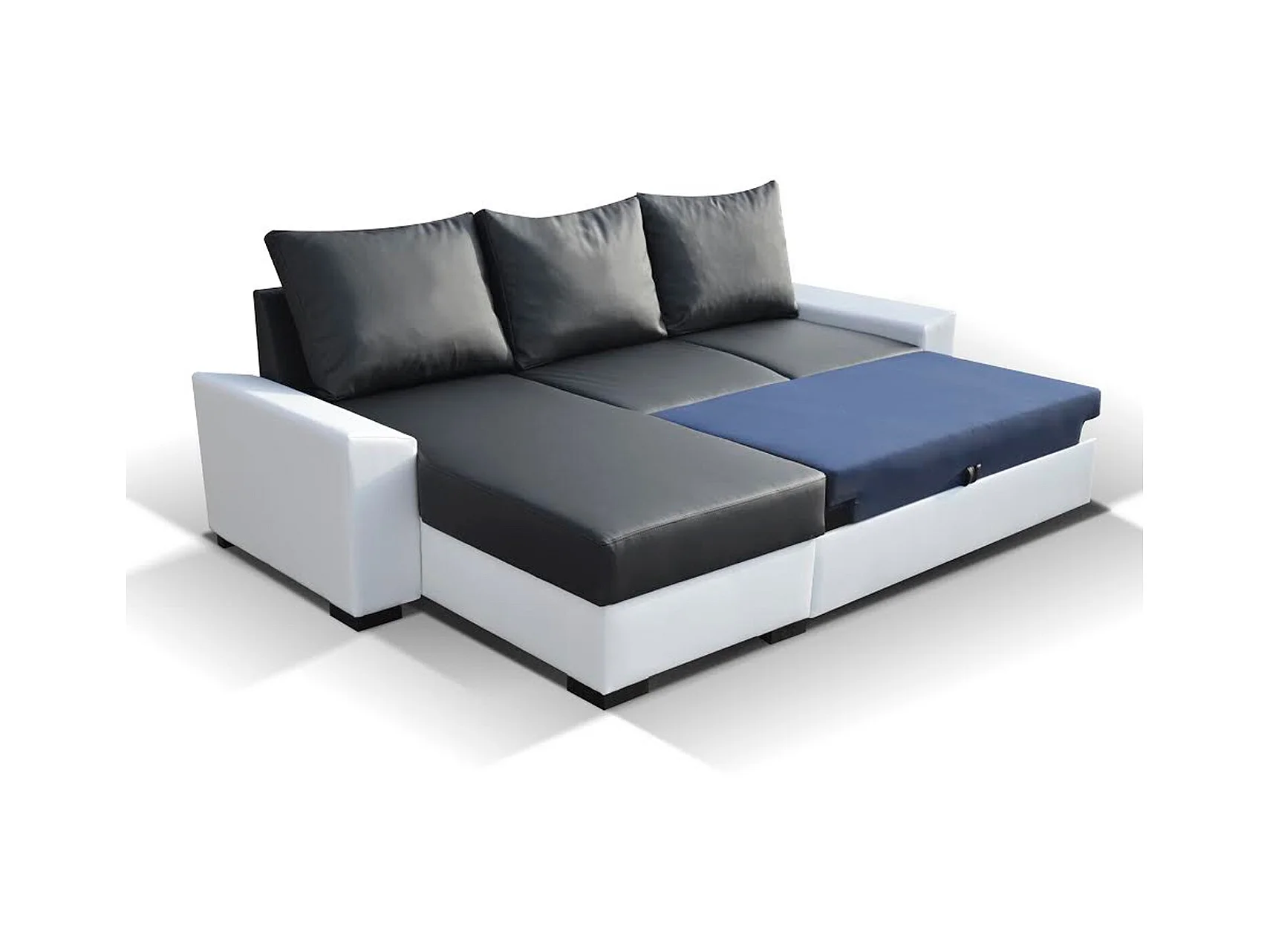 Canapé angle convertible et réversible simili blanc et tissu vert clair Luzo 245cm