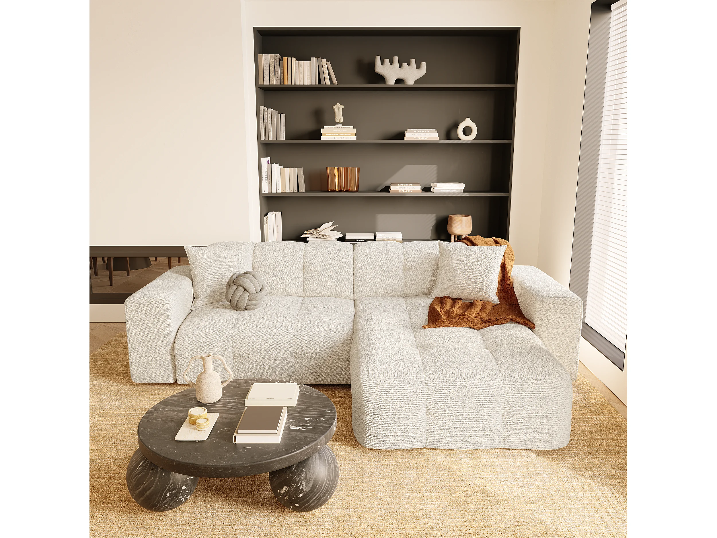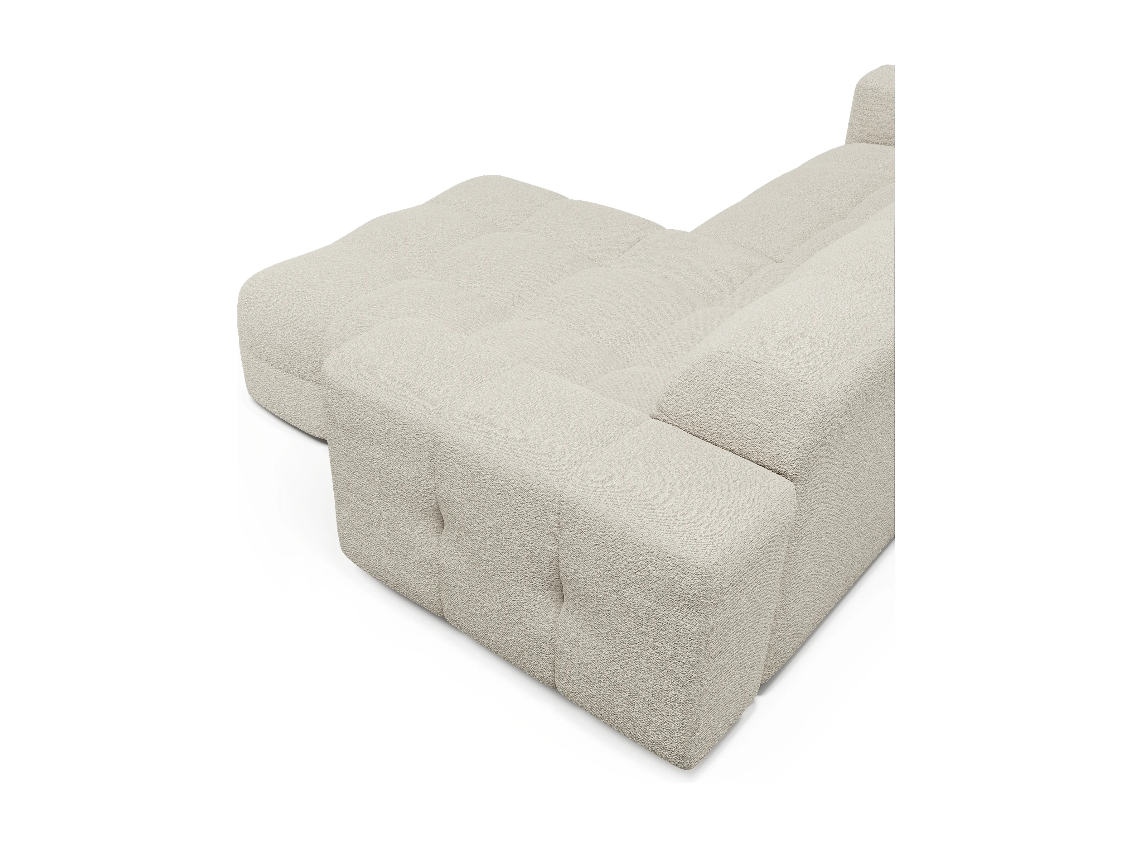 Canapé angle droit 5 places tissu bouclette crème 230cm