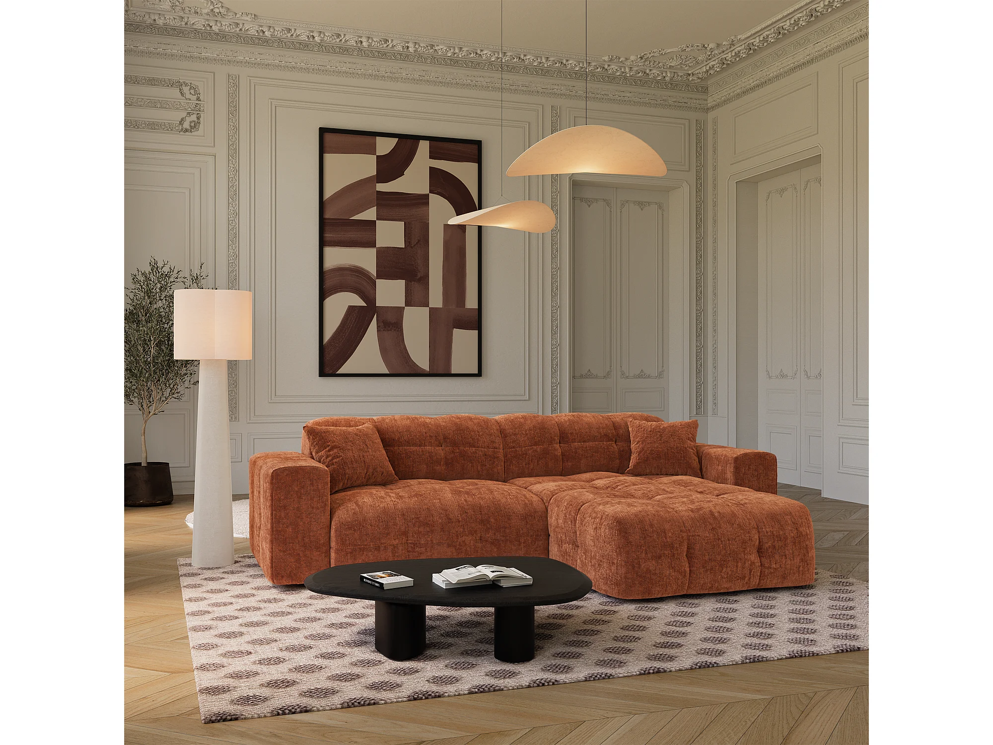Canapé angle droit COCOON en Velours gaufré Terracotta