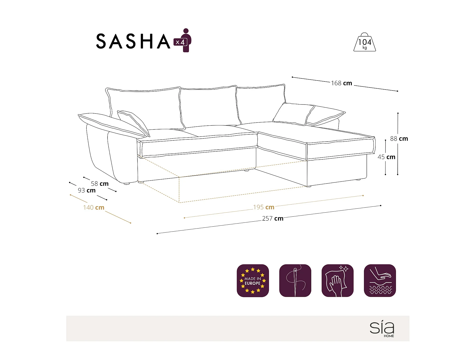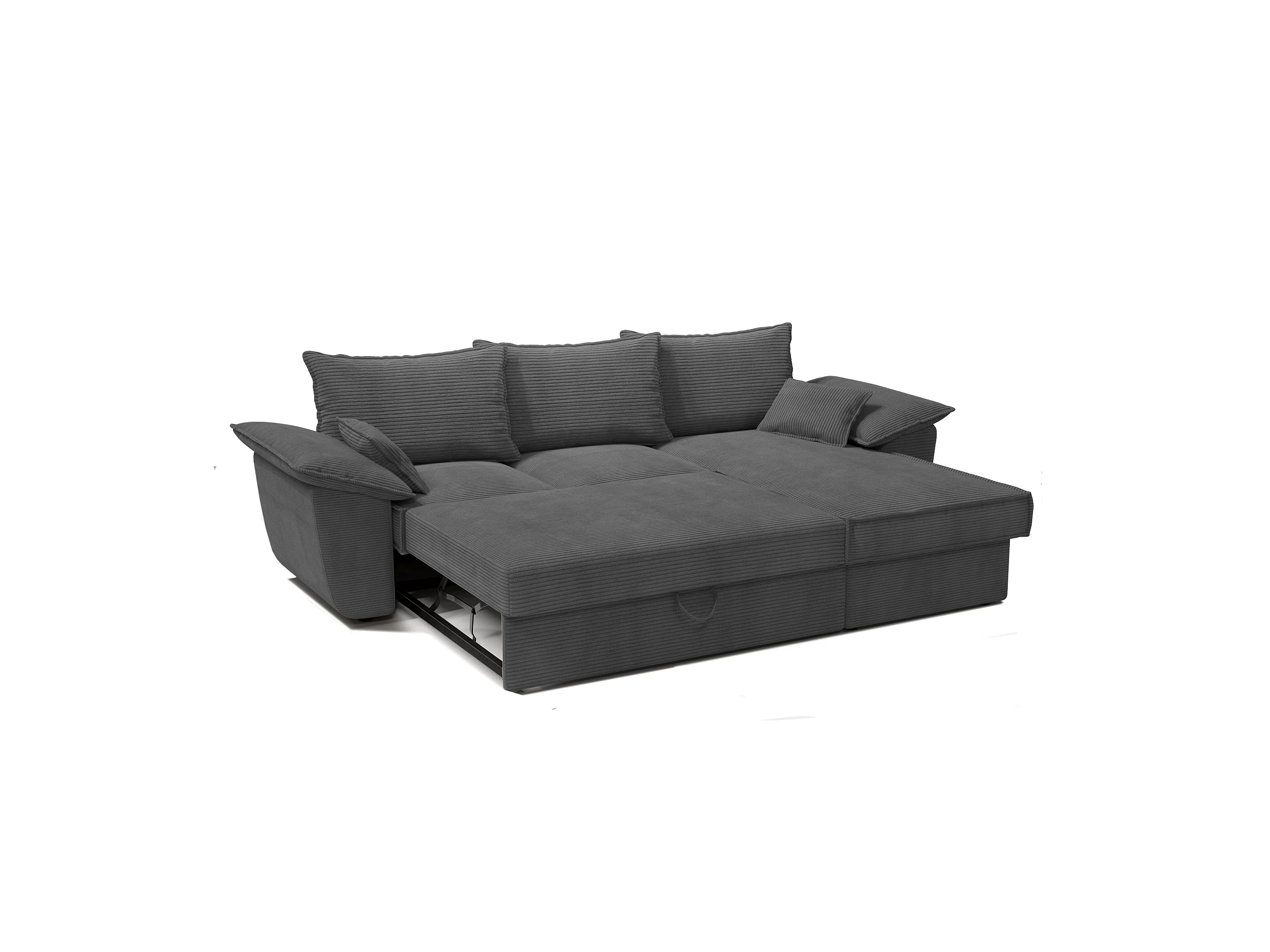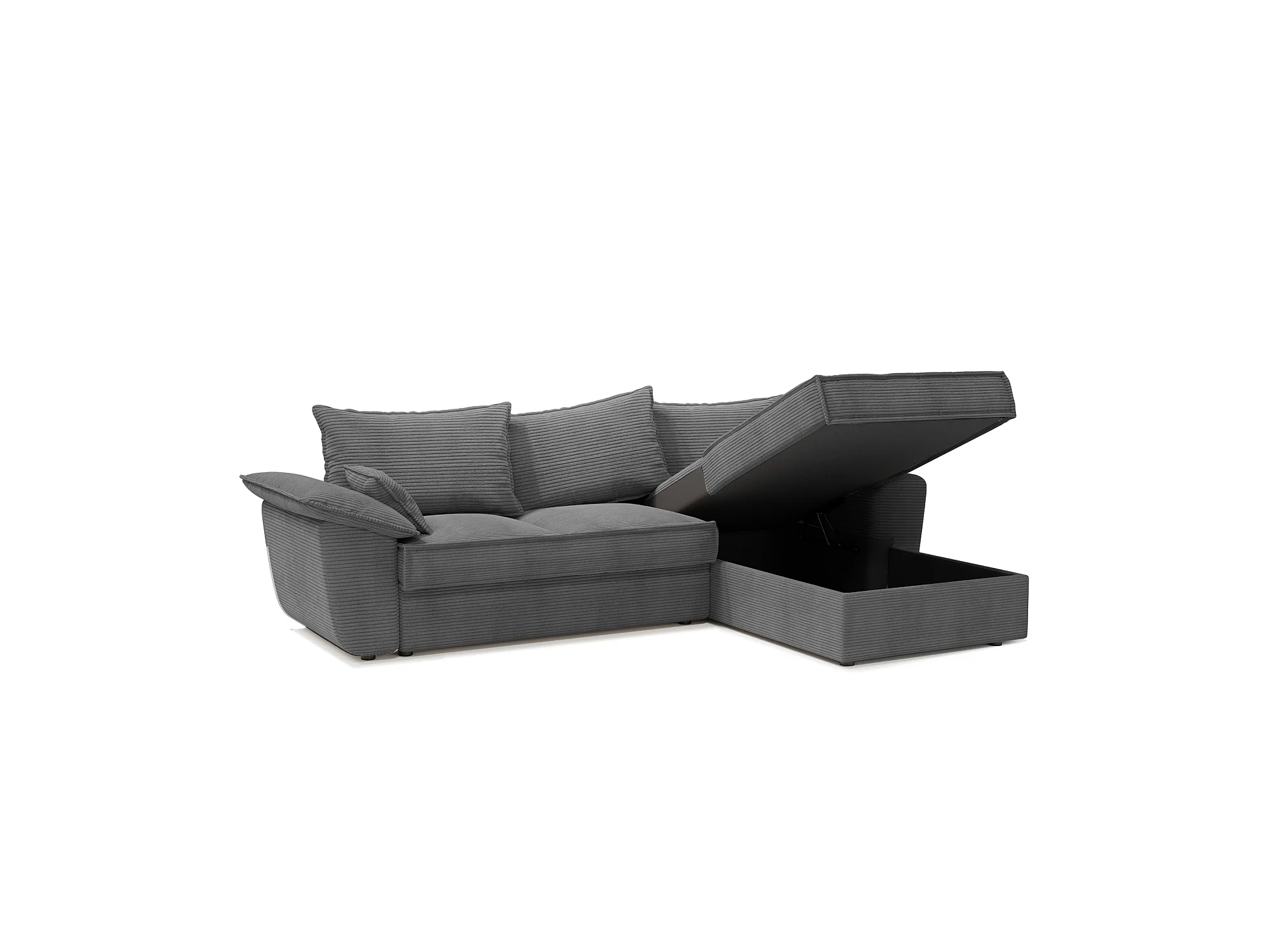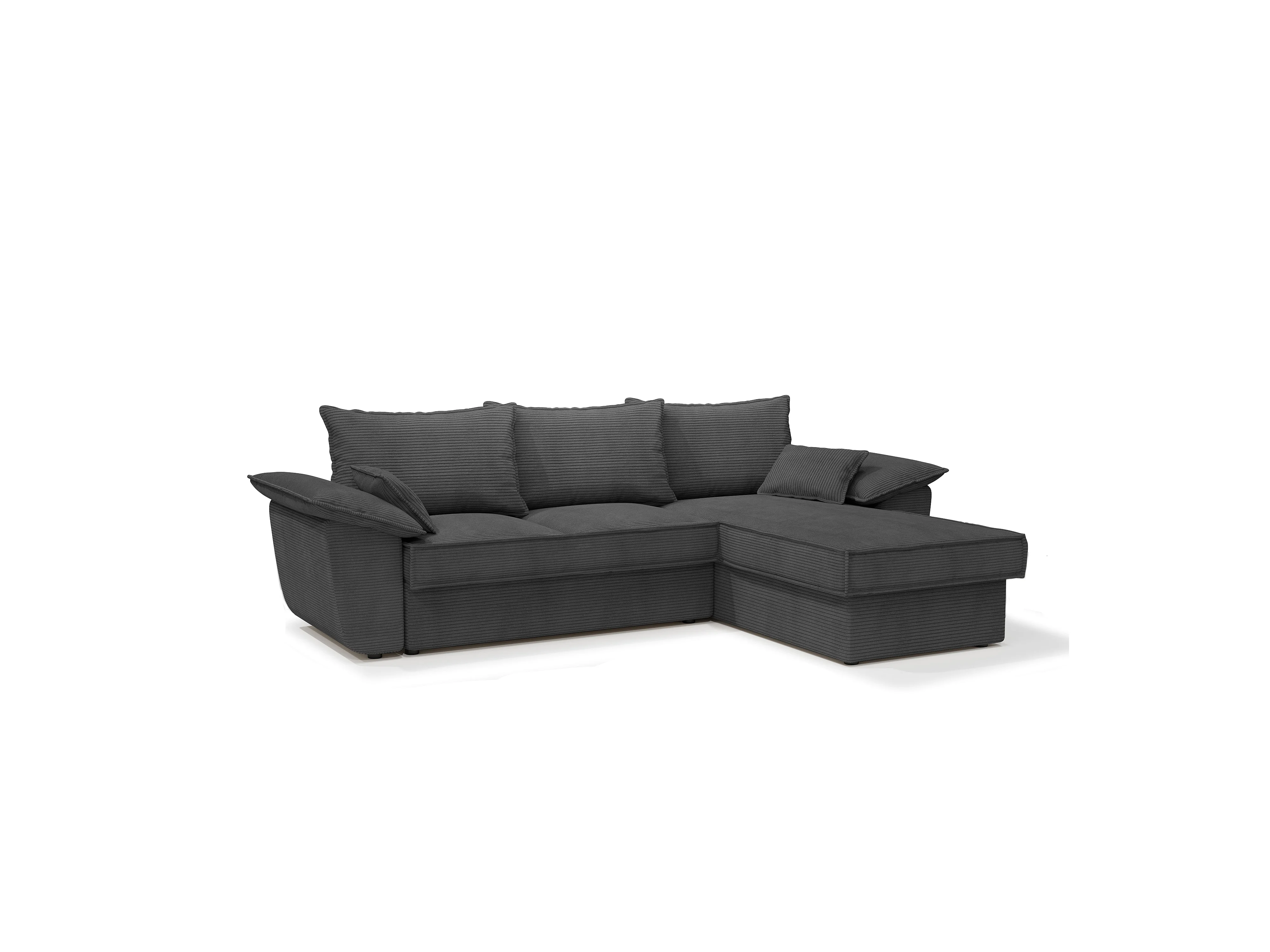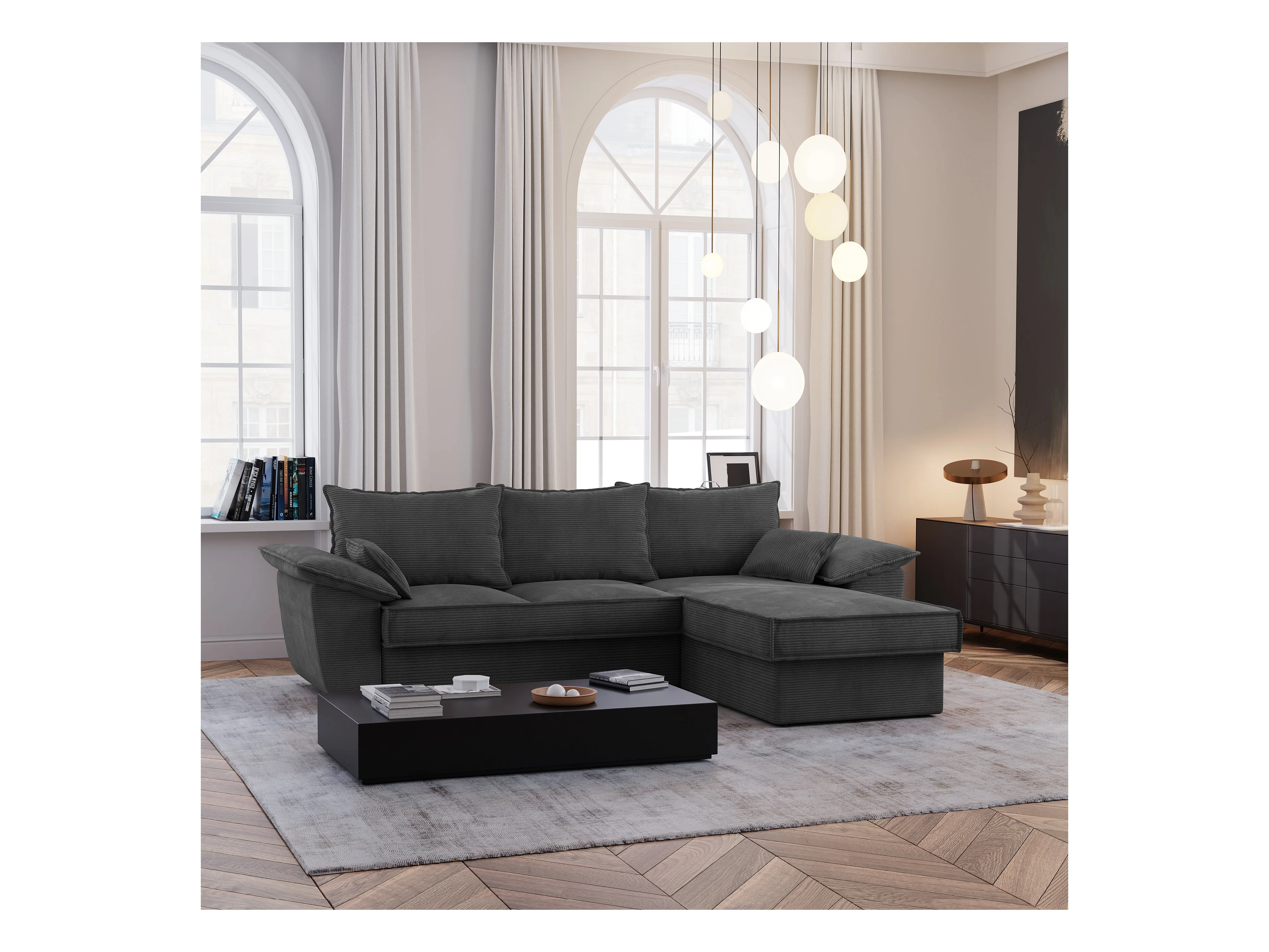 Canapé angle droit coffre convertible velours côtelé anthracite 257cm SASHA