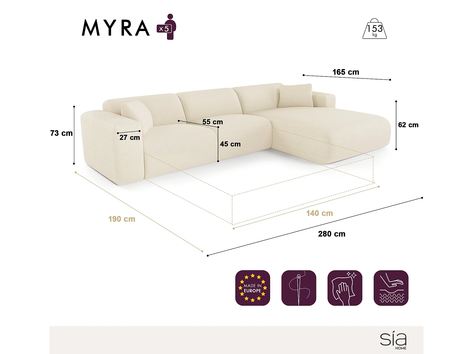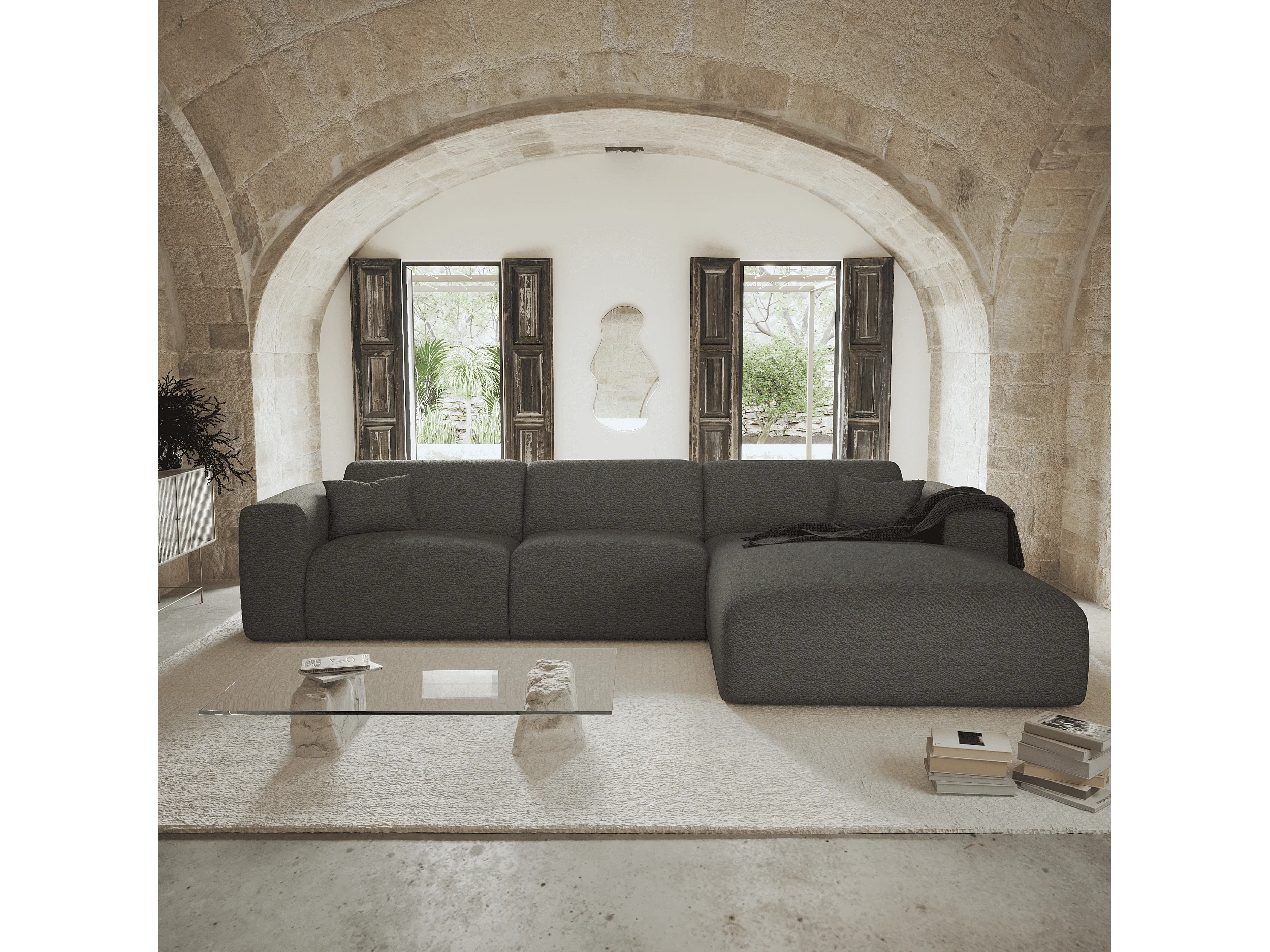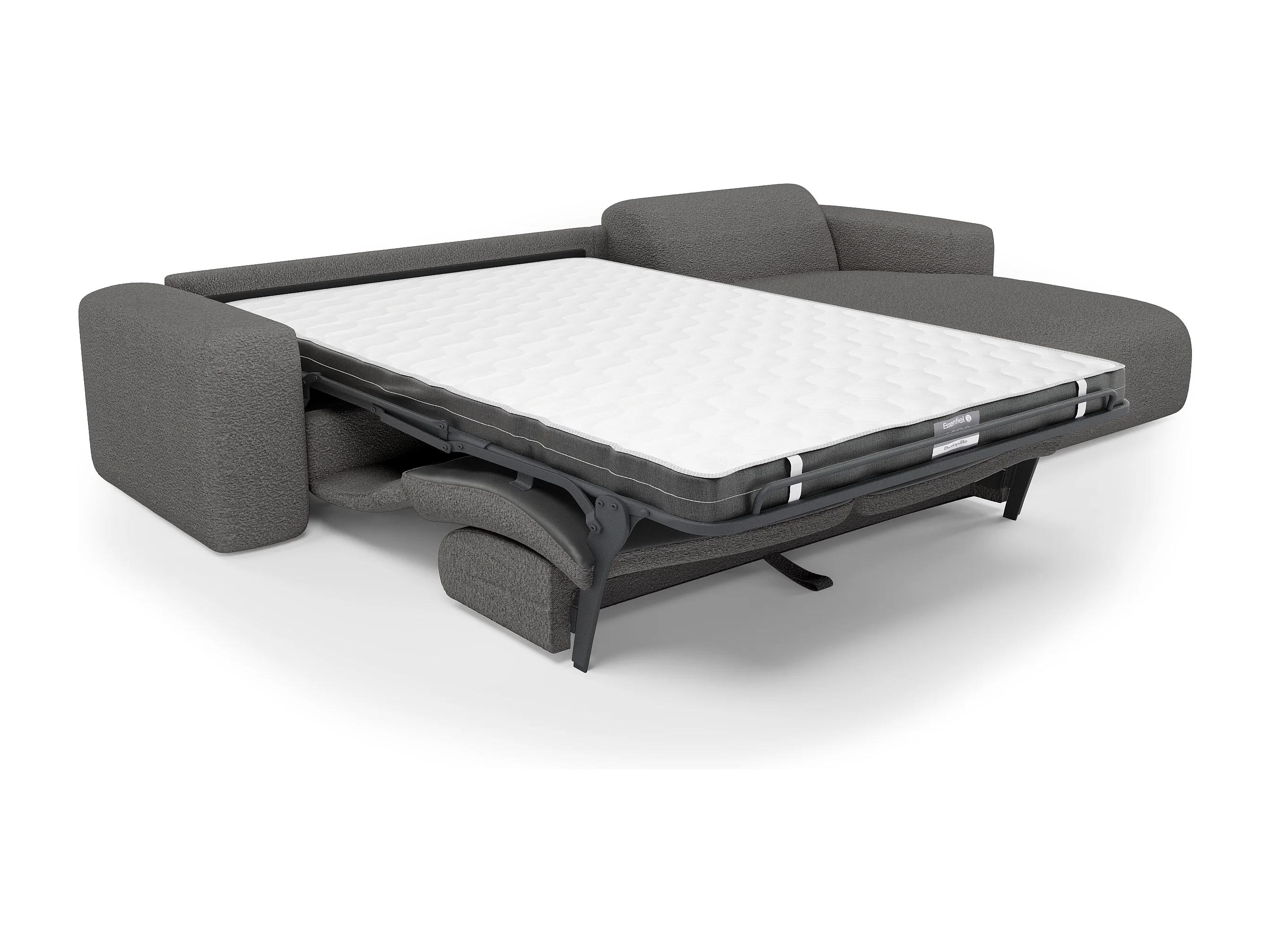 Canapé angle droit convertible dunlopillo 5 places bouclette gris MYRA