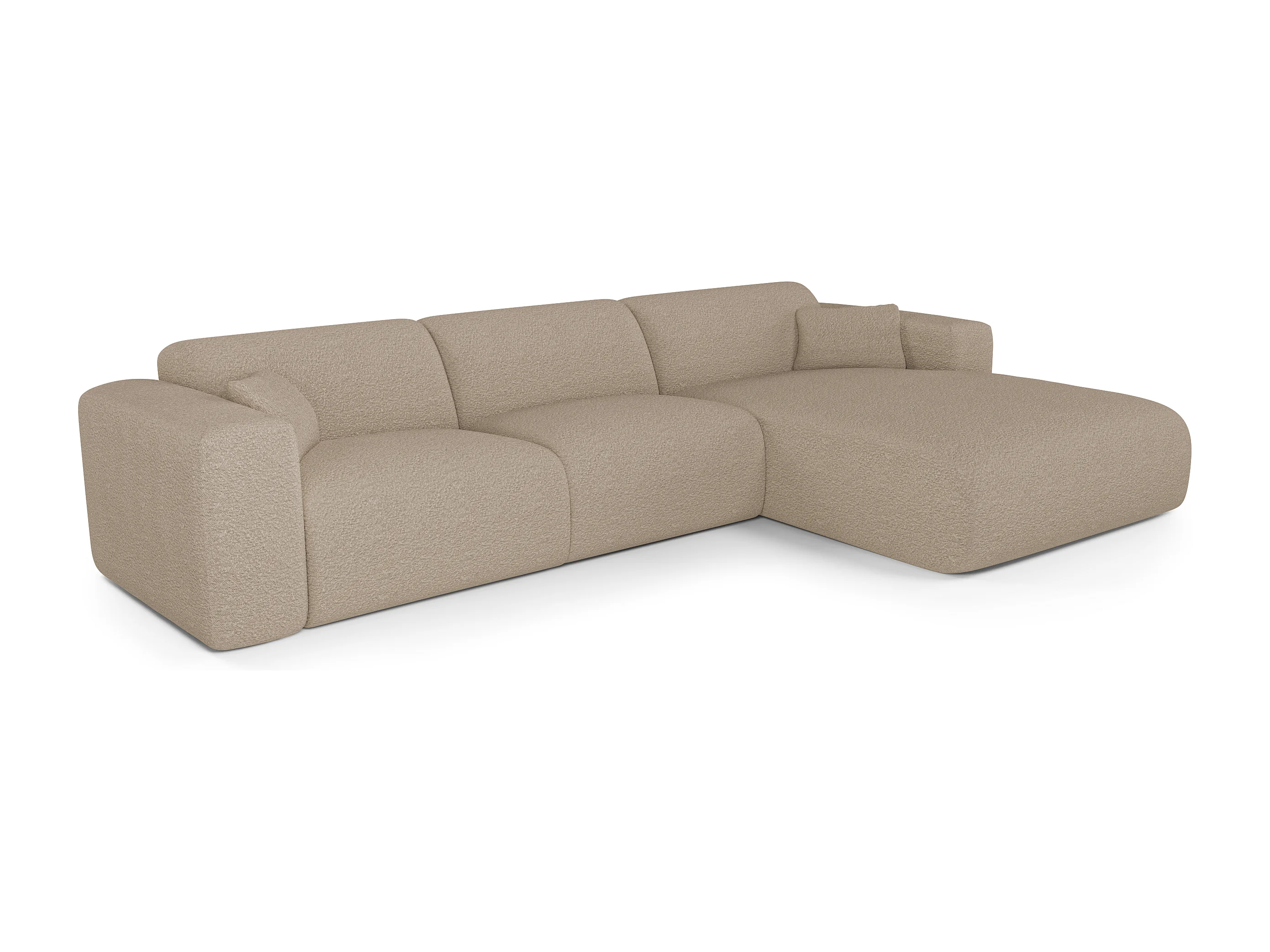 Canapé angle droit convertible dunlopillo 5 places bouclette taupe MYRA