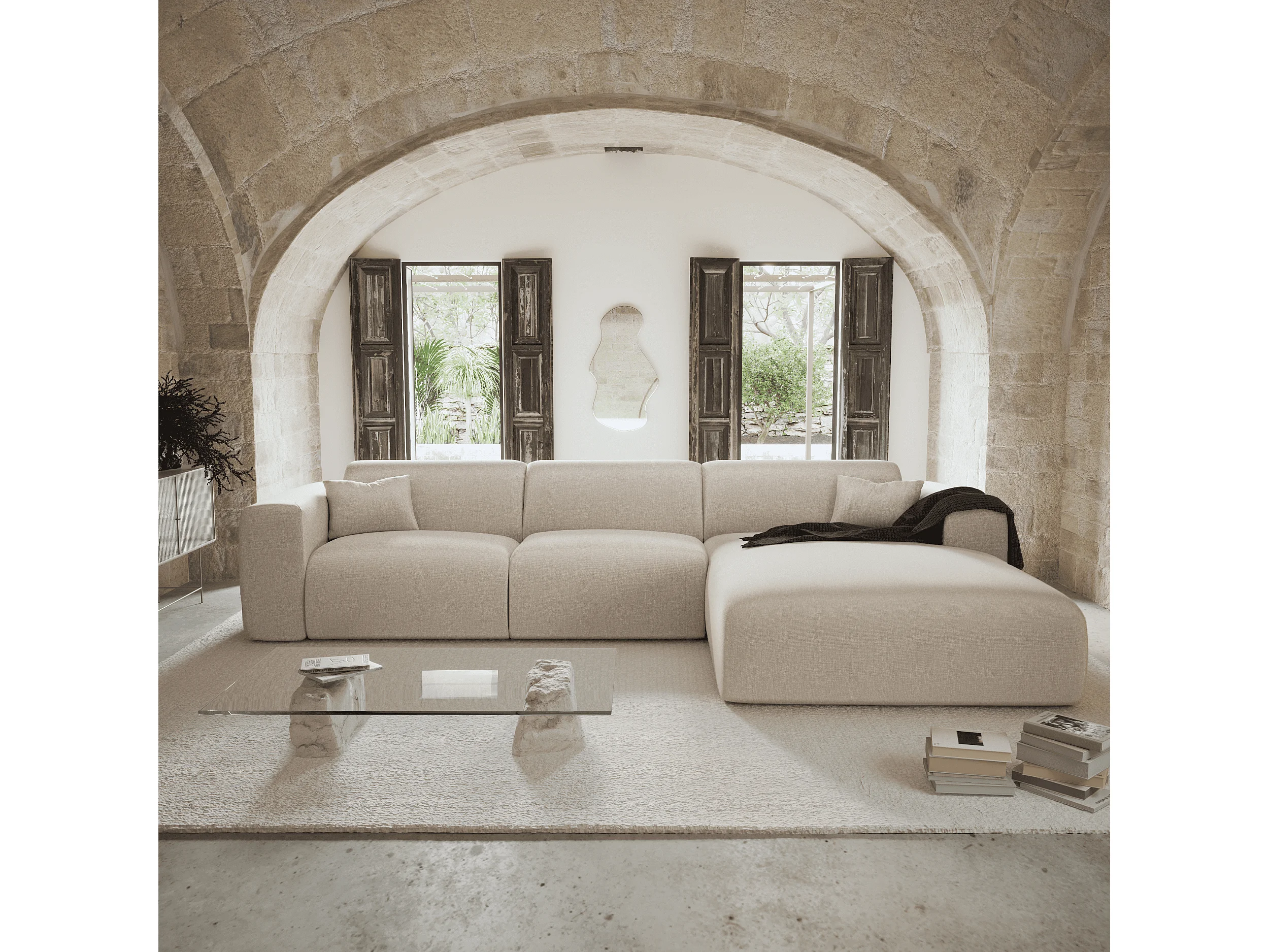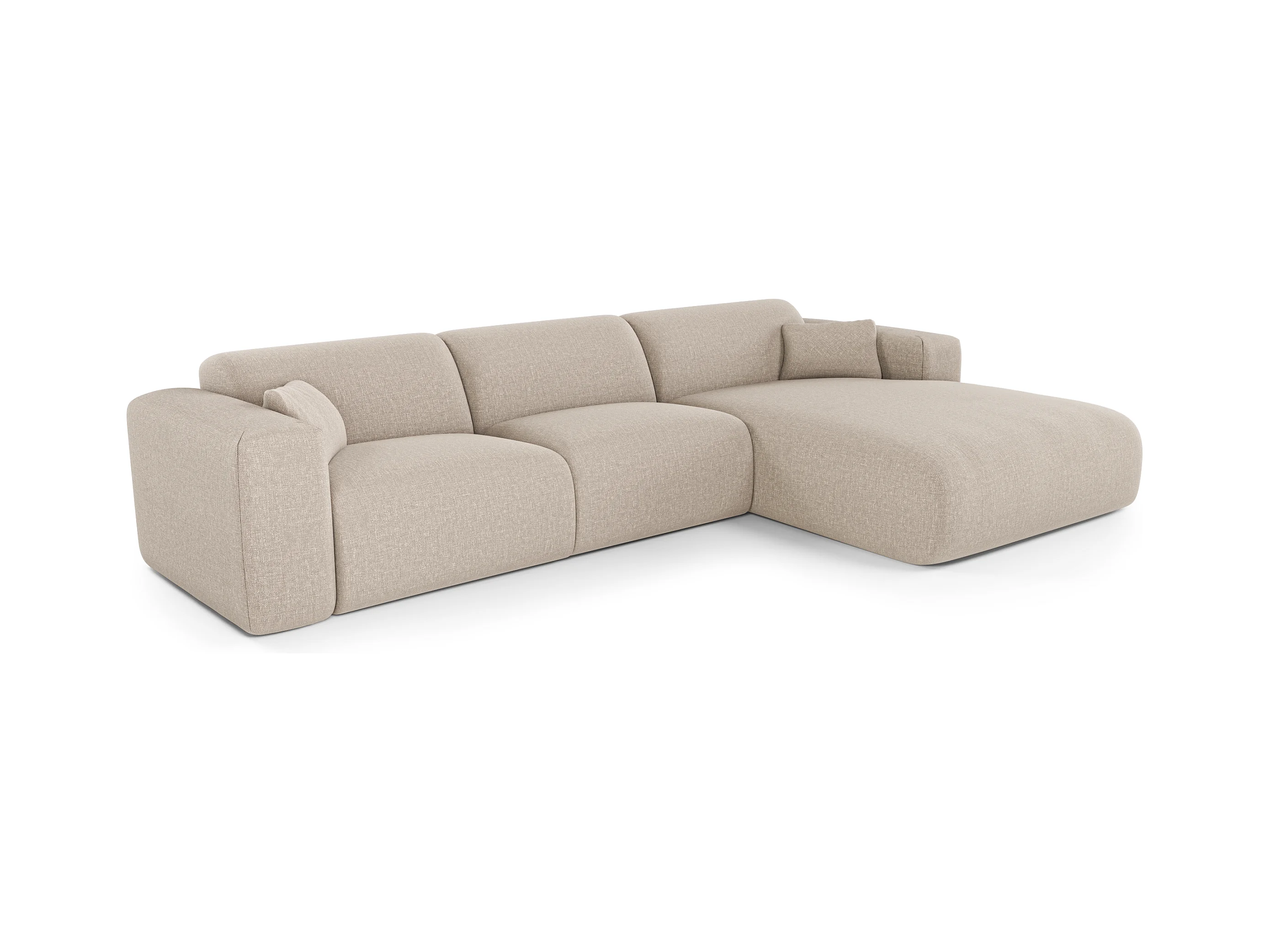 Canapé angle droit convertible dunlopillo 5 places tissu tramé beige MYRA