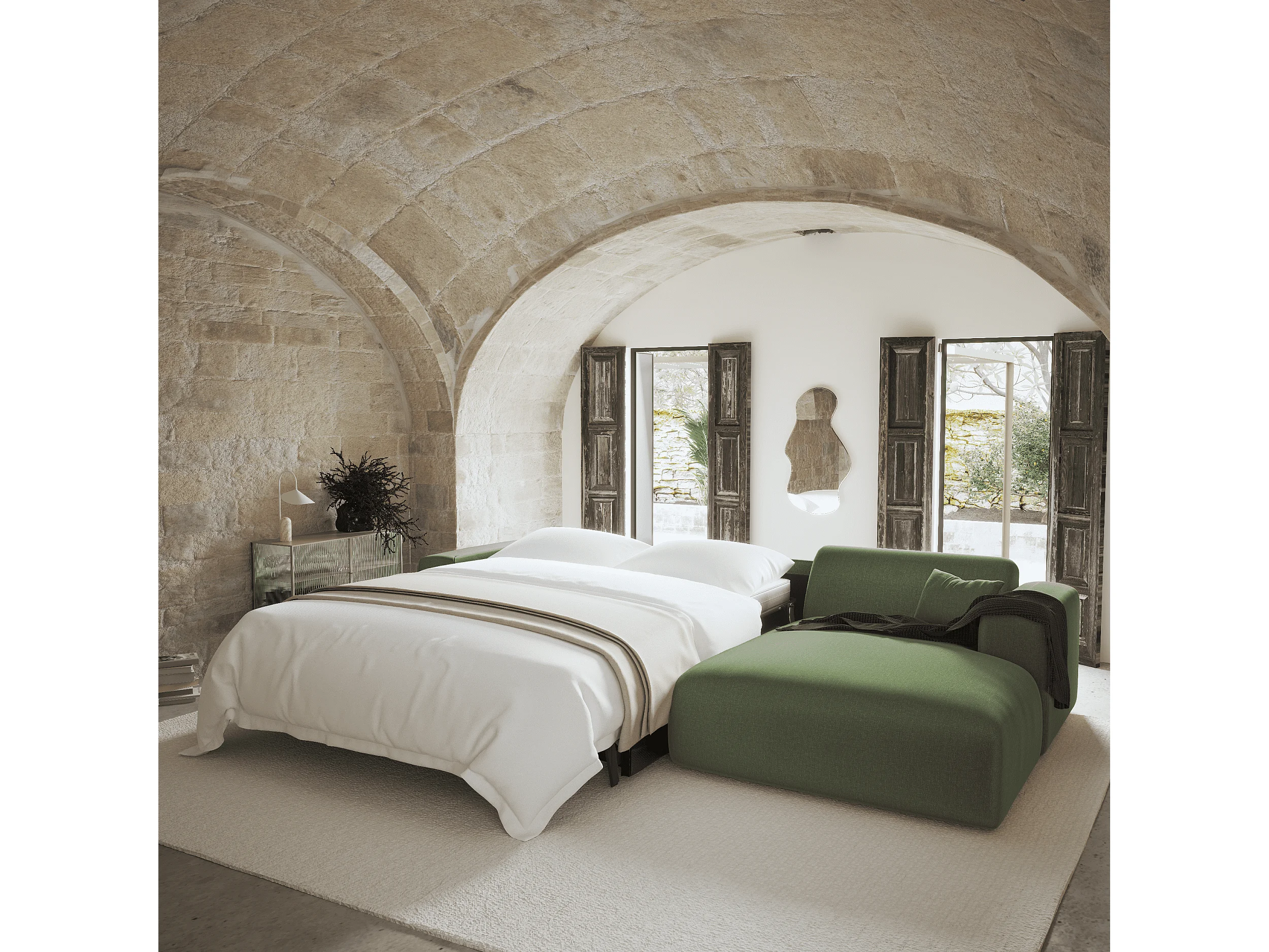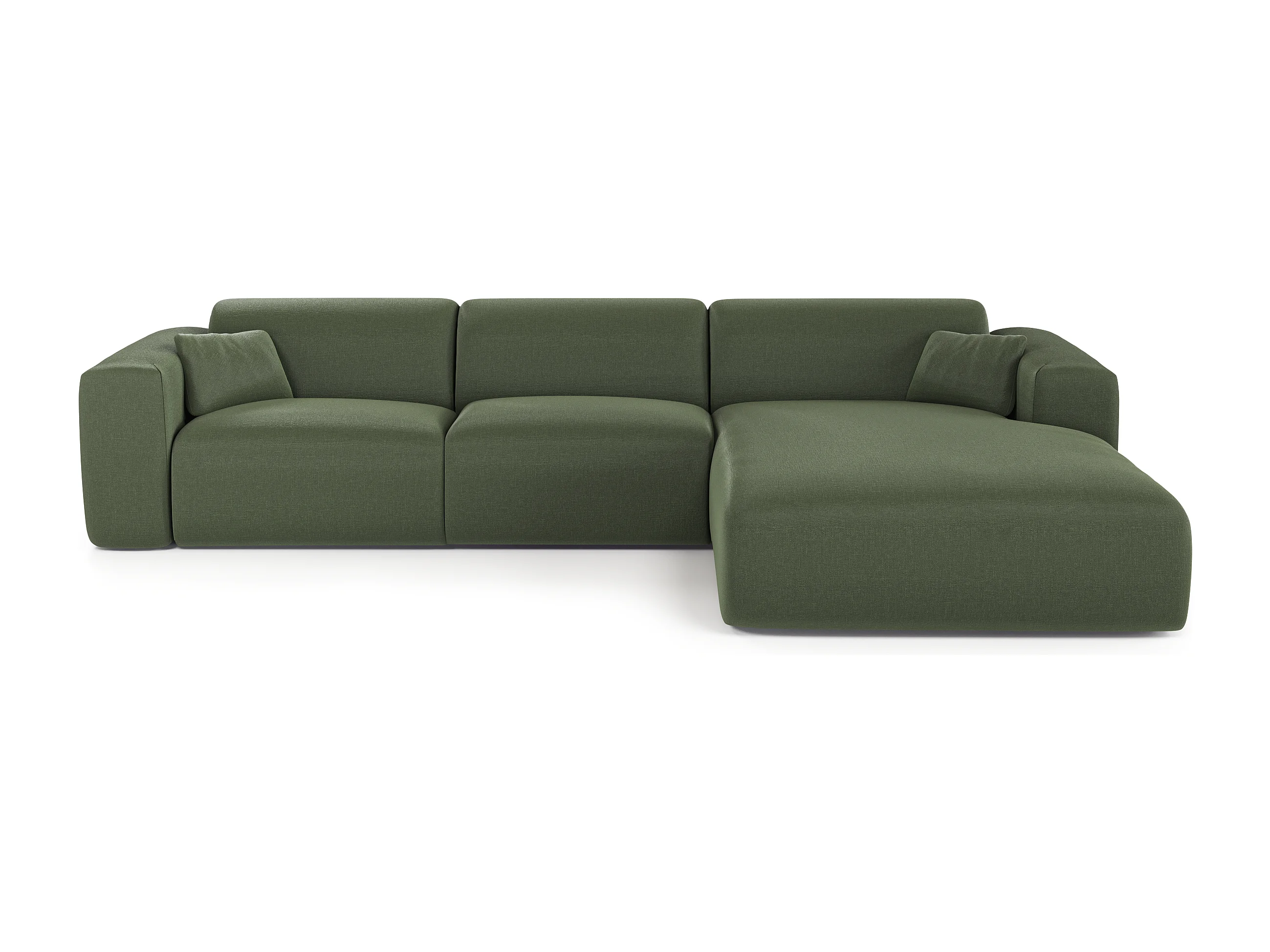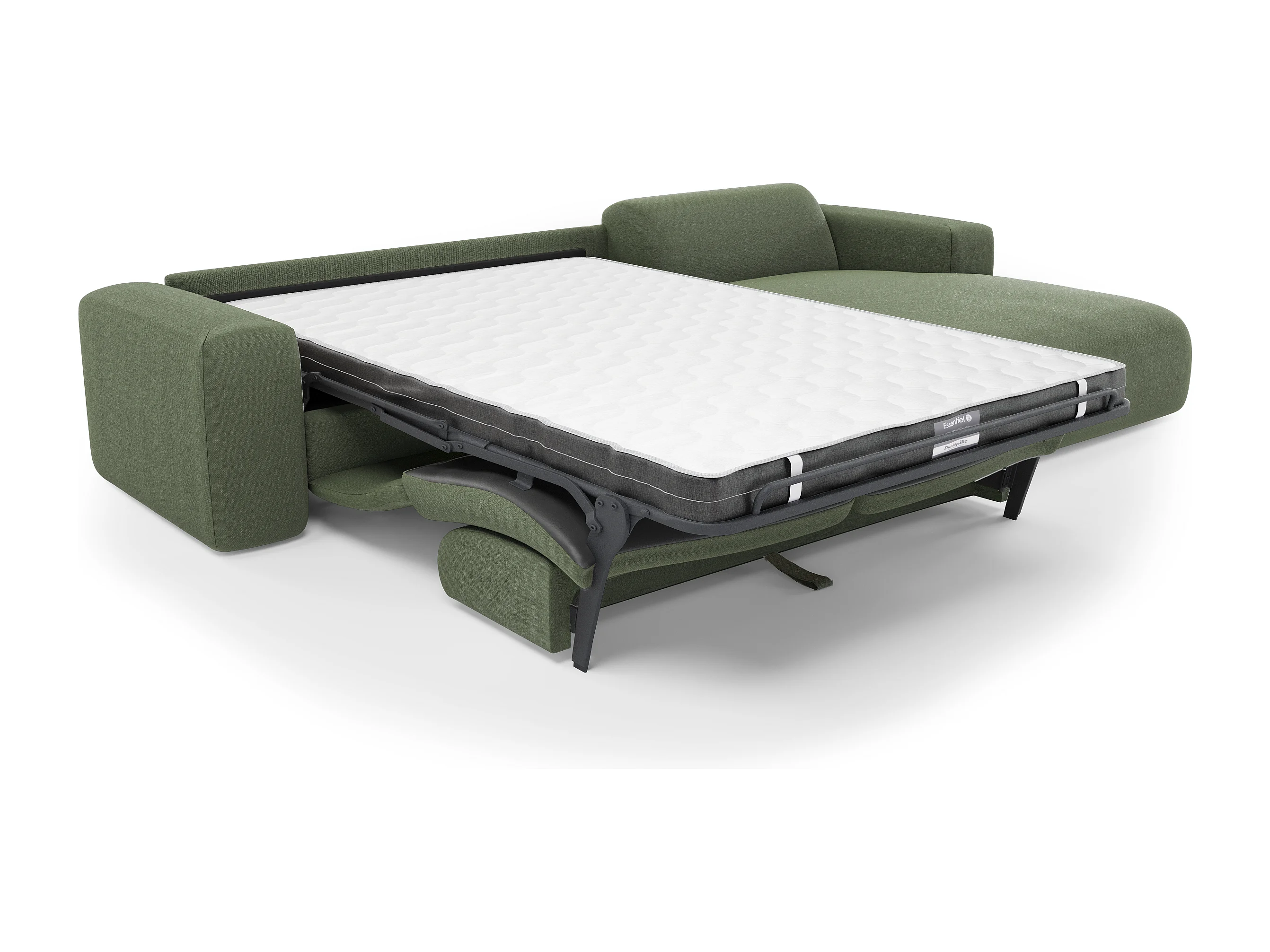 Canapé angle droit convertible dunlopillo 5 places tissu tramé vert MYRA