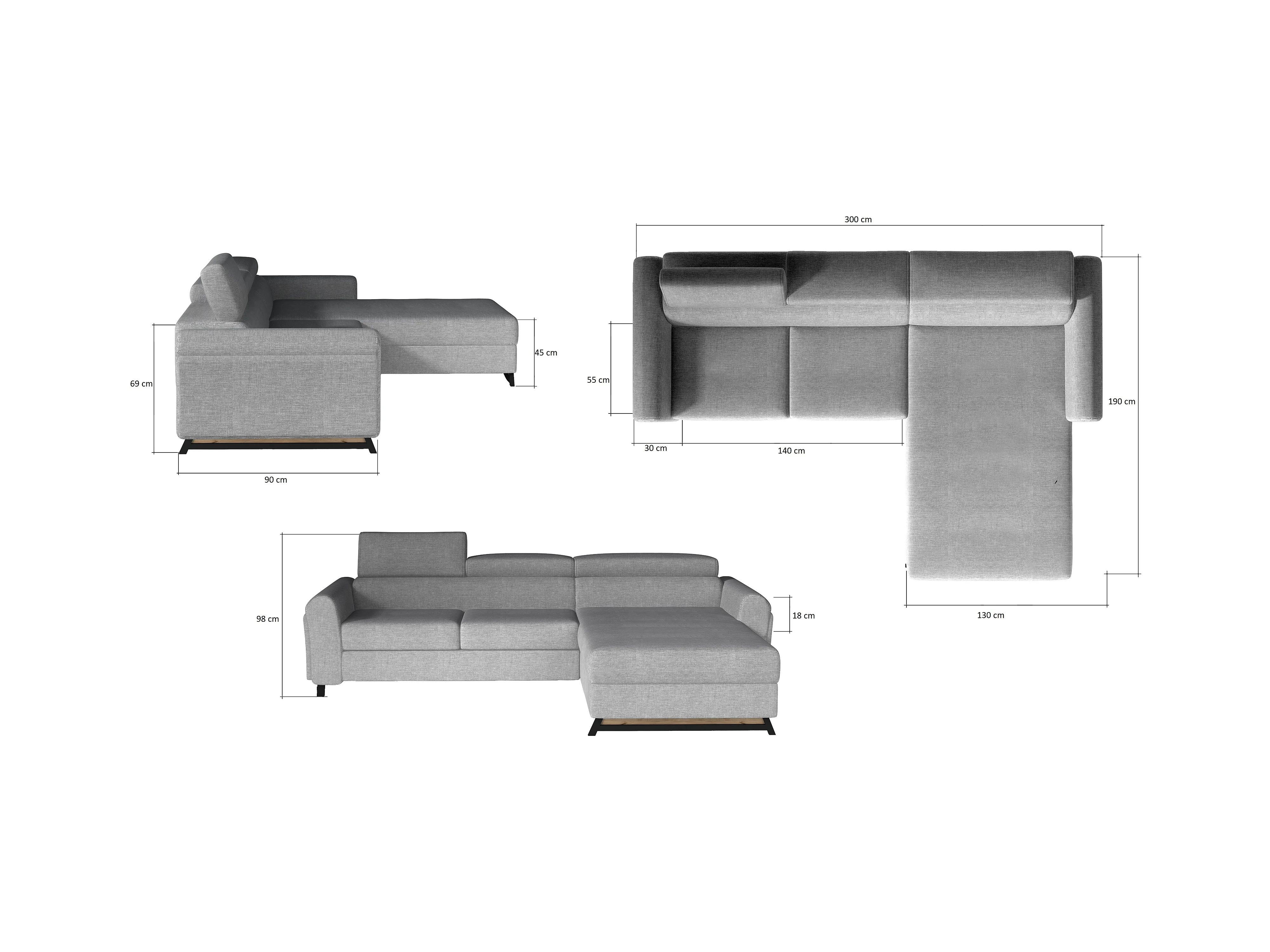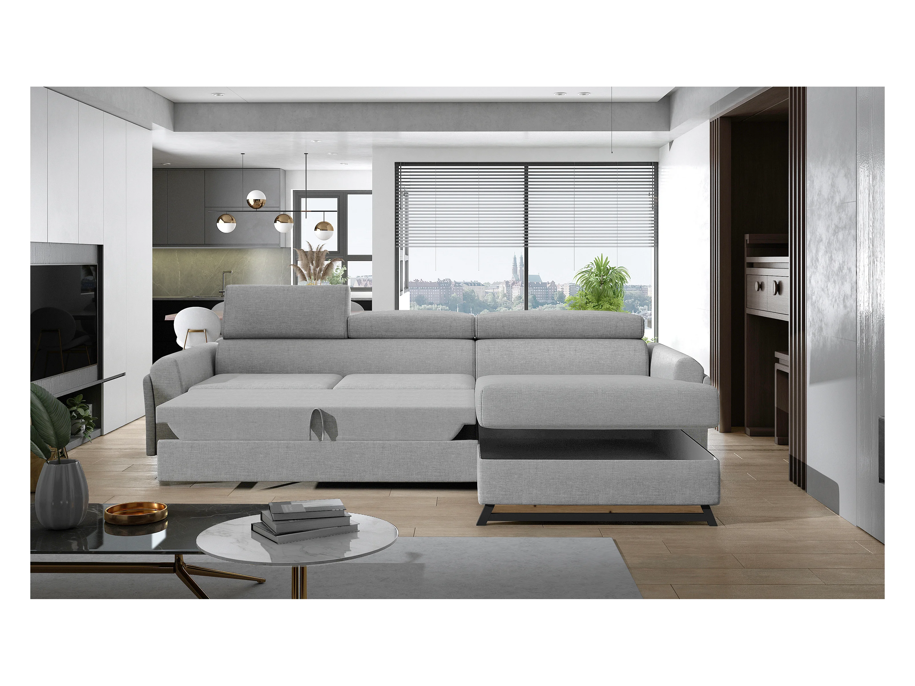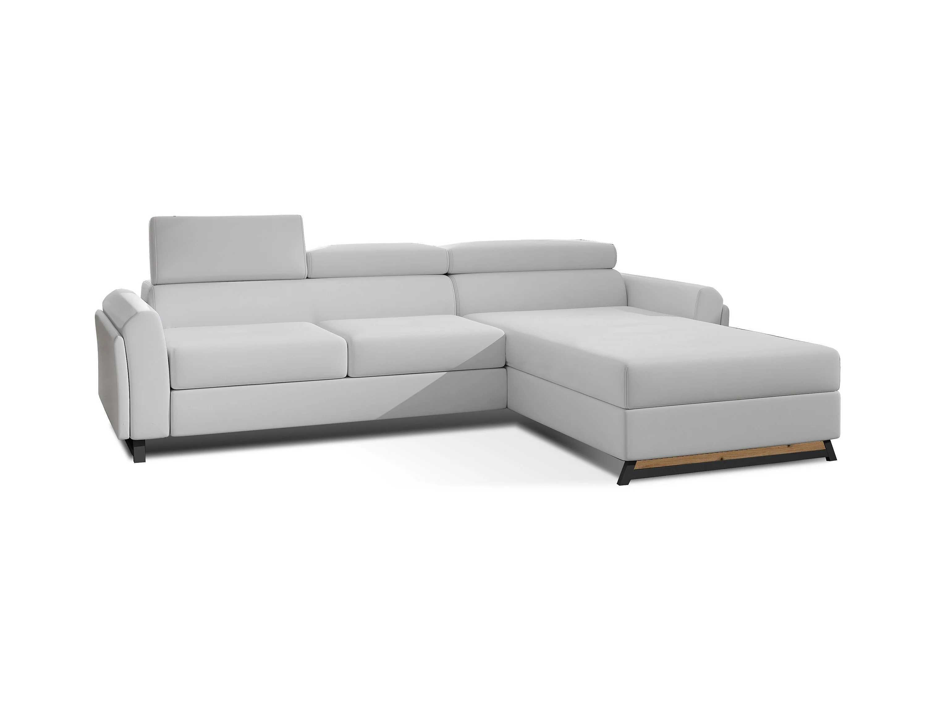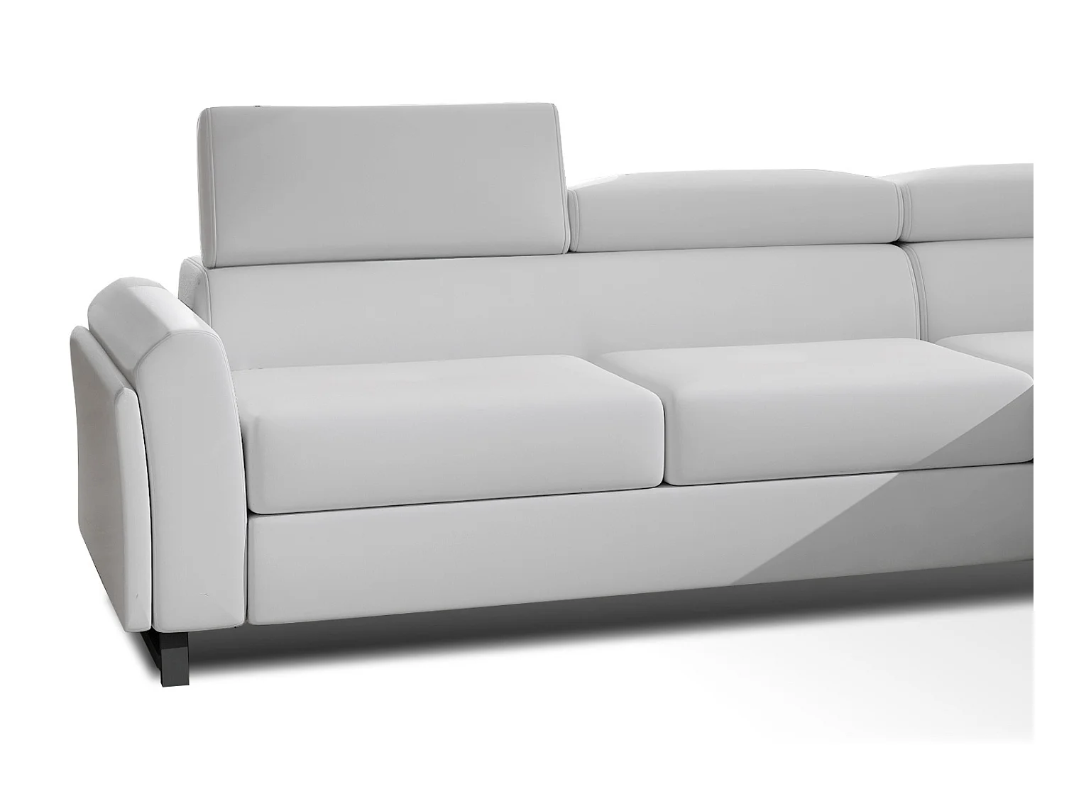 Canapé angle droit convertible simili clair blanc avec appuis-tête réglables Mazerali 300cm