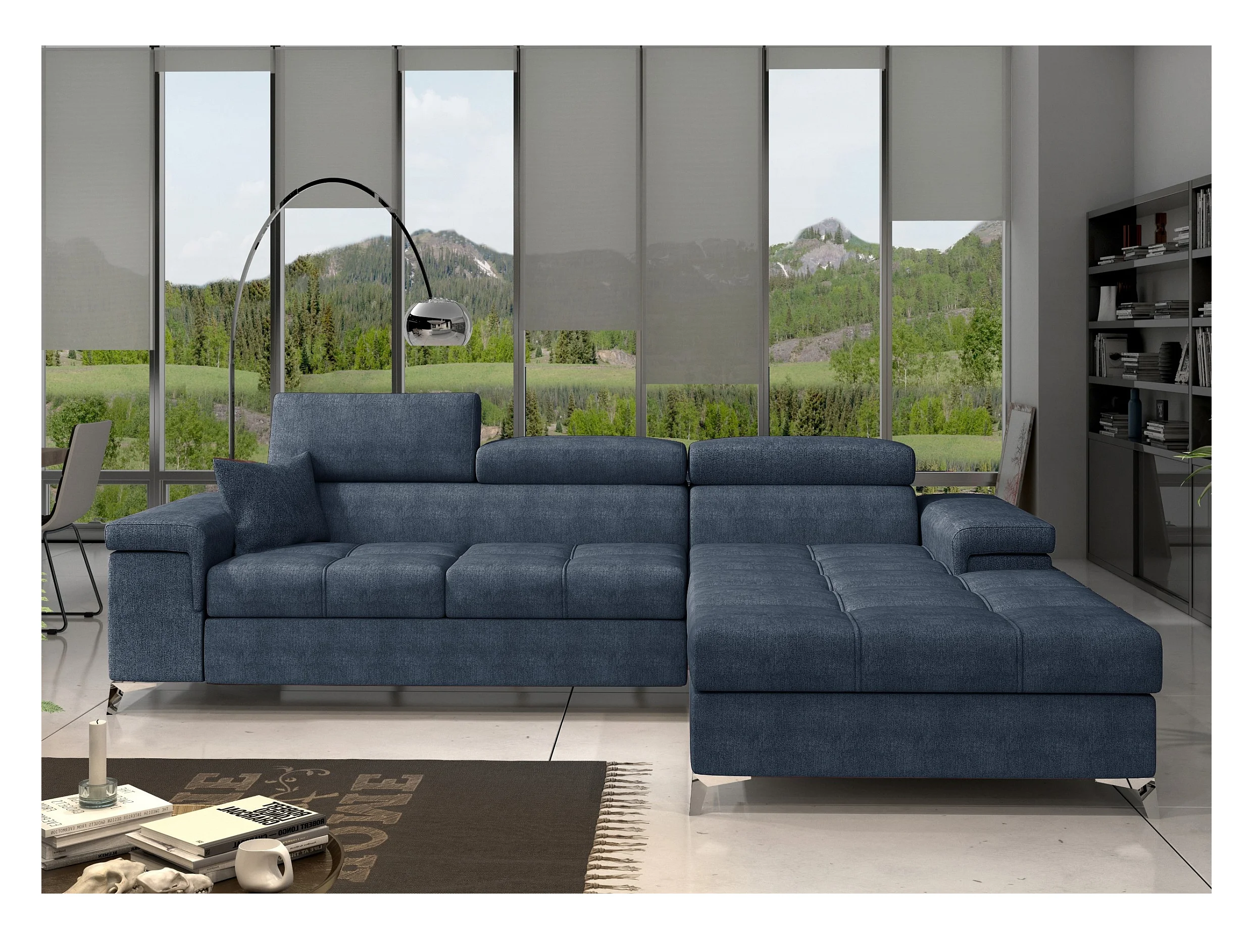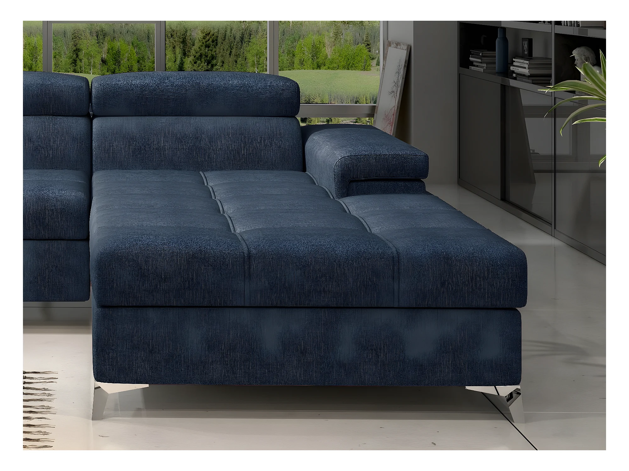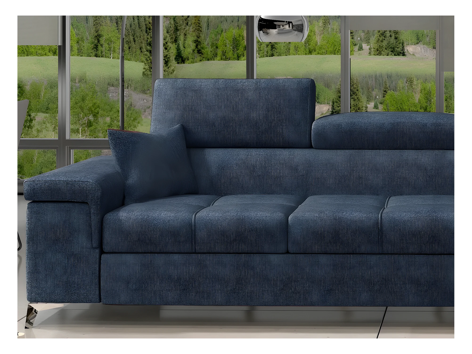 Canapé angle droit convertible tissu bleu minéral avec appuis-tête réglables Rikaro 280cm
