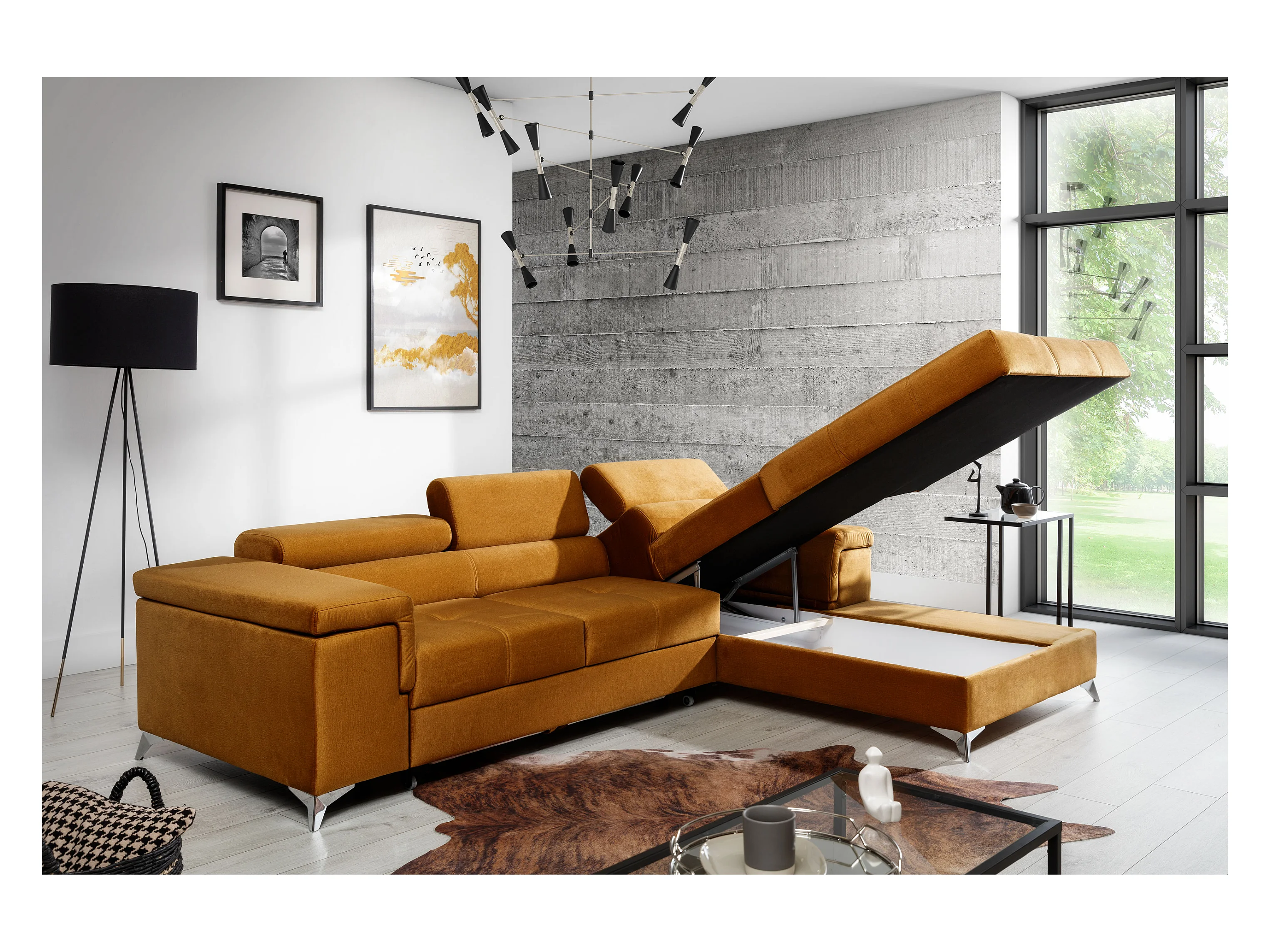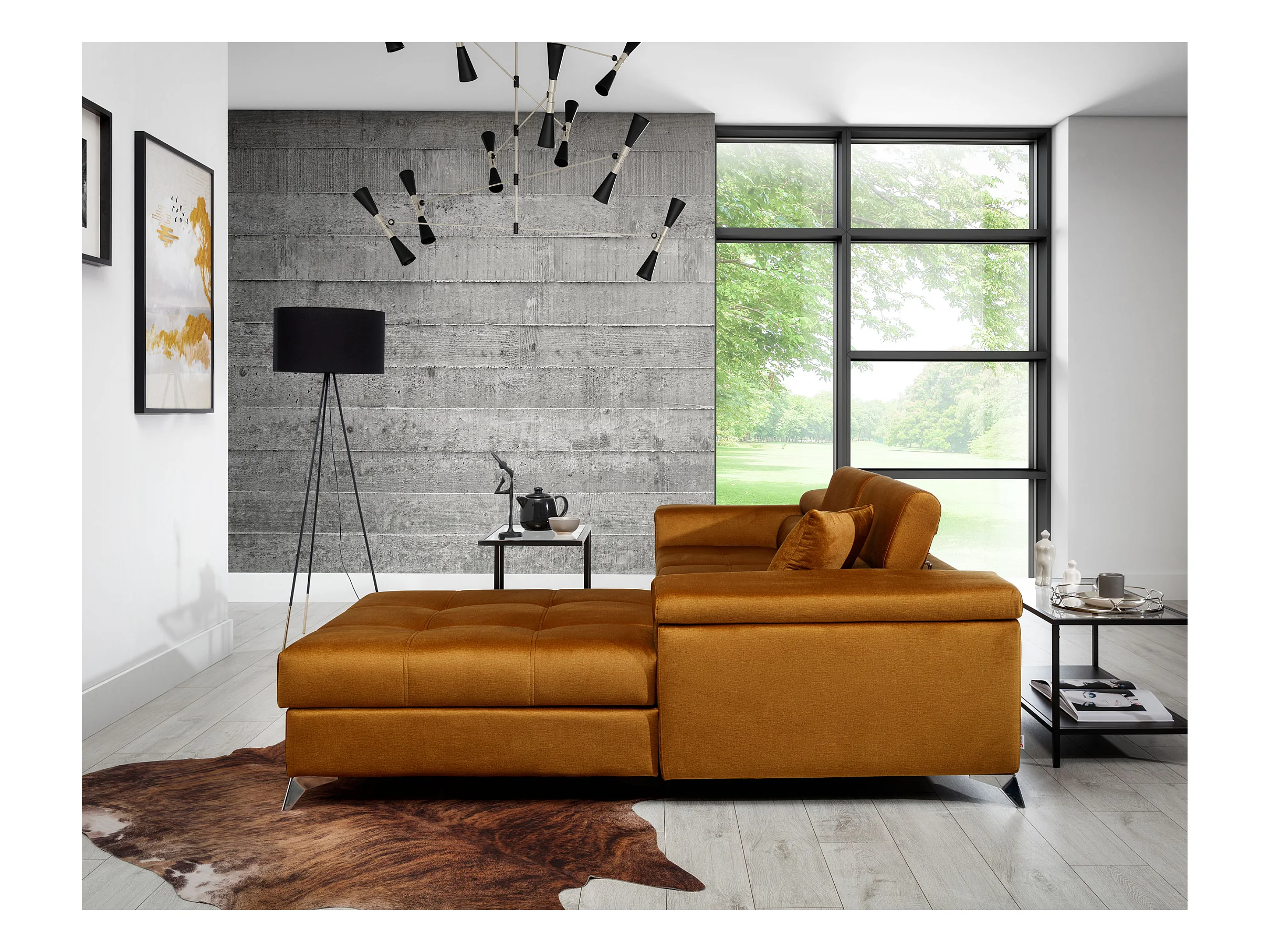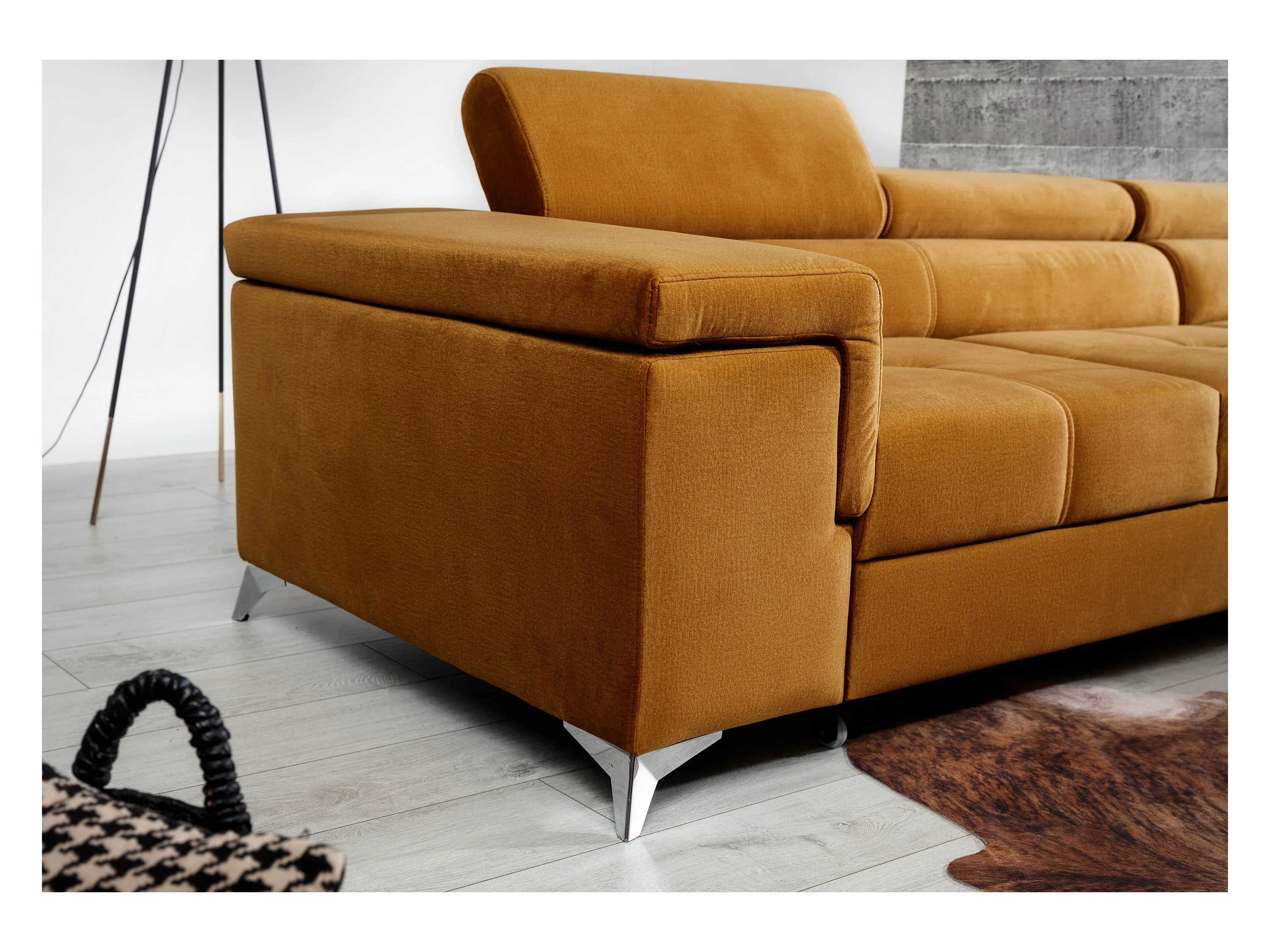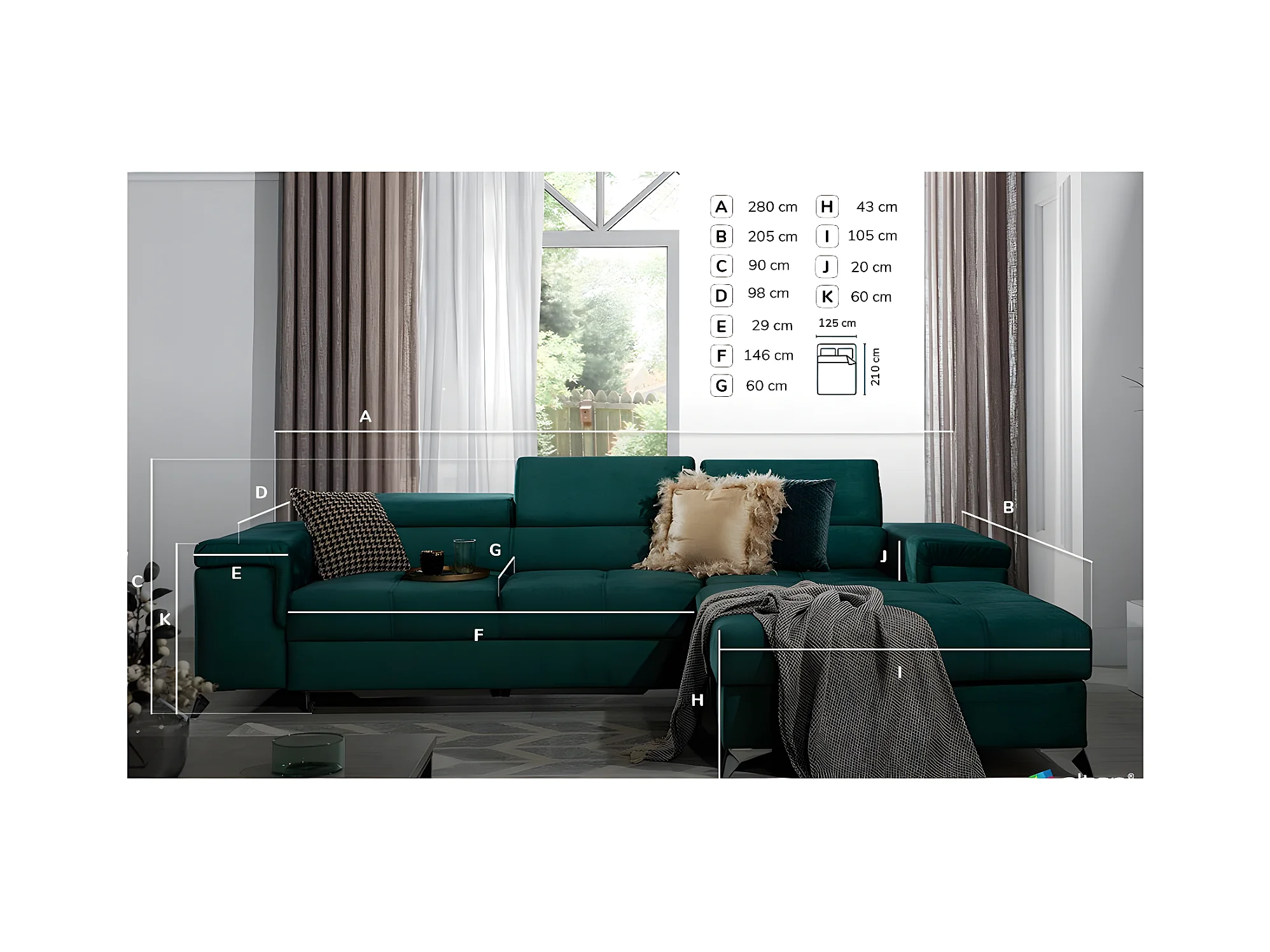 Canapé angle droit convertible tissu bleu minéral avec appuis-tête réglables Rikaro 280cm
