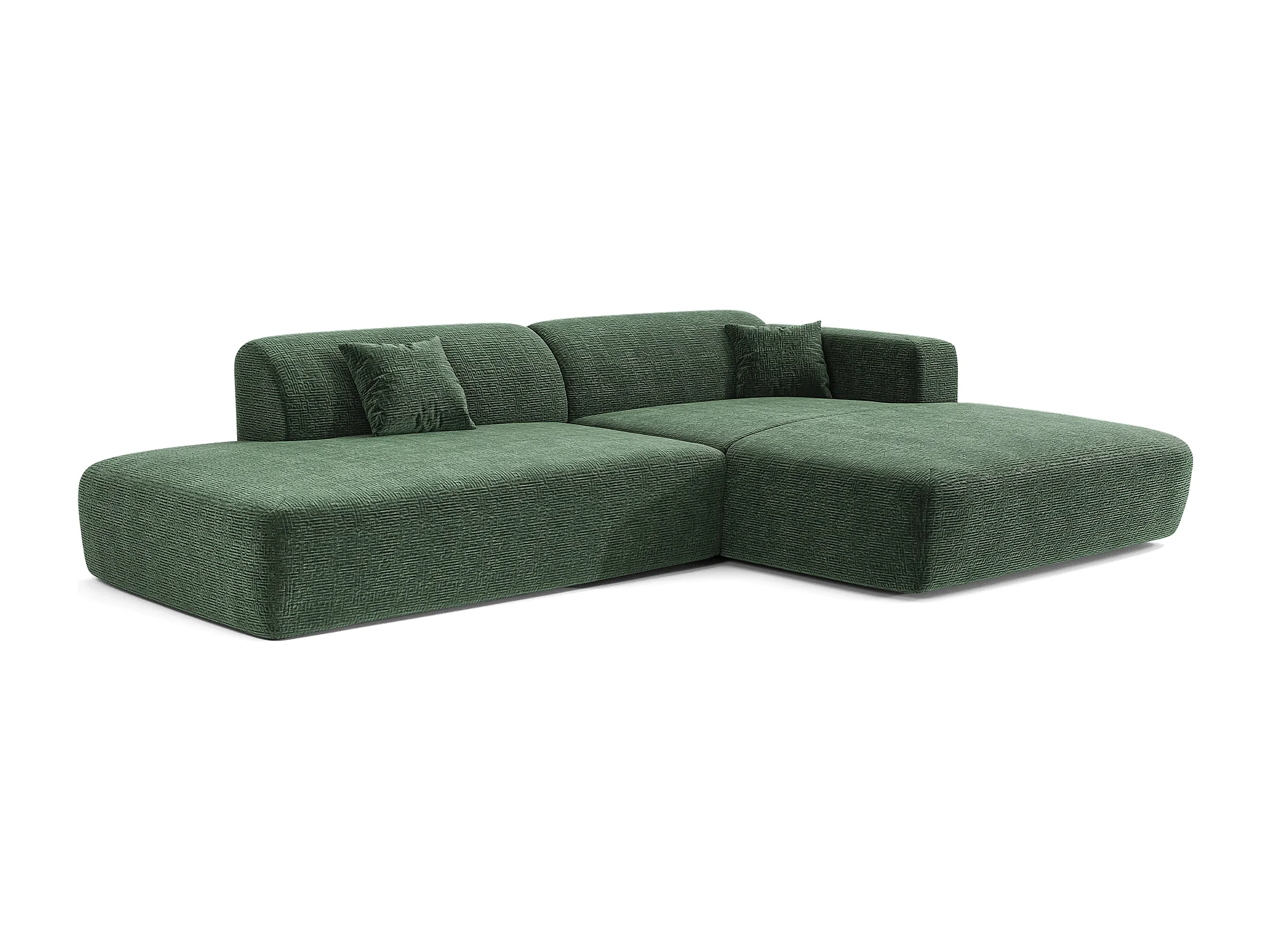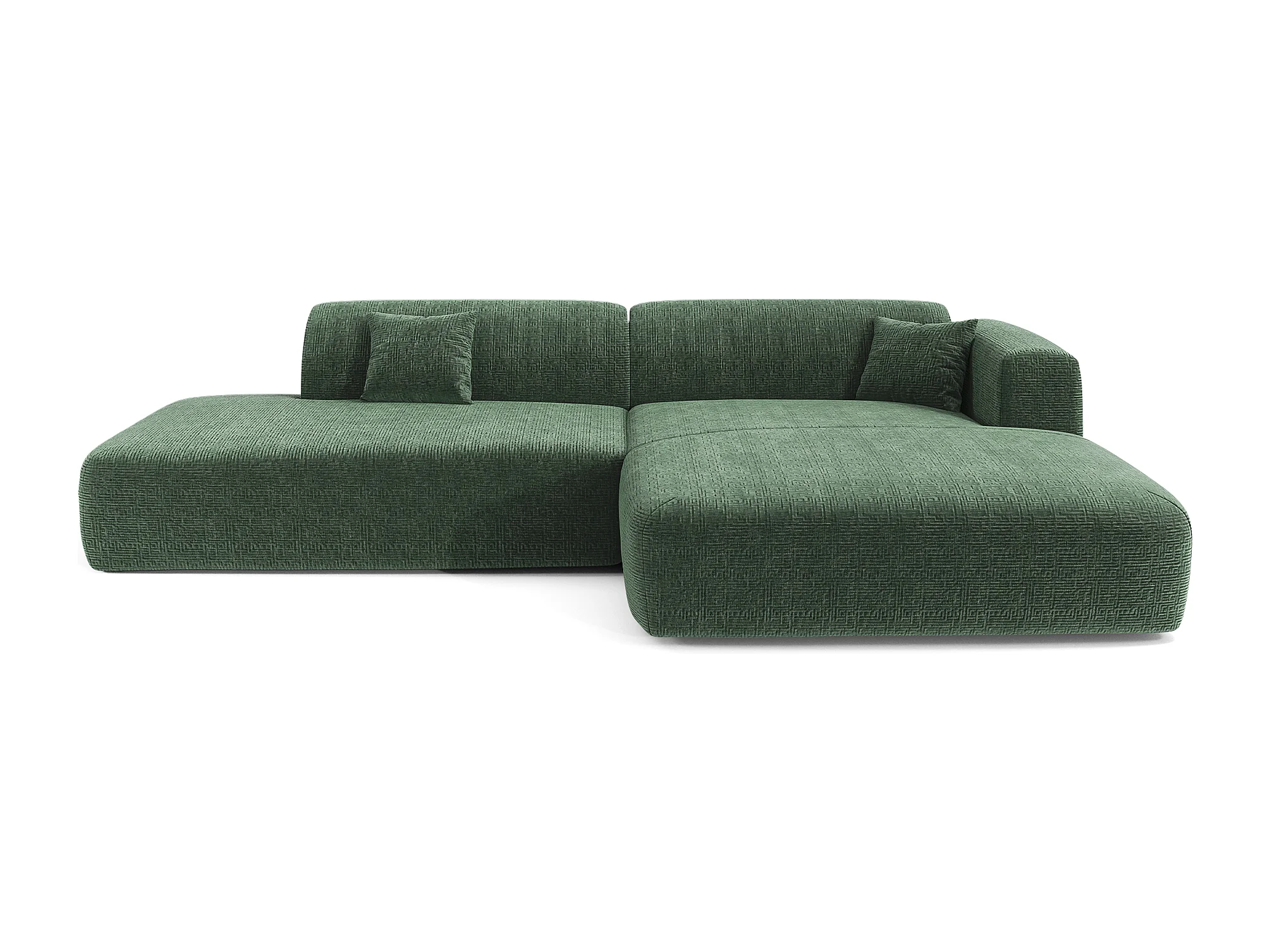Canapé angle droit ouvert velours à motifs vert émeraude 5 places MYRA