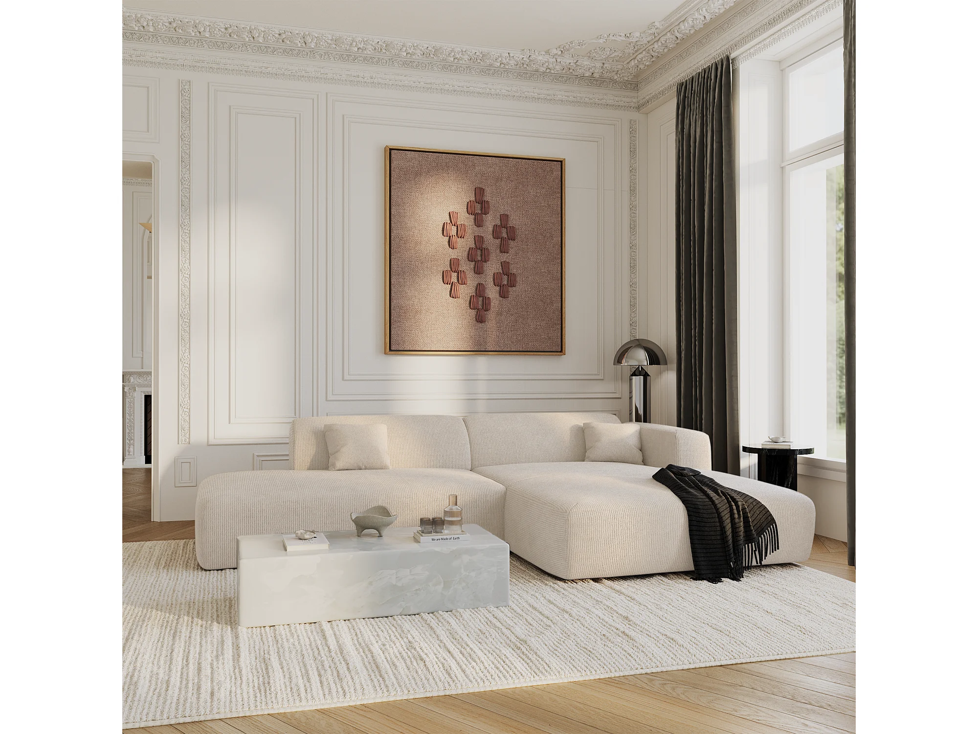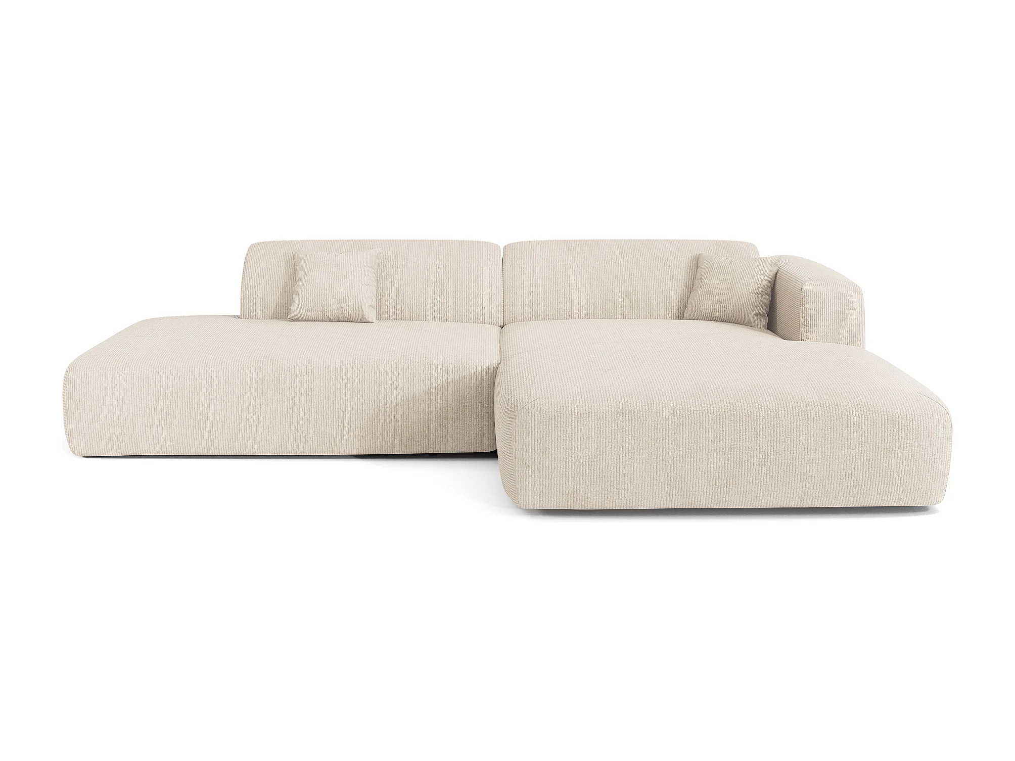 Canapé angle droit ouvert velours côtelé crème 5 places MYRA