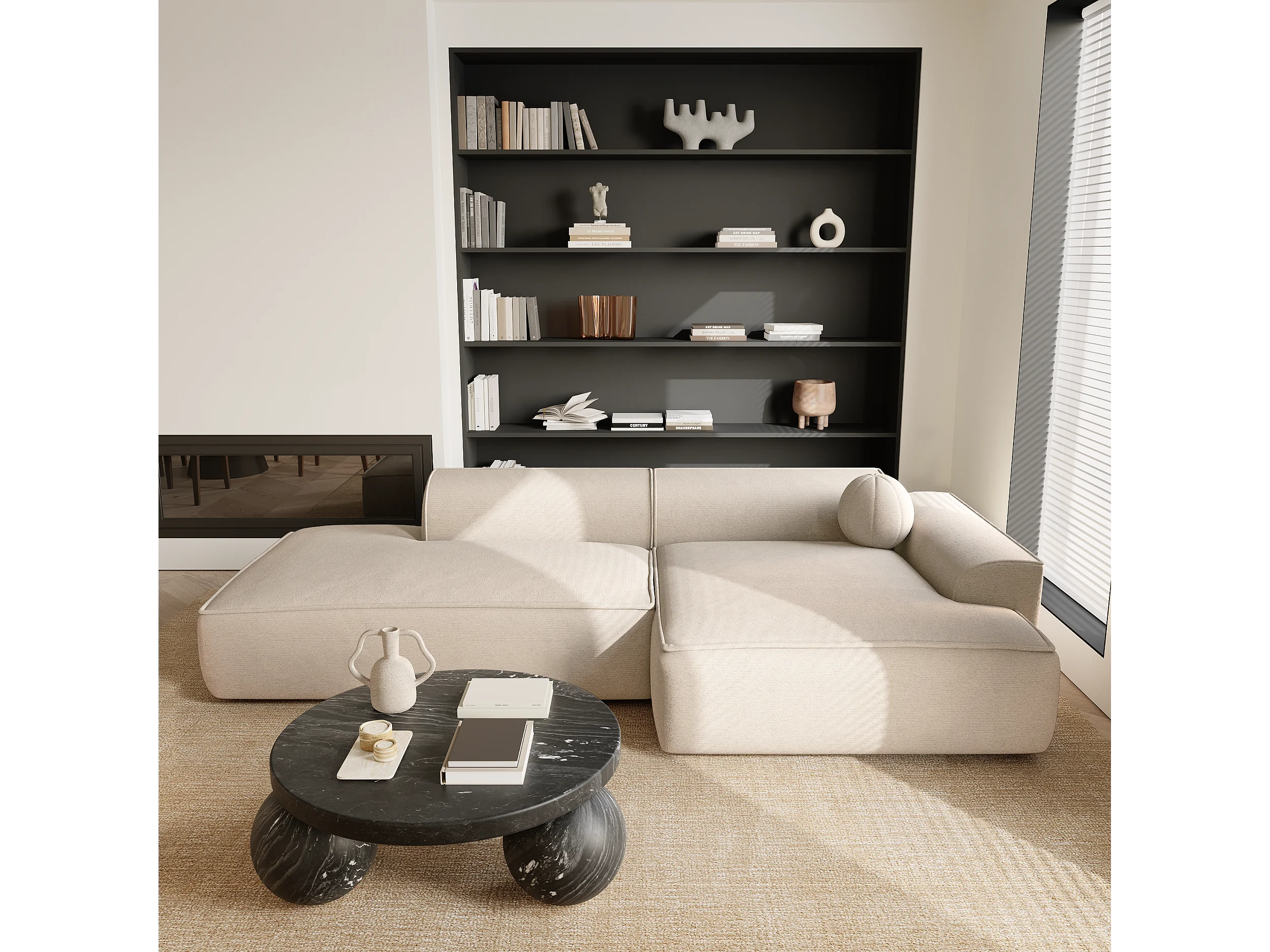 Canapé angle droit tissu tramé crème 300cm