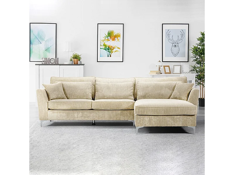 Canapé angle droit velours côtelé beige Isla