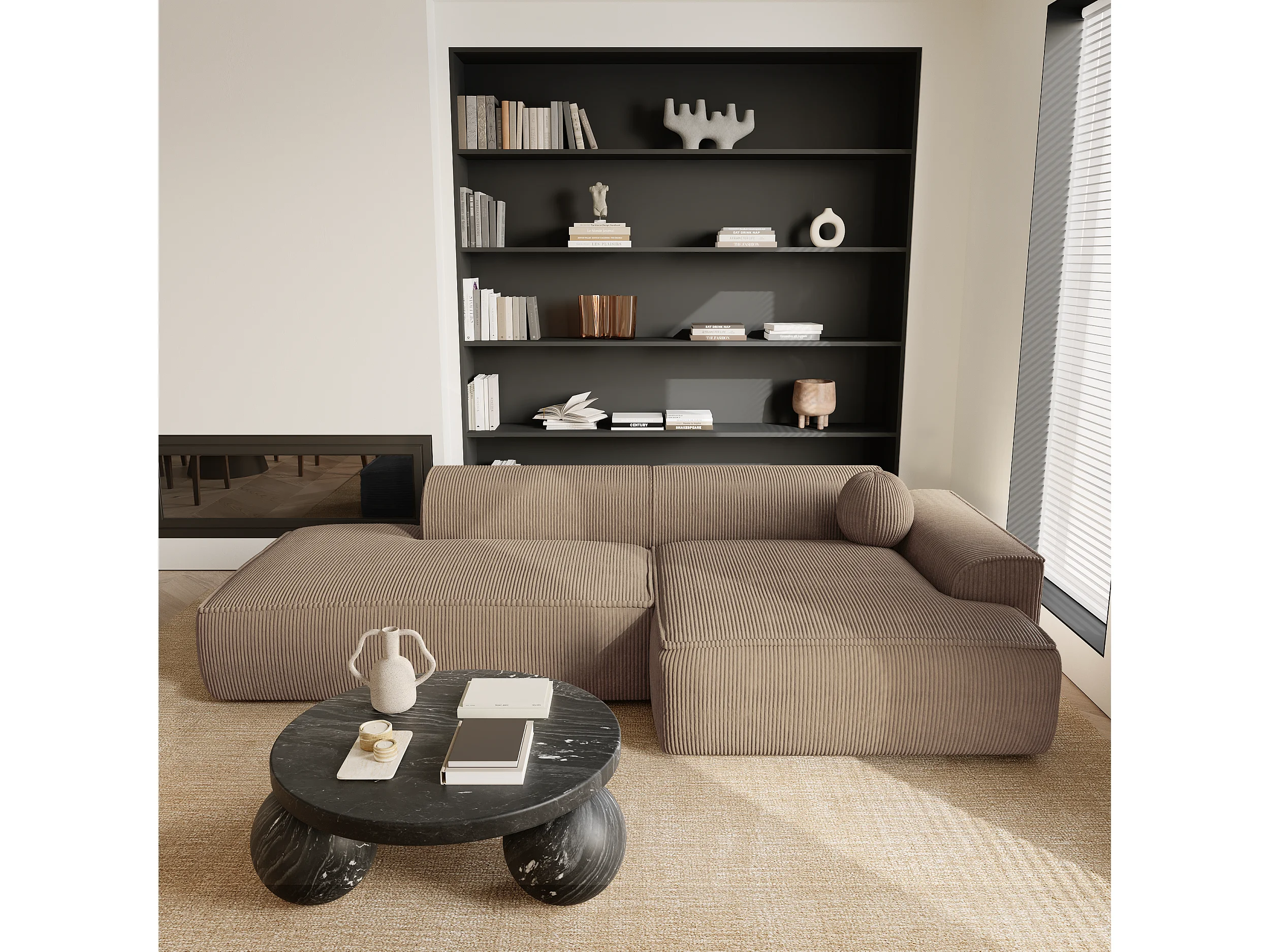 Canapé angle droit velours côtelé taupe 300cm ANIA