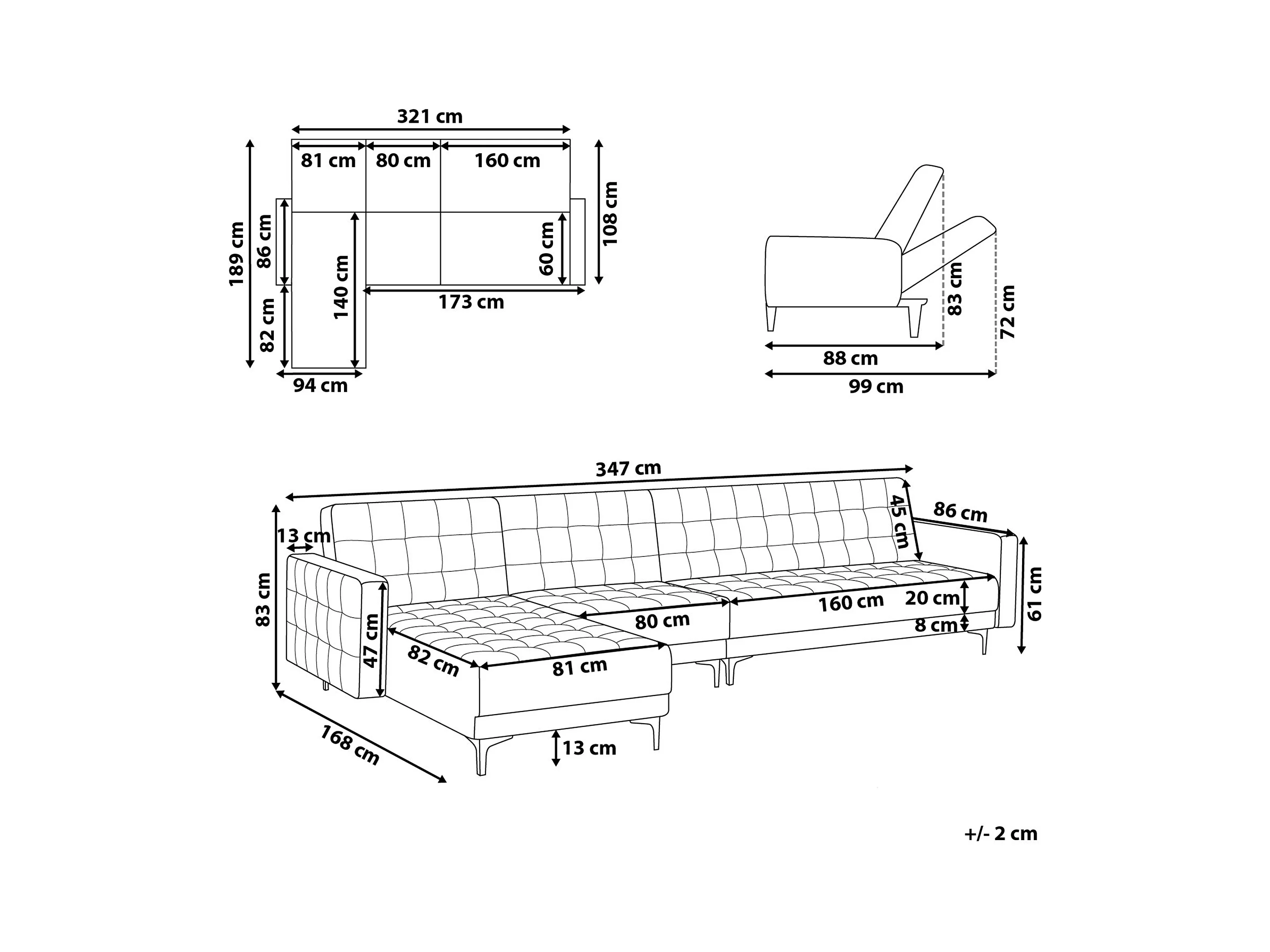 Canapé-lit d'angle modulable 5 places ABERDEEN Tissu Gris graphite Côté droit