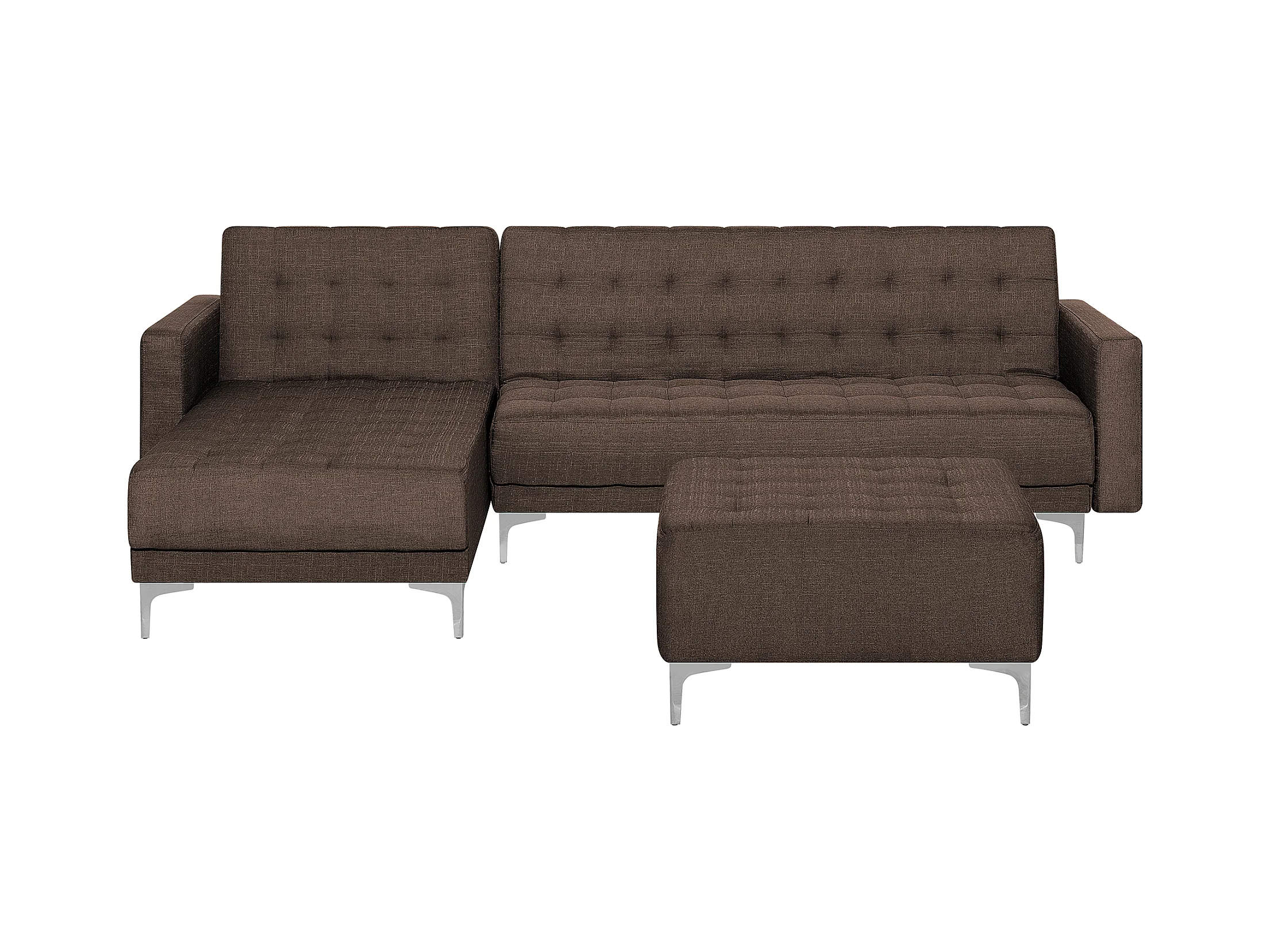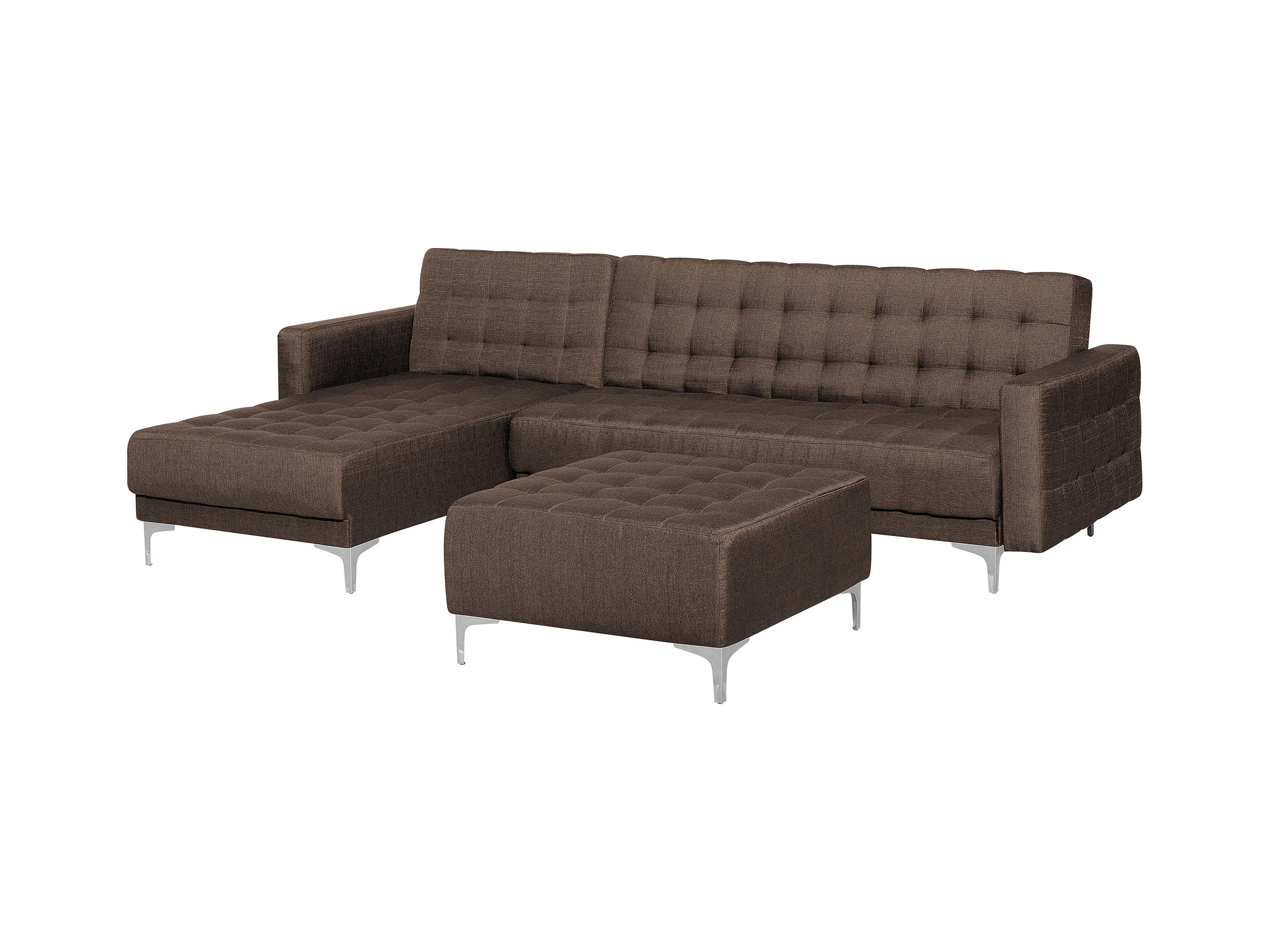 Canapé-lit d'angle modulable 4 places ABERDEEN Tissu Marron foncé avec ottoman Côté droit