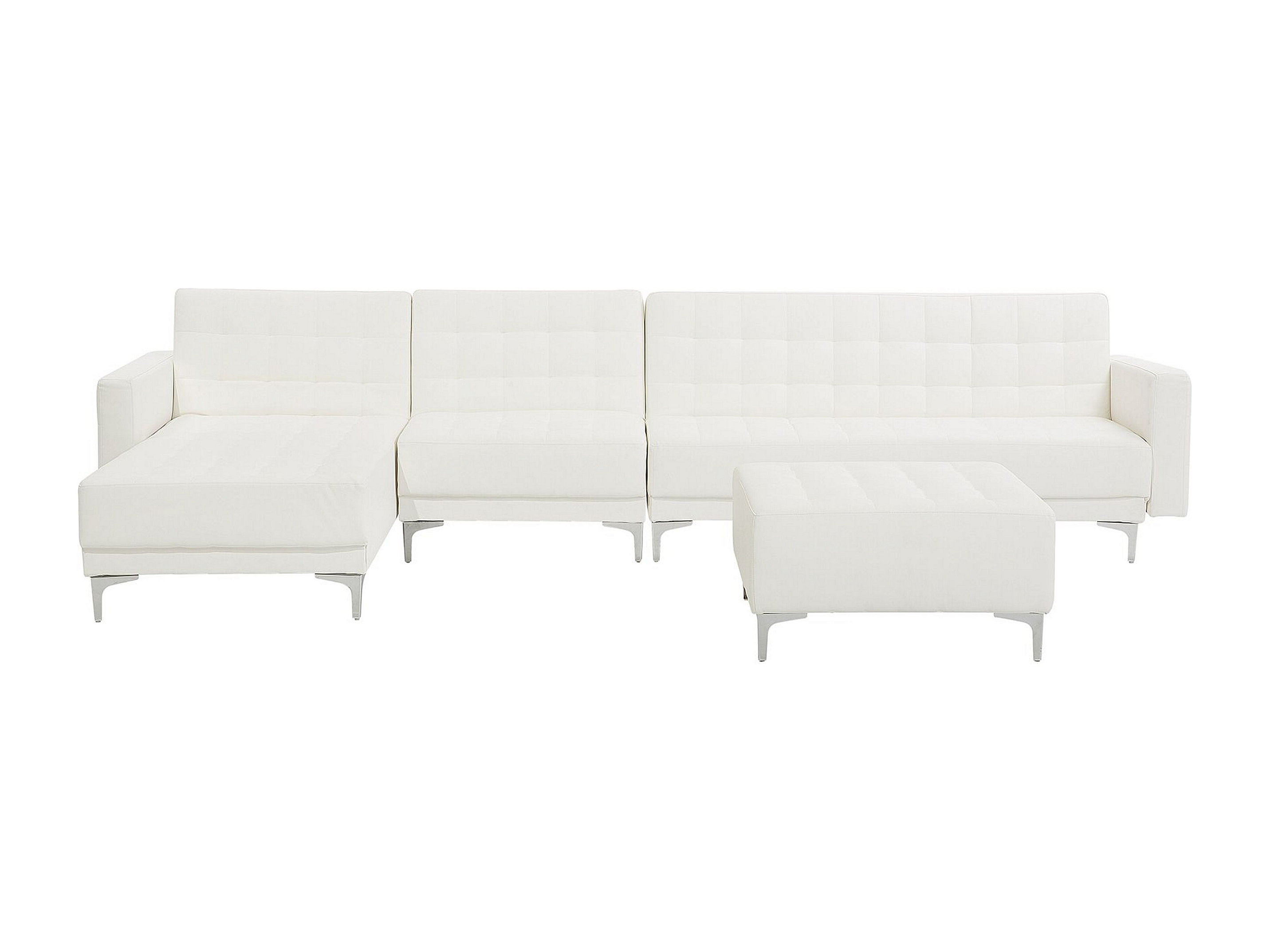 Canapé-lit d'angle modulable 5 places ABERDEEN Cuir PU Blanc avec ottoman Côté droit
