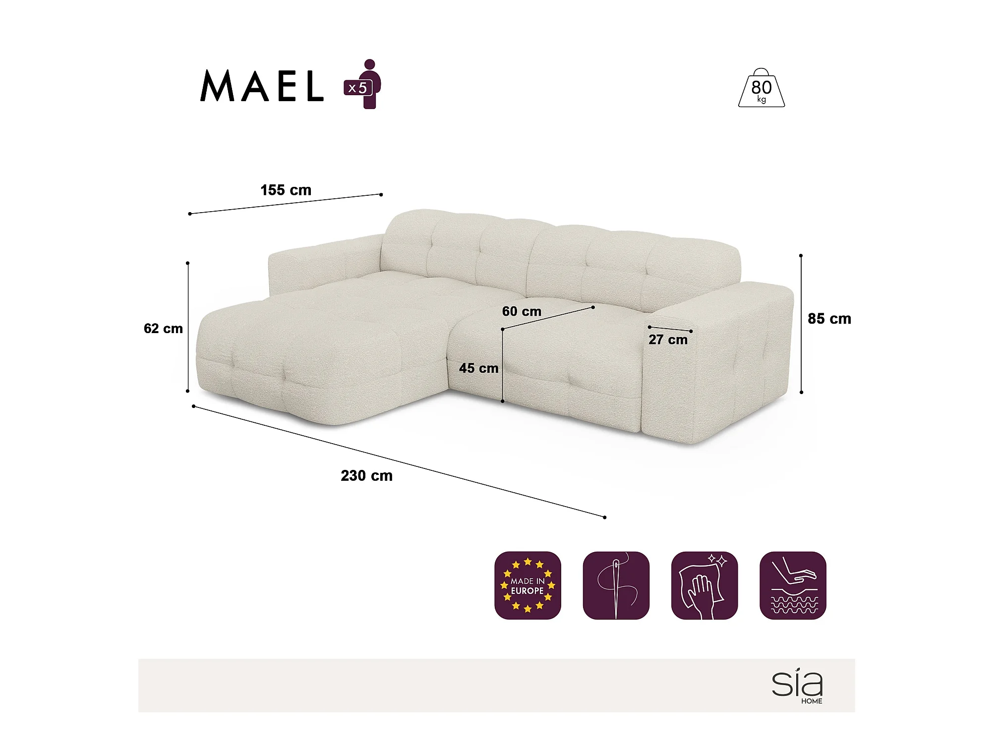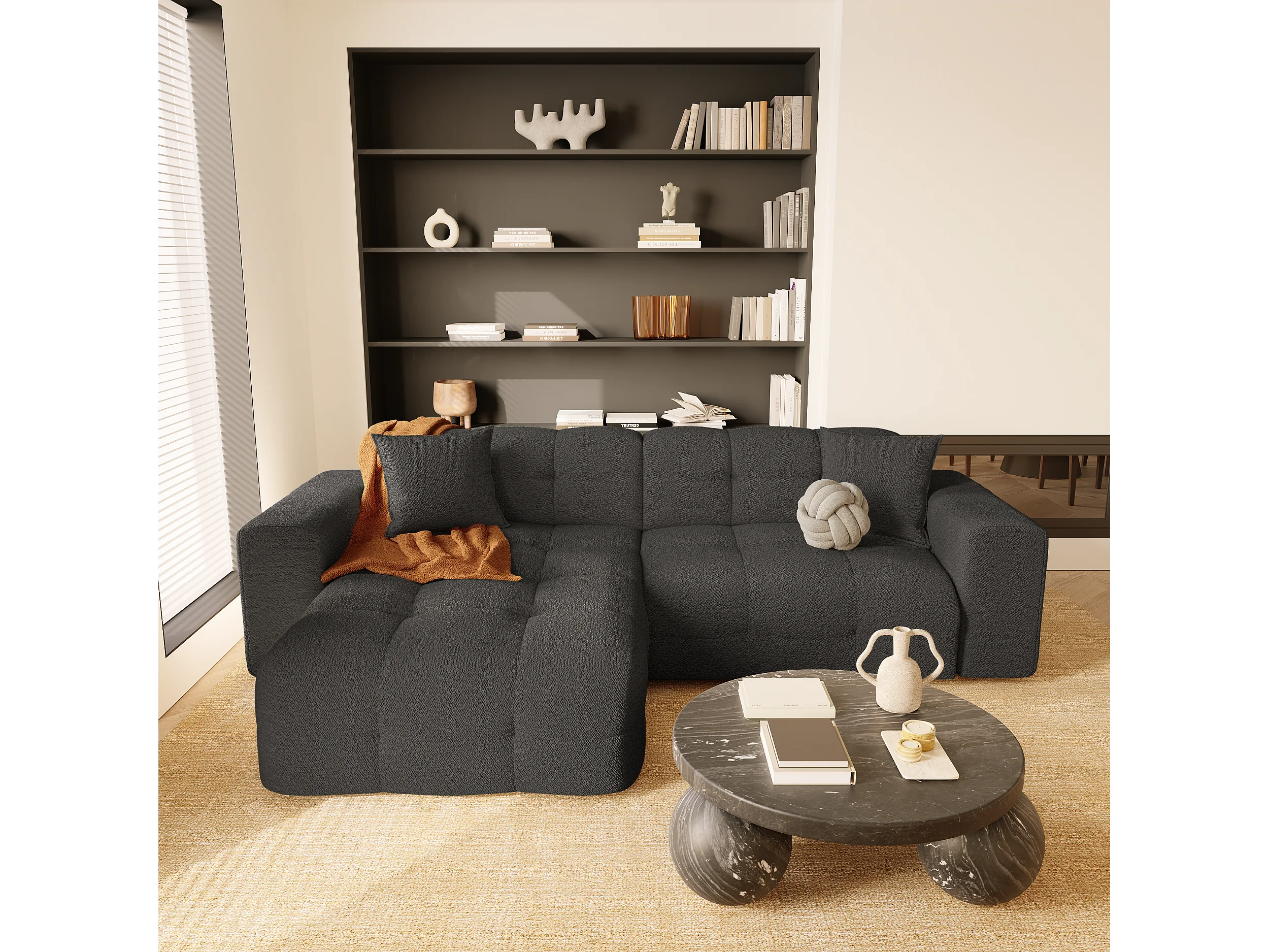 Canapé angle gauche 5 places tissu bouclette gris graphite 230cm