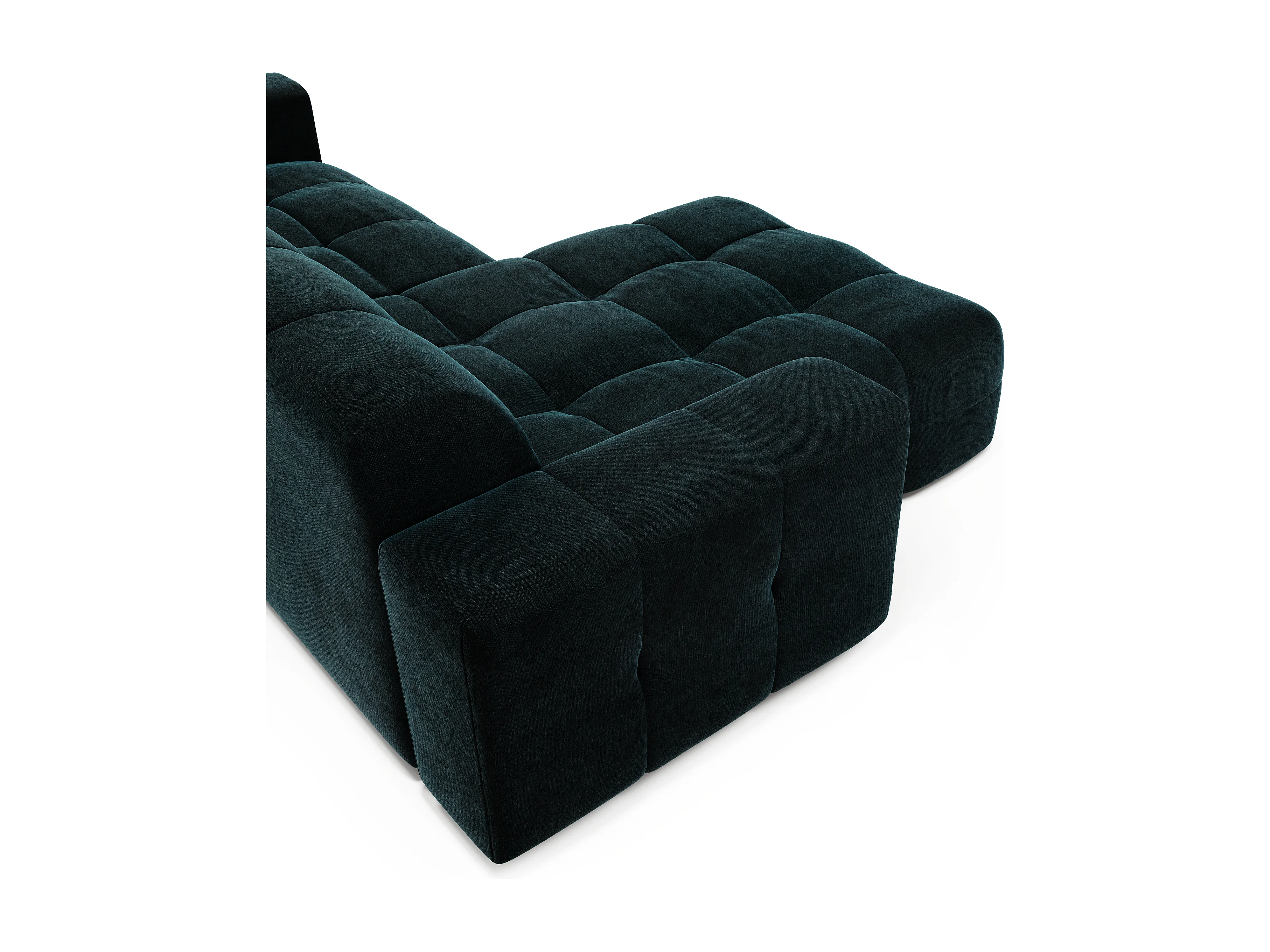 Canapé angle gauche 5 places velours bleu paon 230cm
