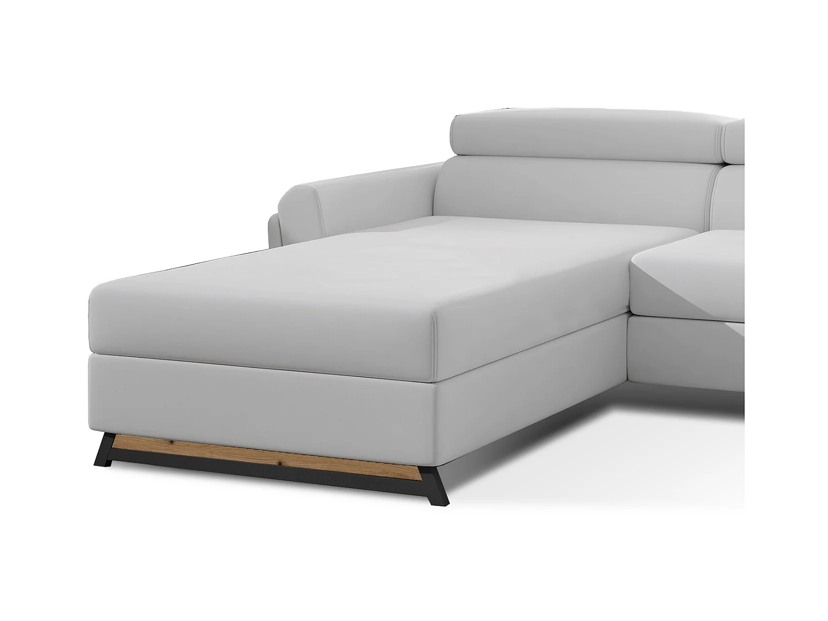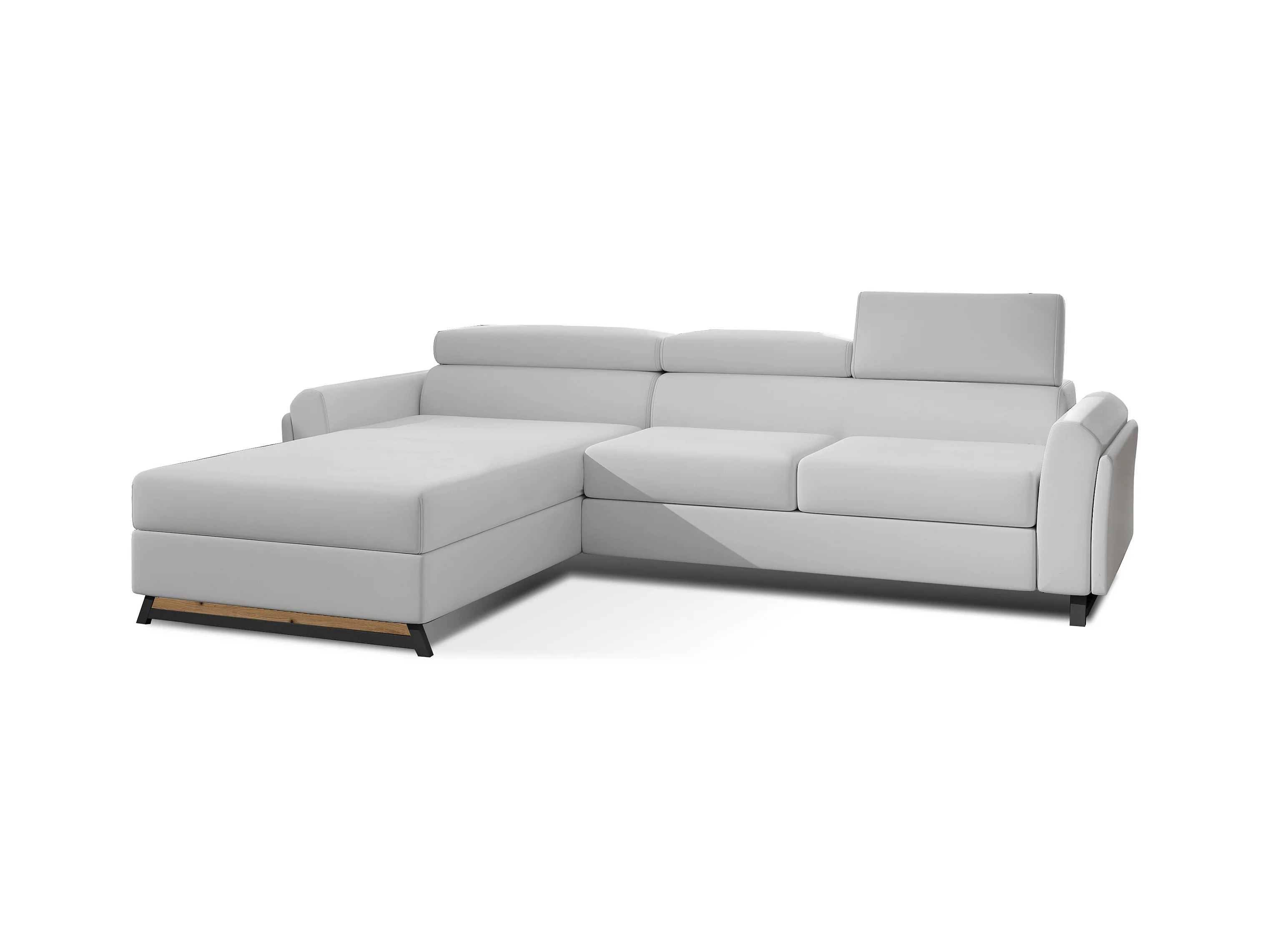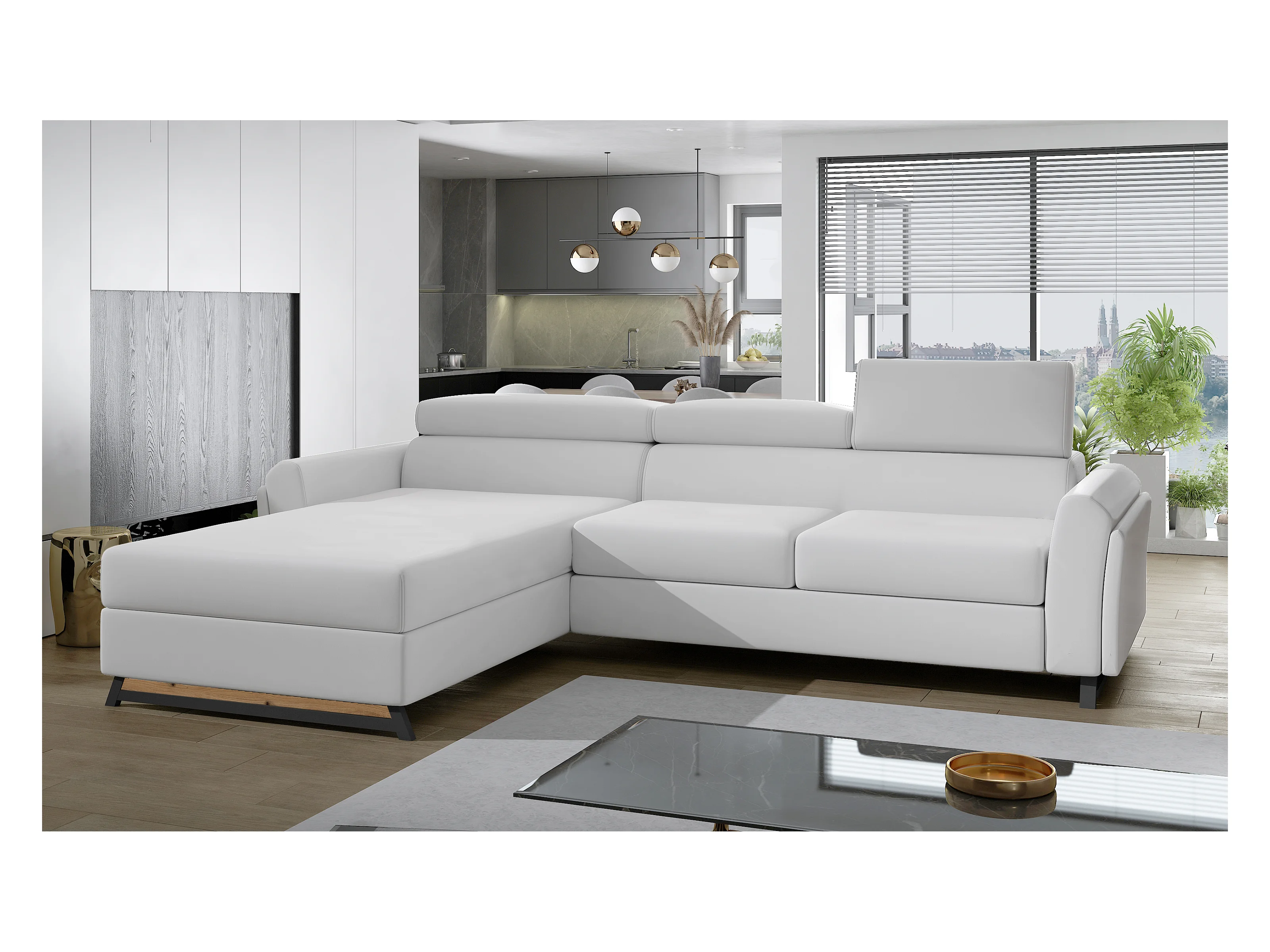 Canapé angle gauche convertible simili clair blanc avec appuis-tête réglables Mazerali 300cm
