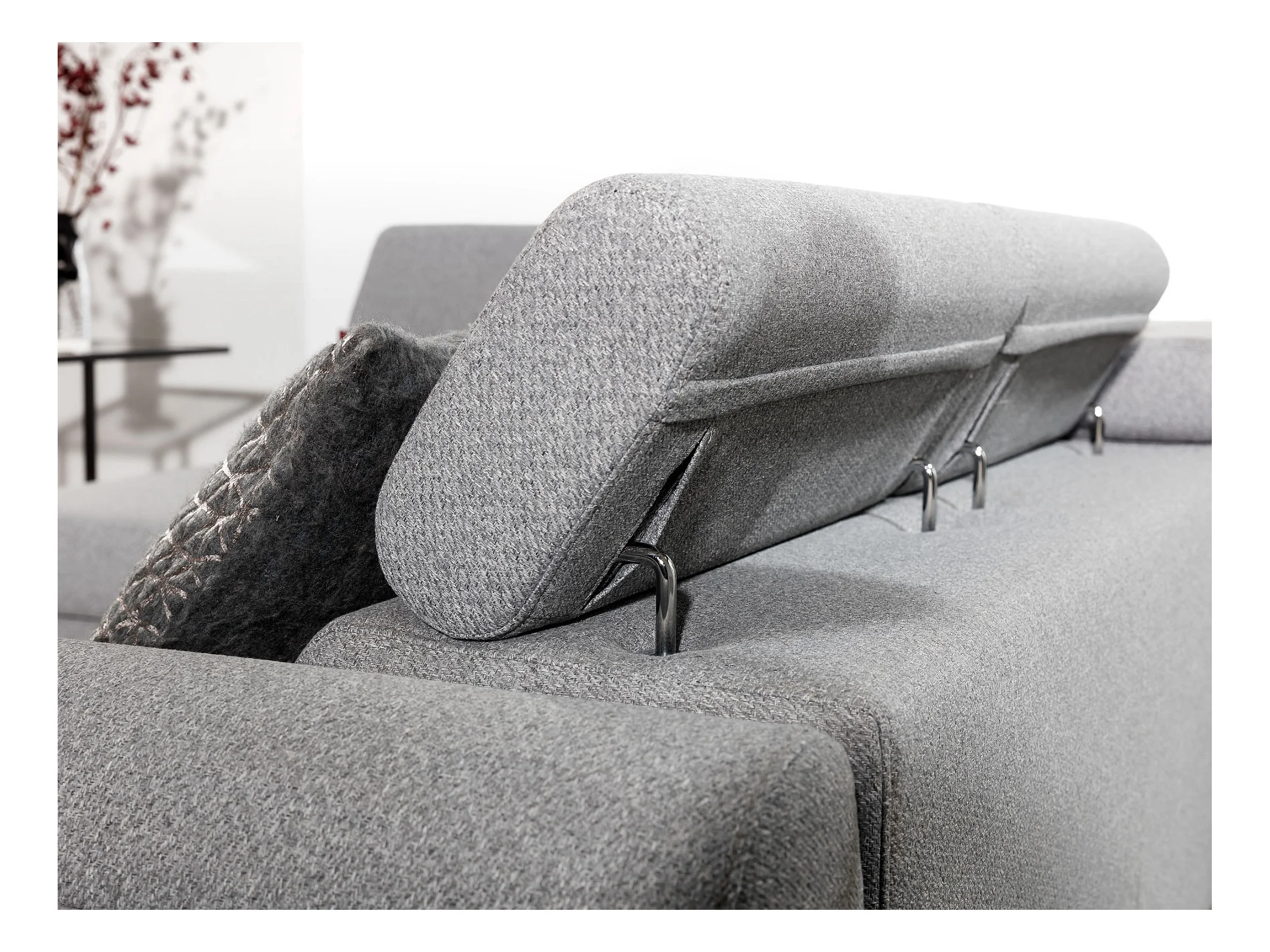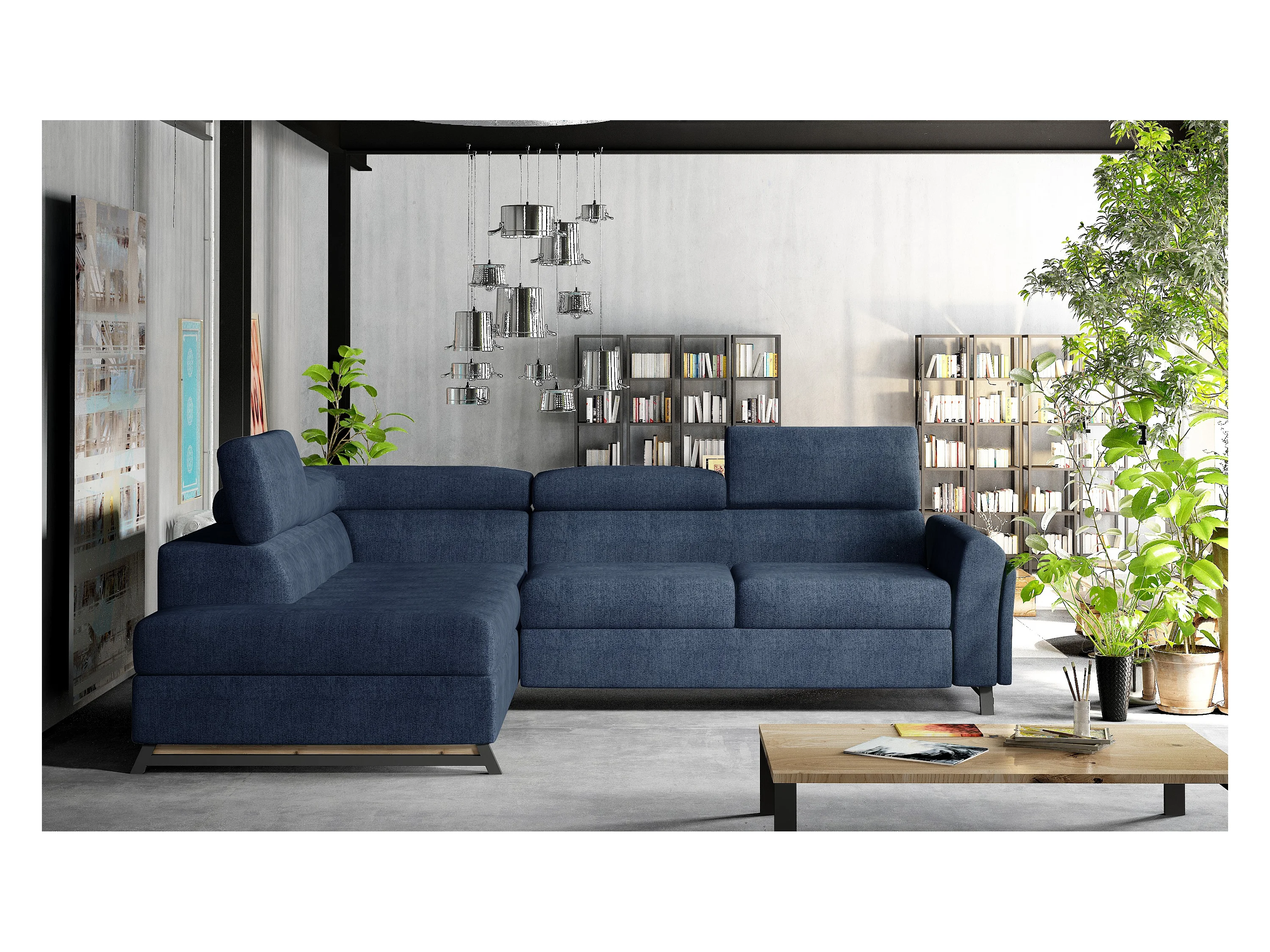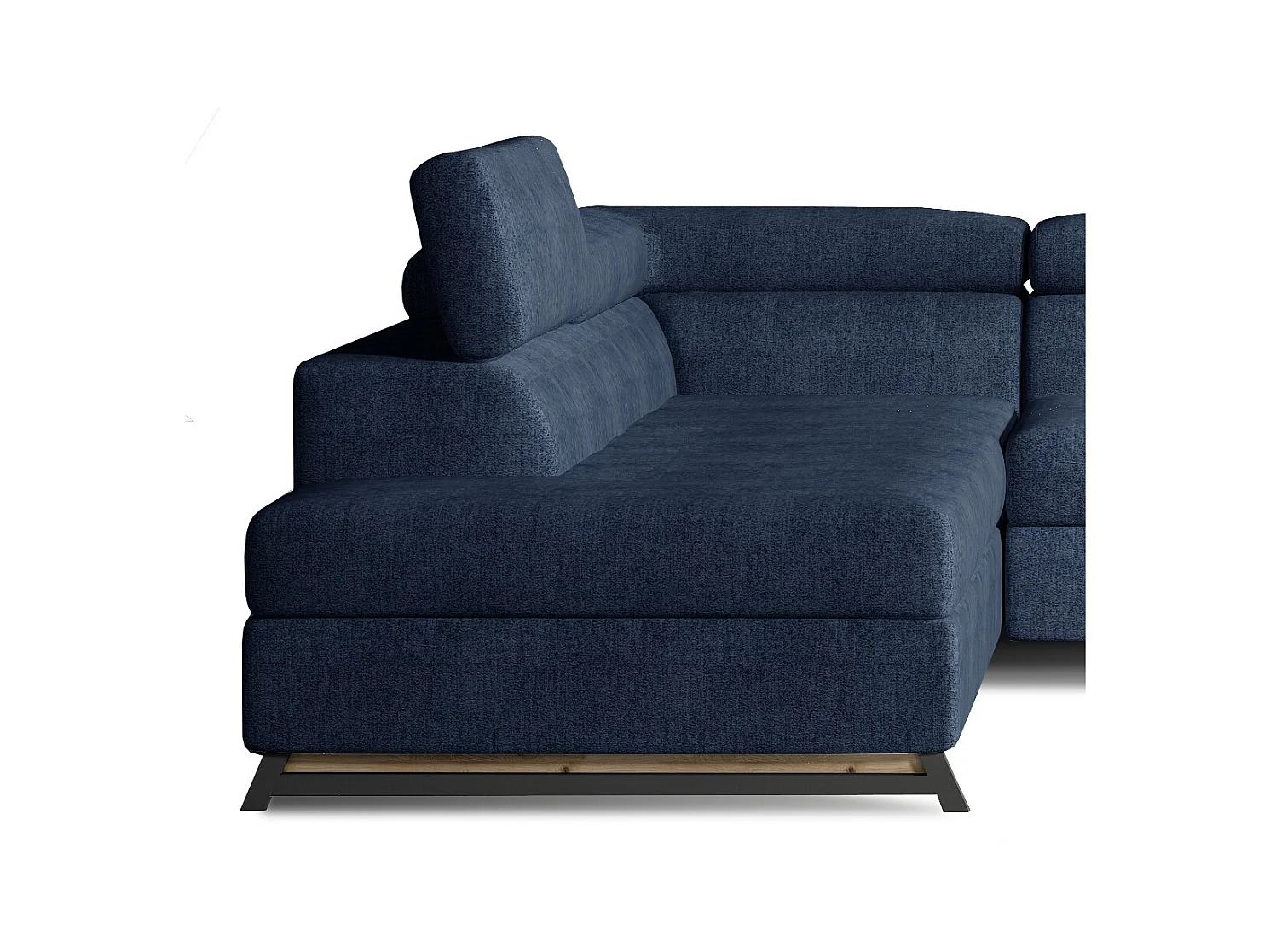 Canapé angle gauche convertible tissu bleu avec têtières réglables Nikos 265cm