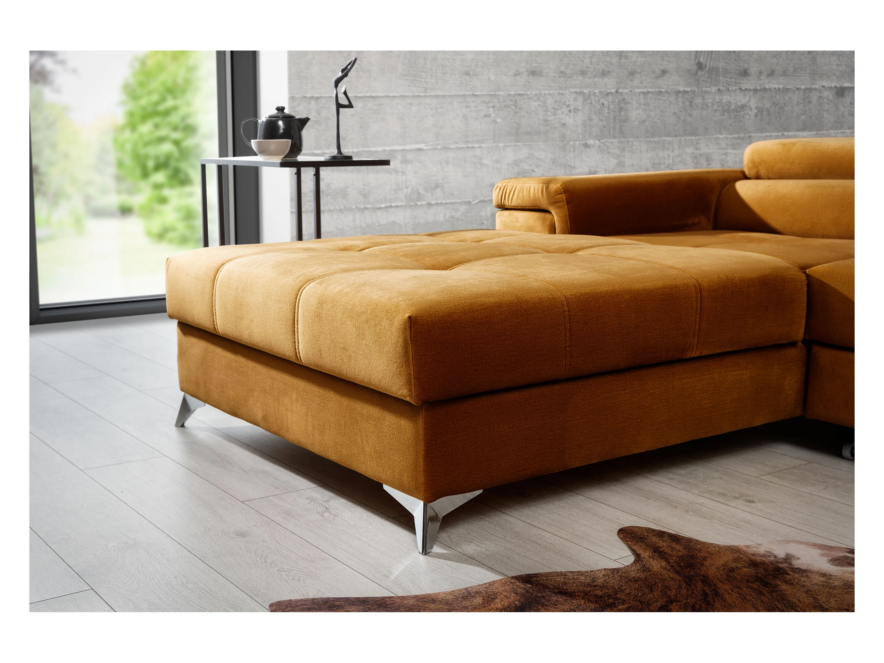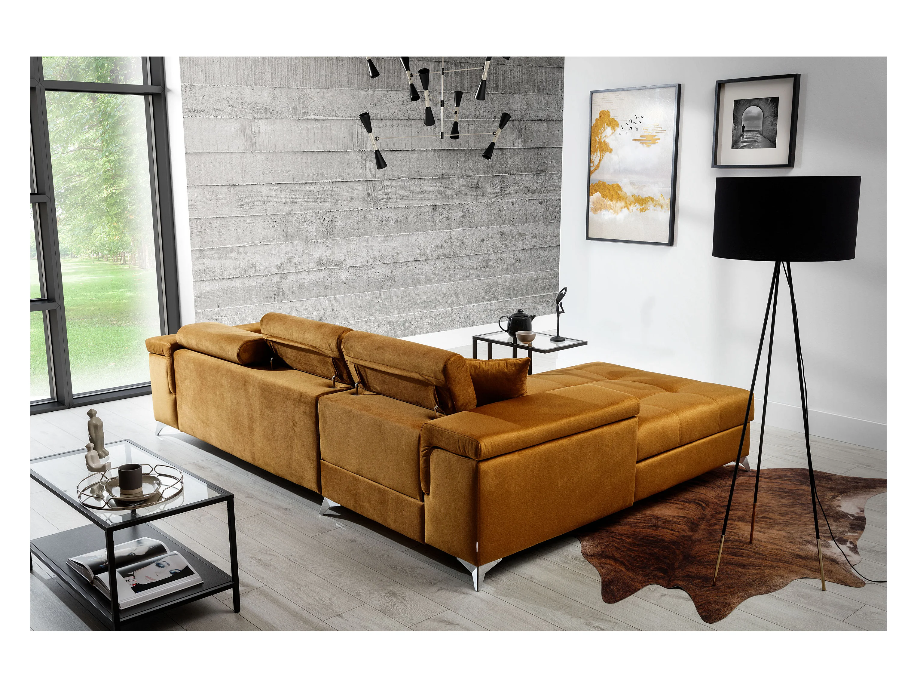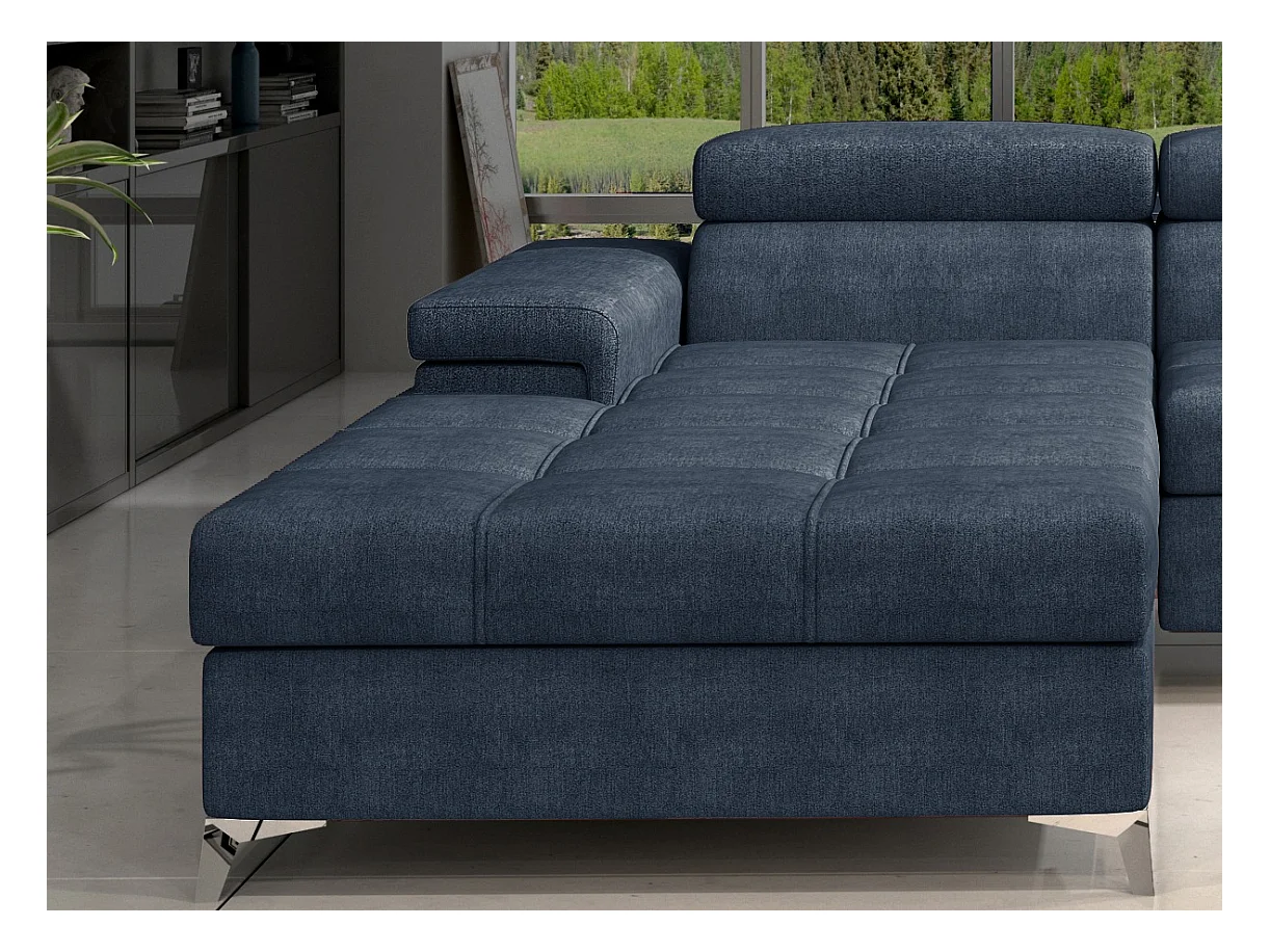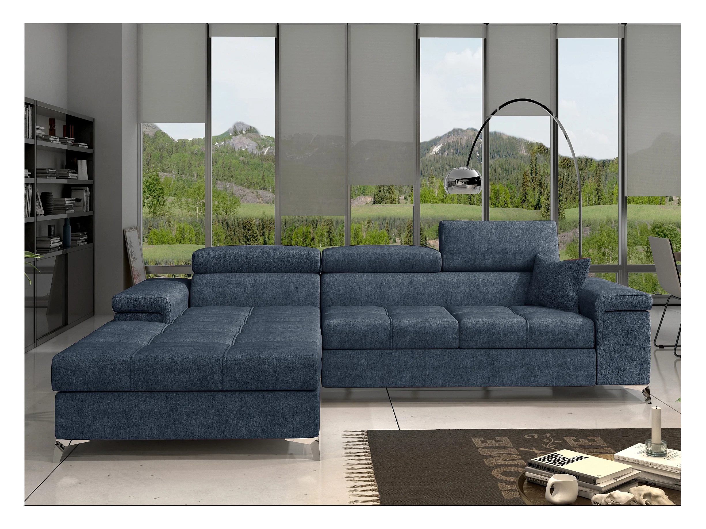 Canapé angle gauche convertible tissu bleu minéral avec appuis-tête réglables Rikaro 280cm