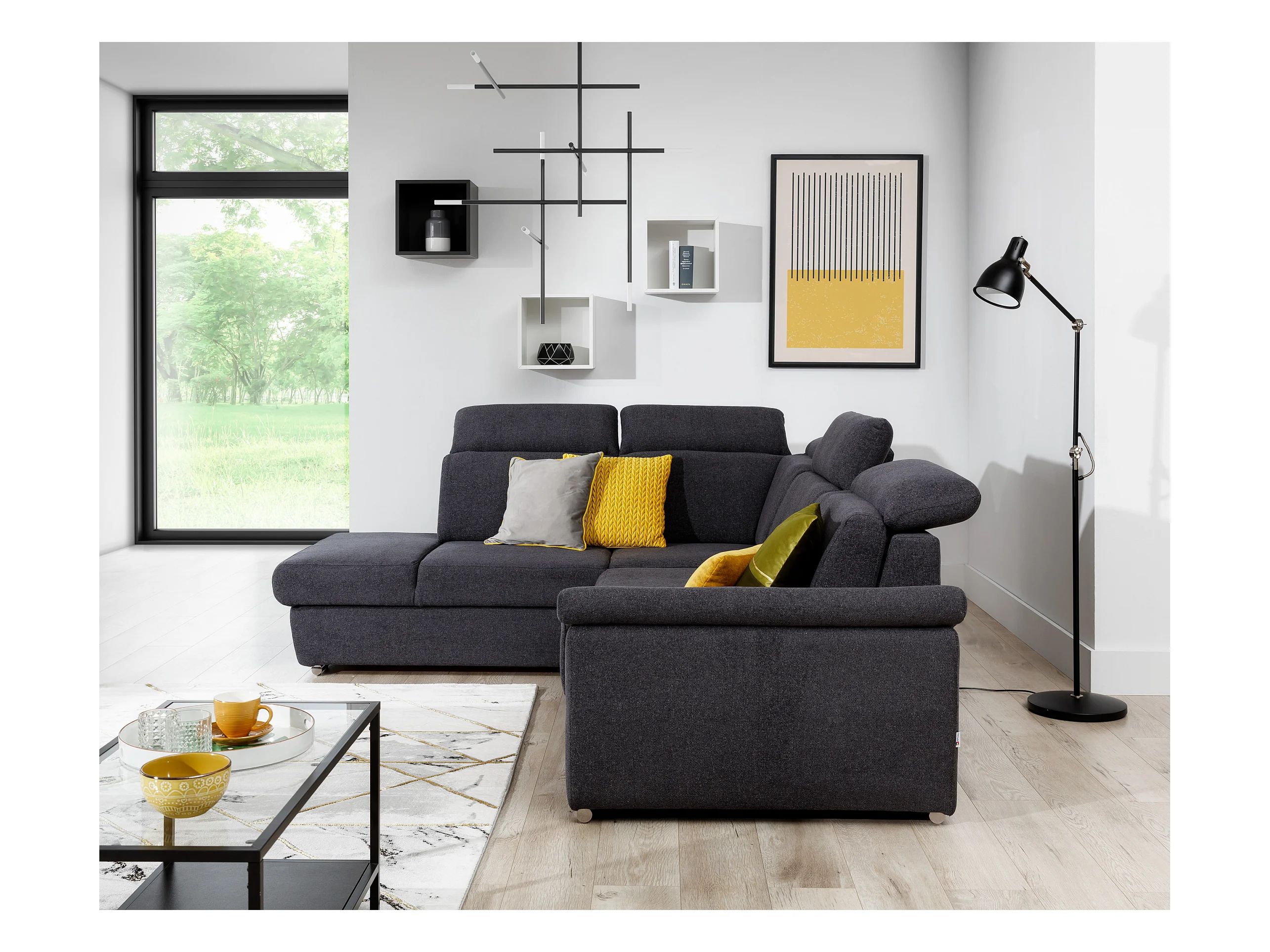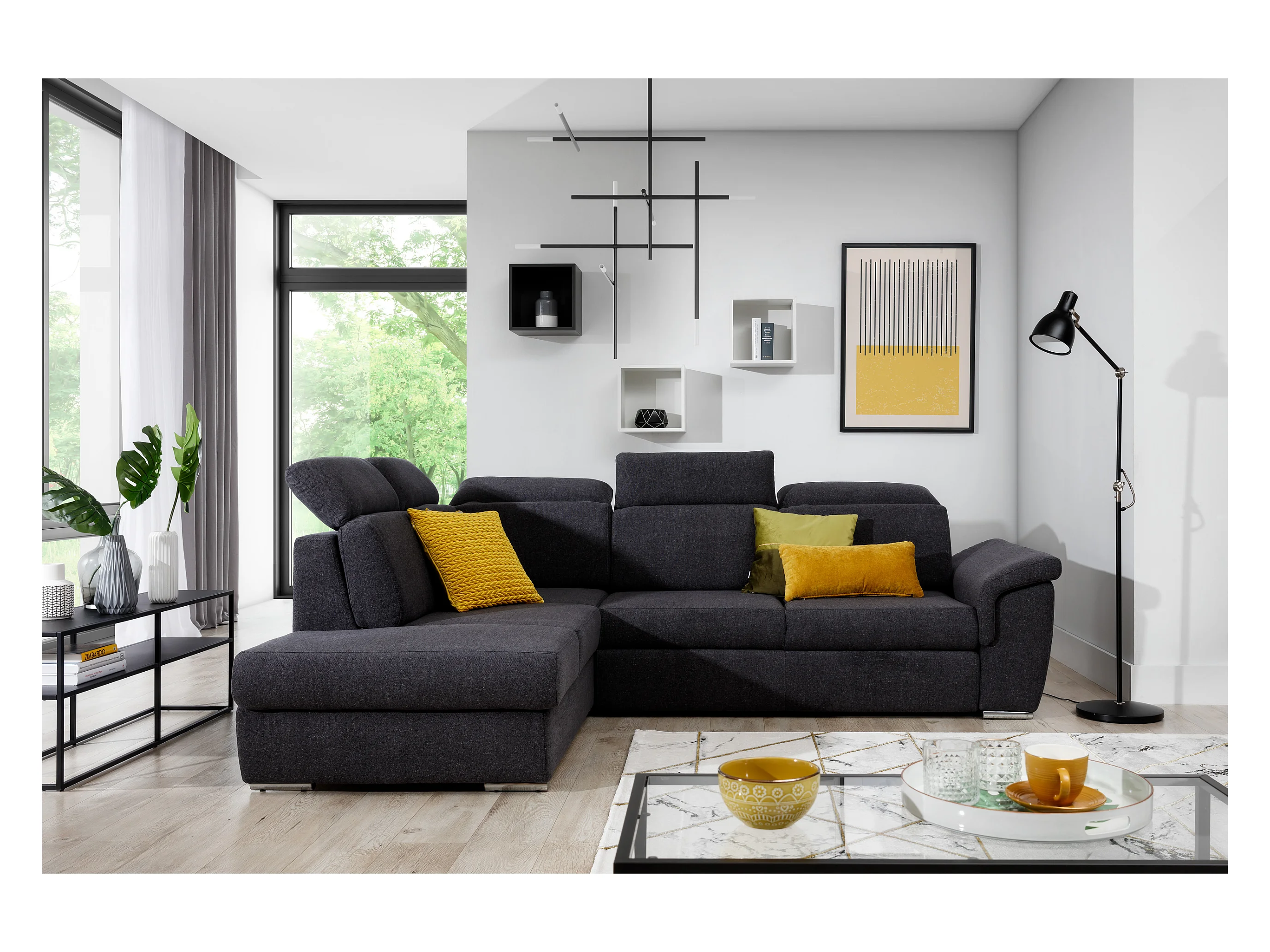 Canapé angle gauche convertible tissu jaune avec appuis-tête réglables Kepita 260cm