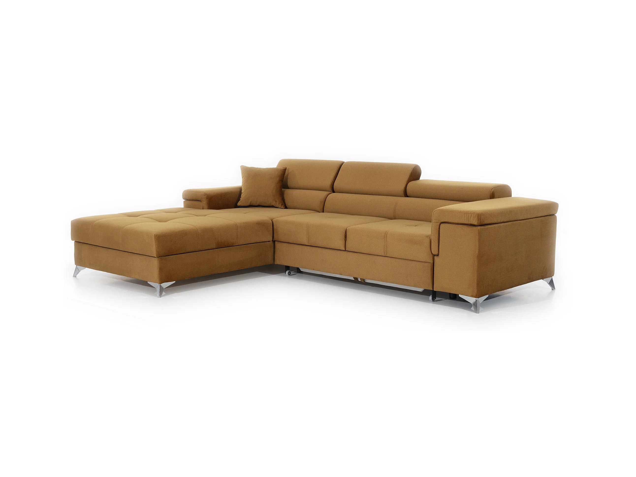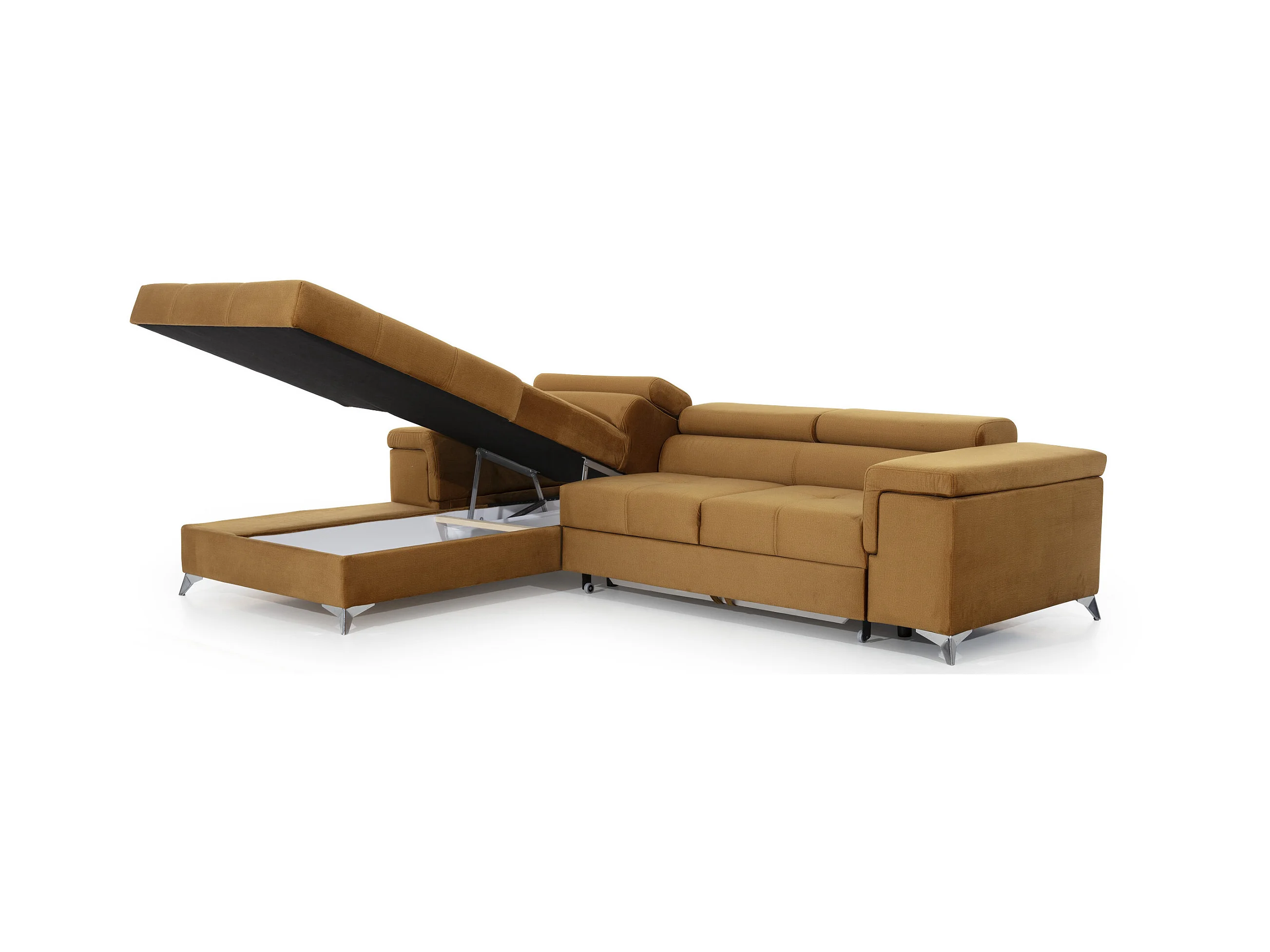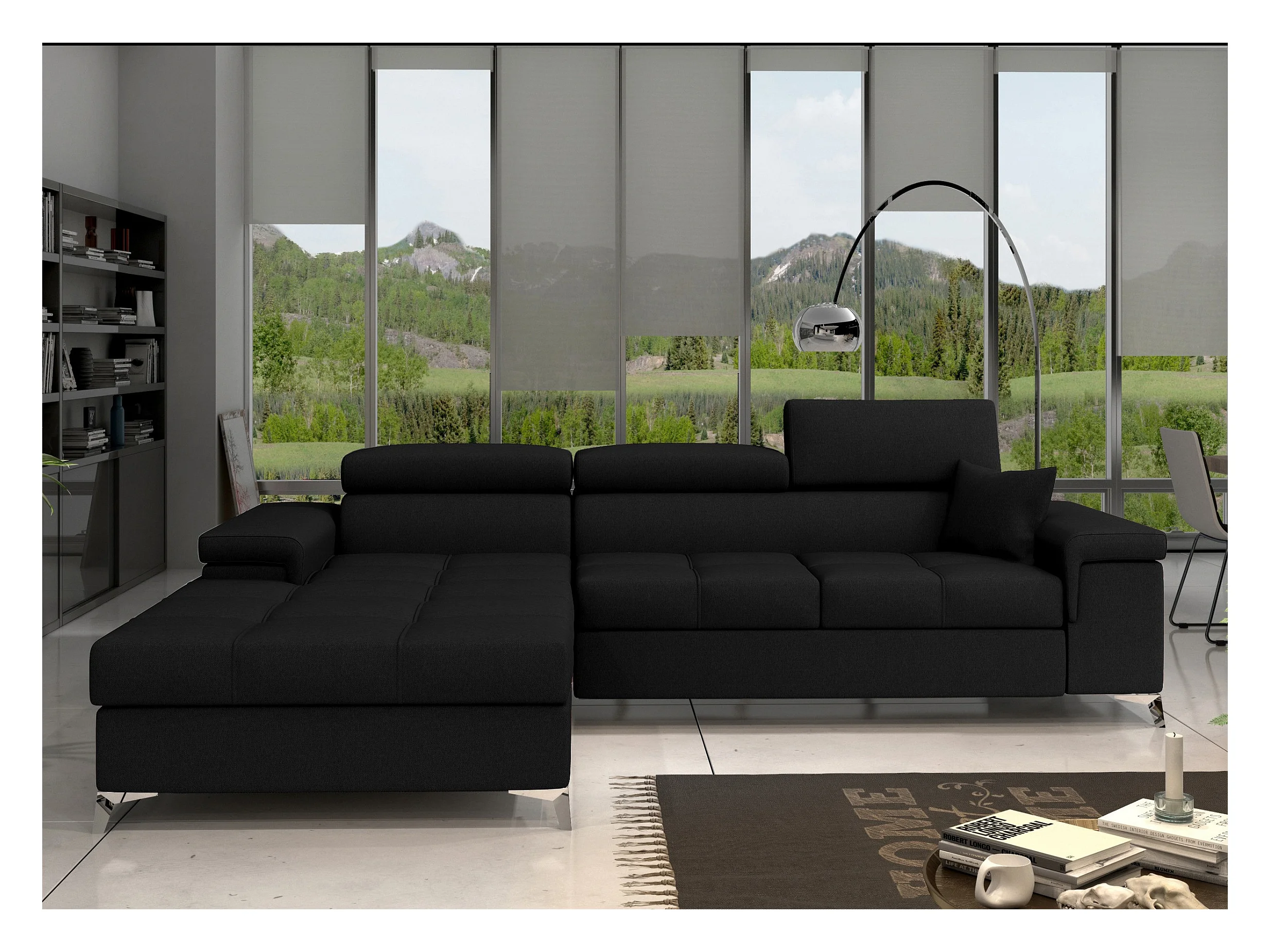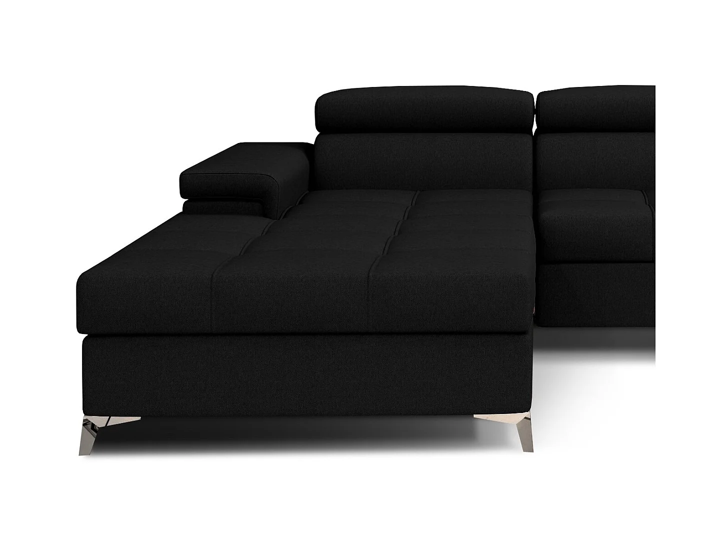 Canapé angle gauche convertible tissu noir avec appuis-tête réglables Rikaro 280cm