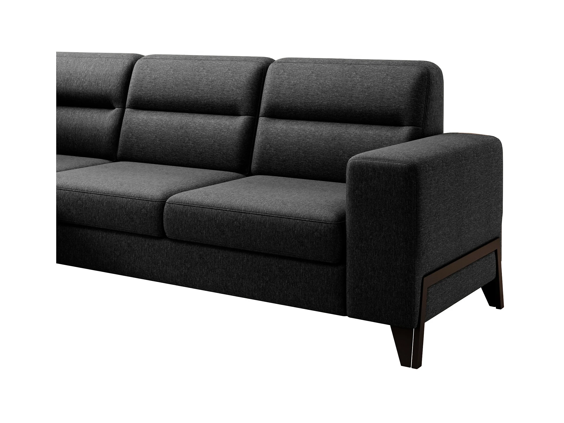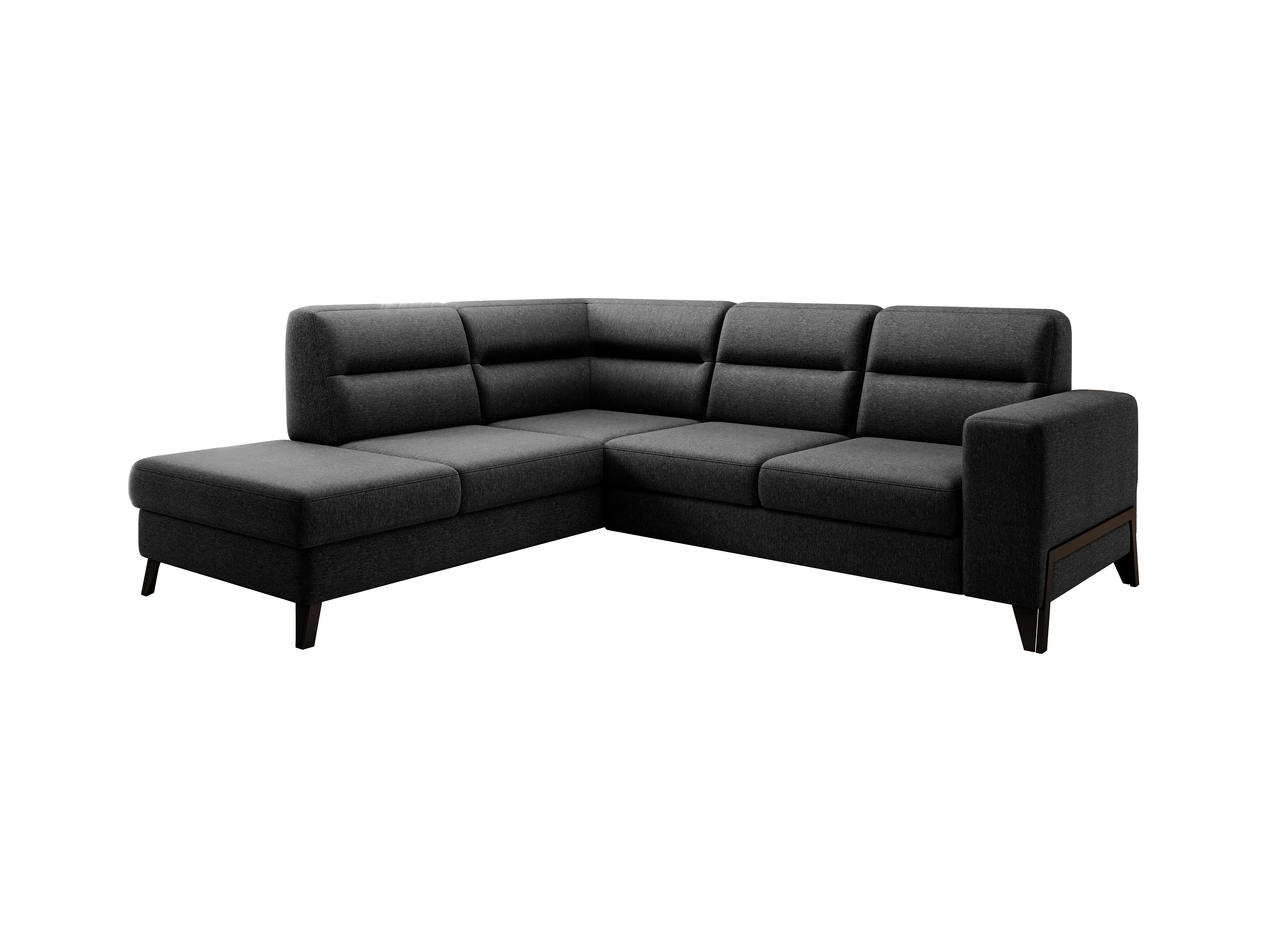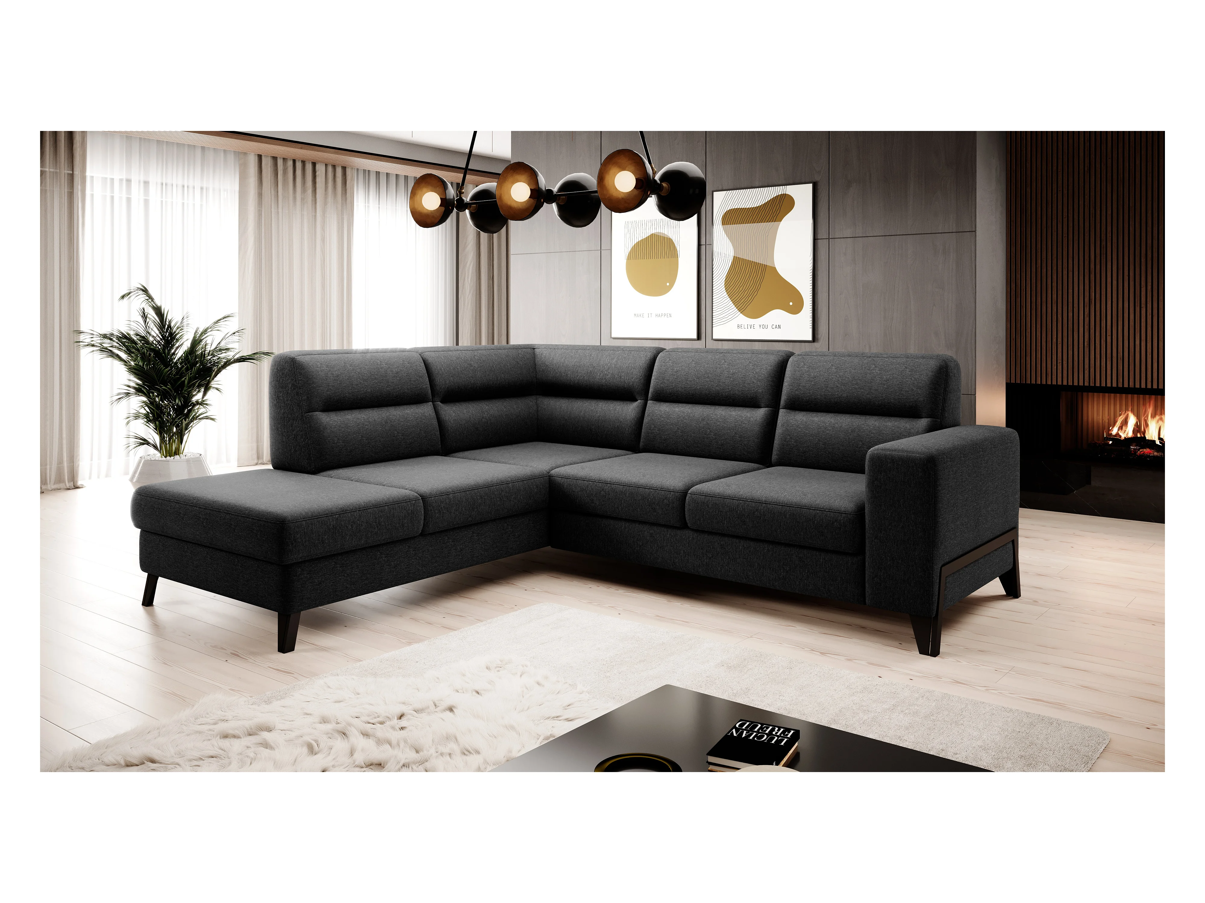 Canapé angle gauche convertible tissu noir et pieds acier noir Kassidi 277cm