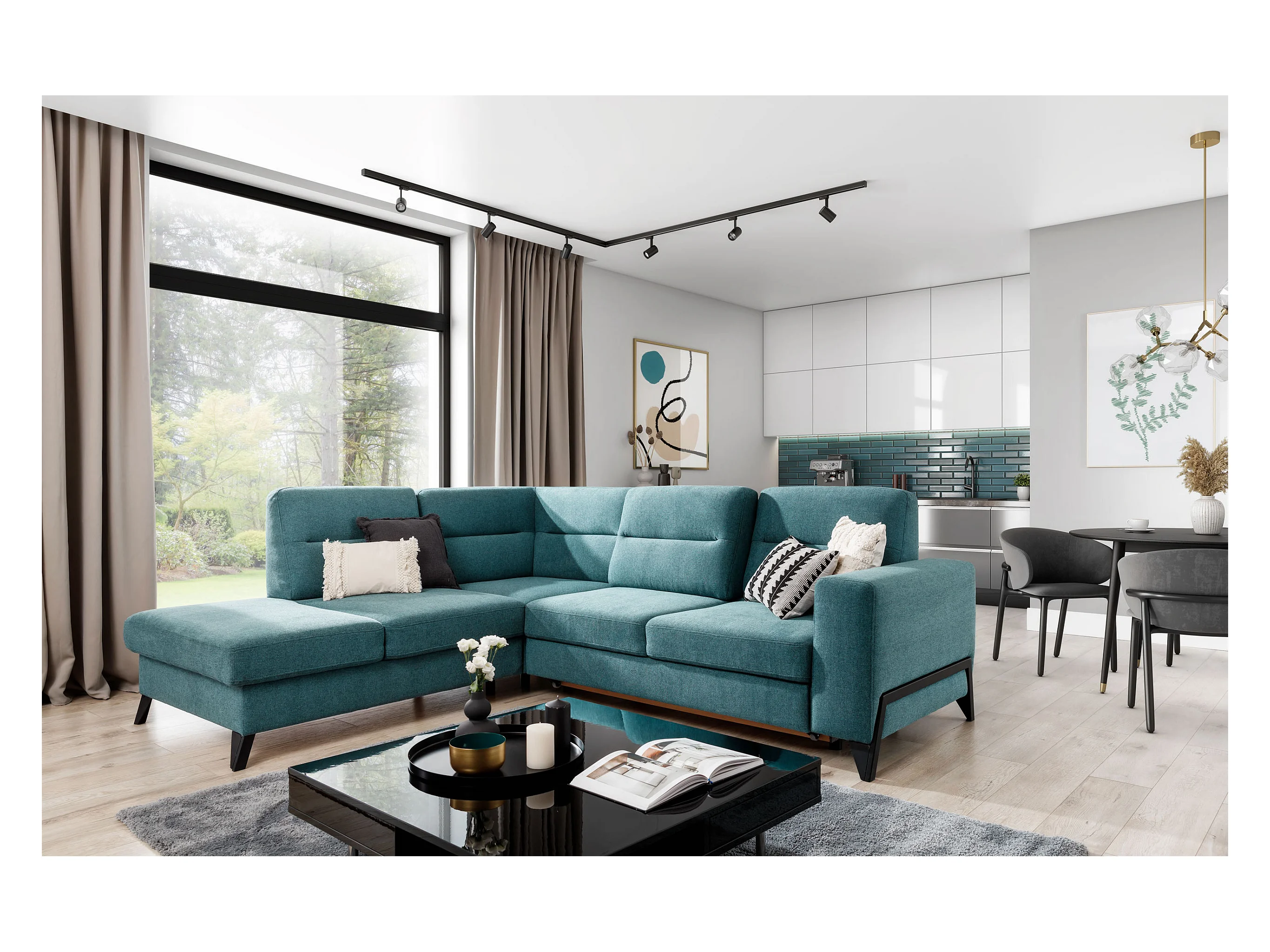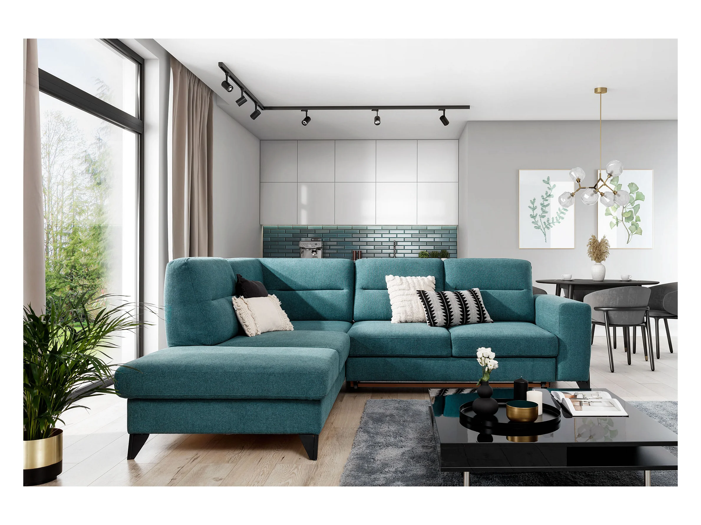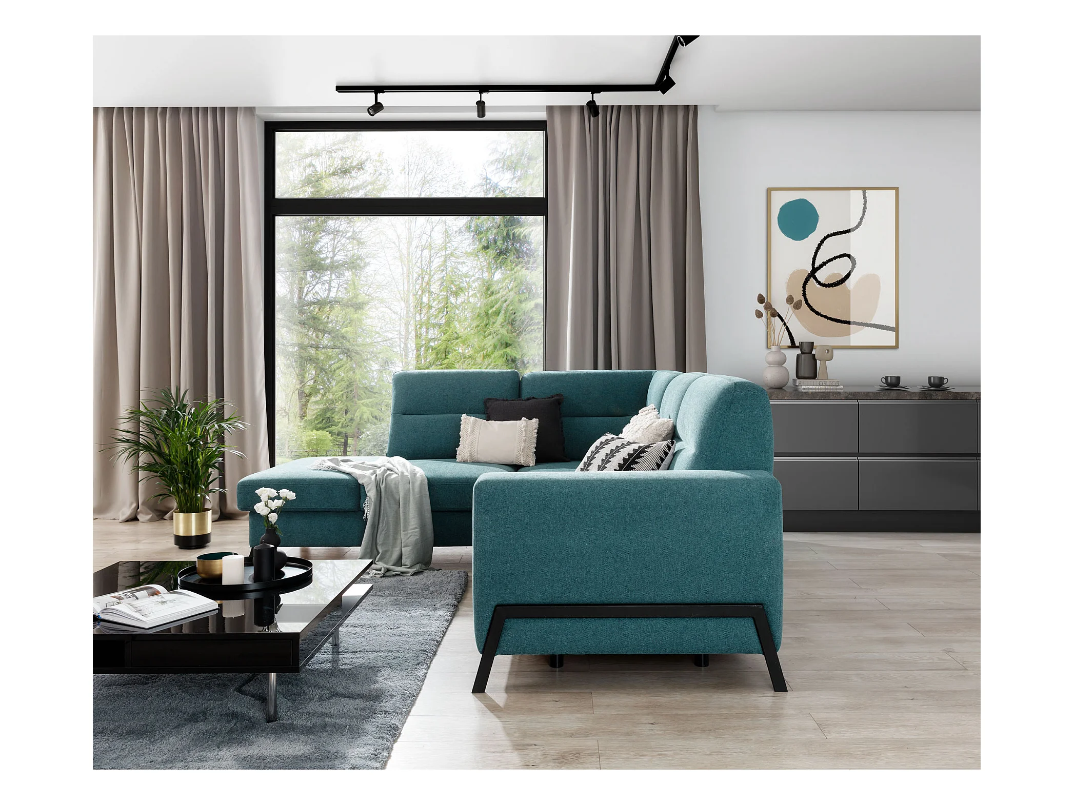 Canapé angle gauche convertible tissu noir et pieds acier noir Kassidi 277cm