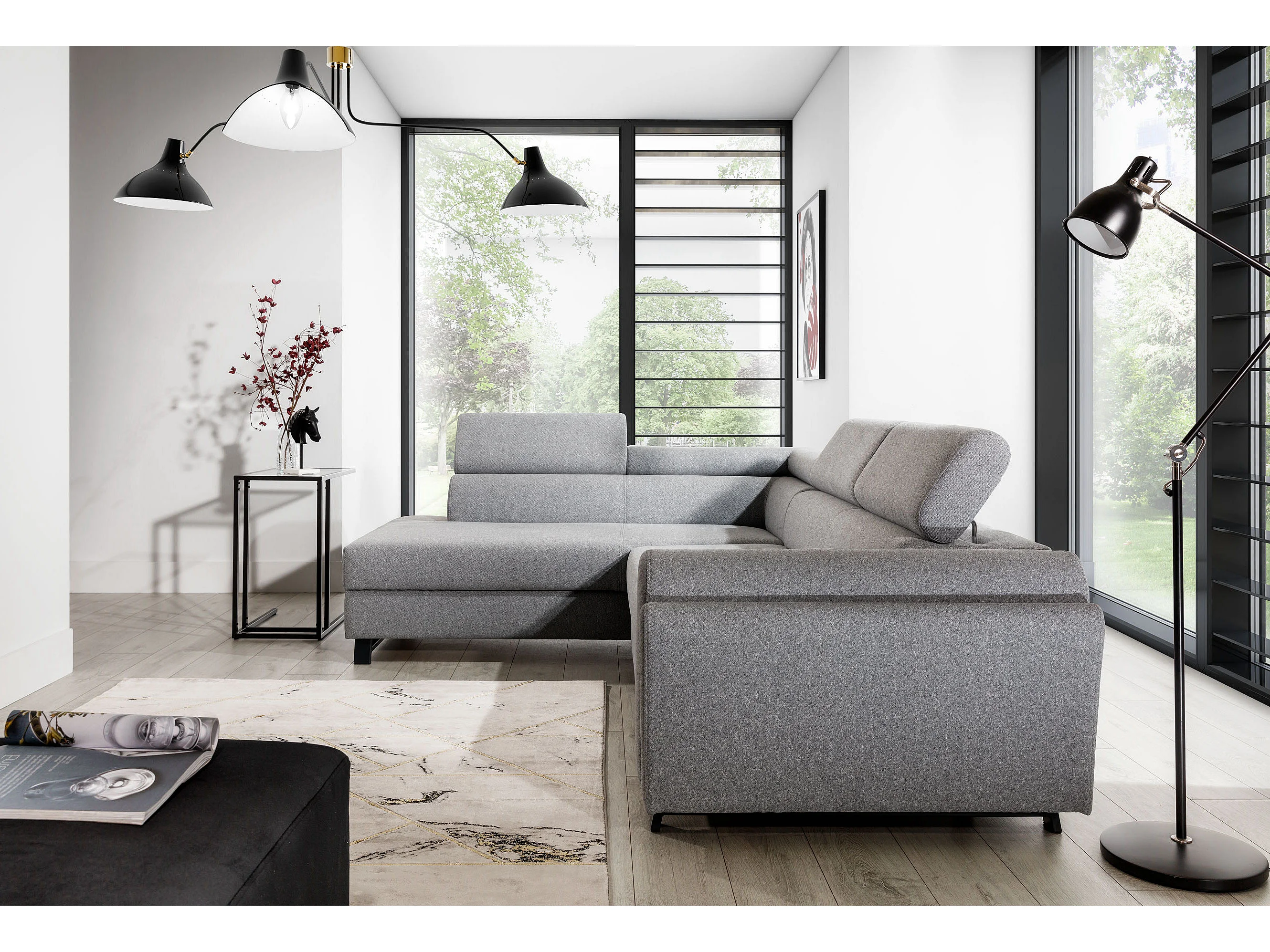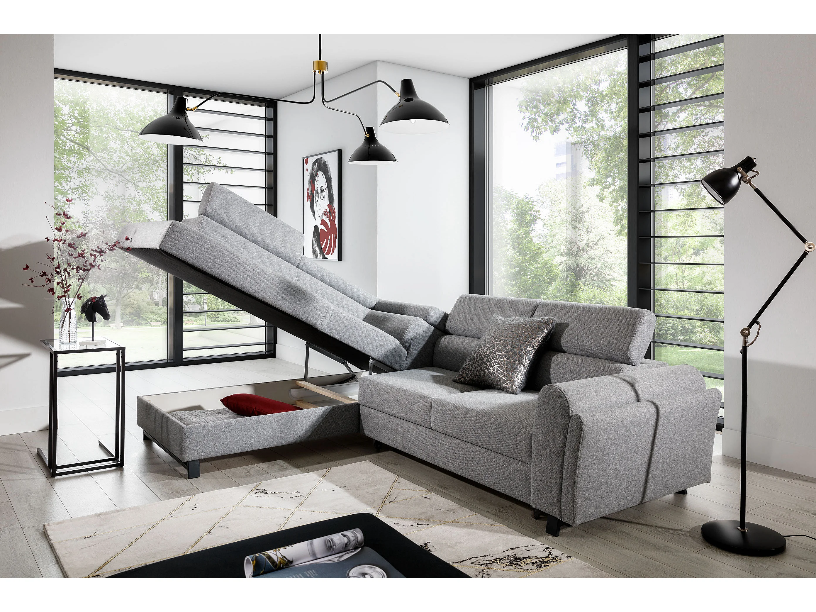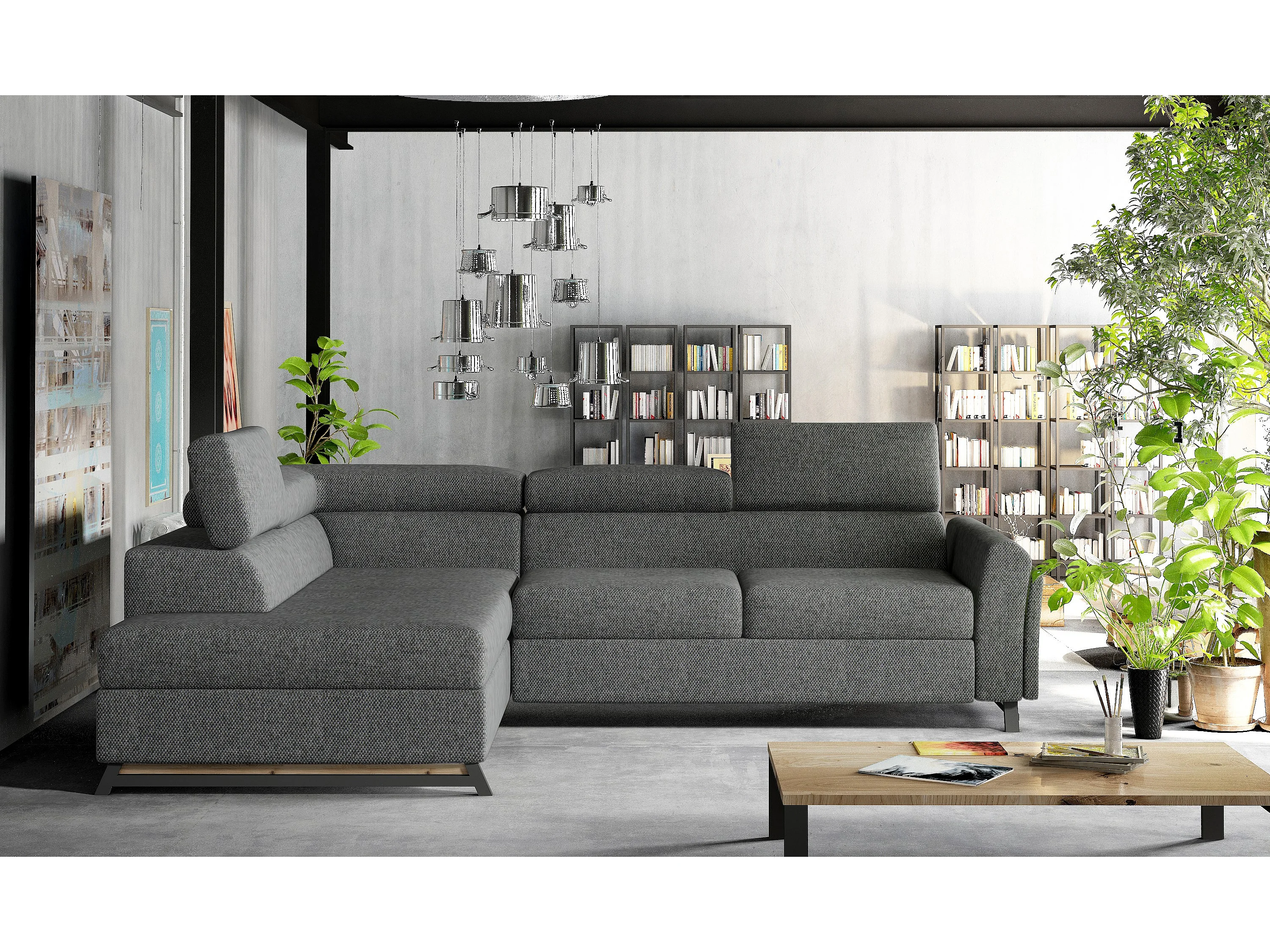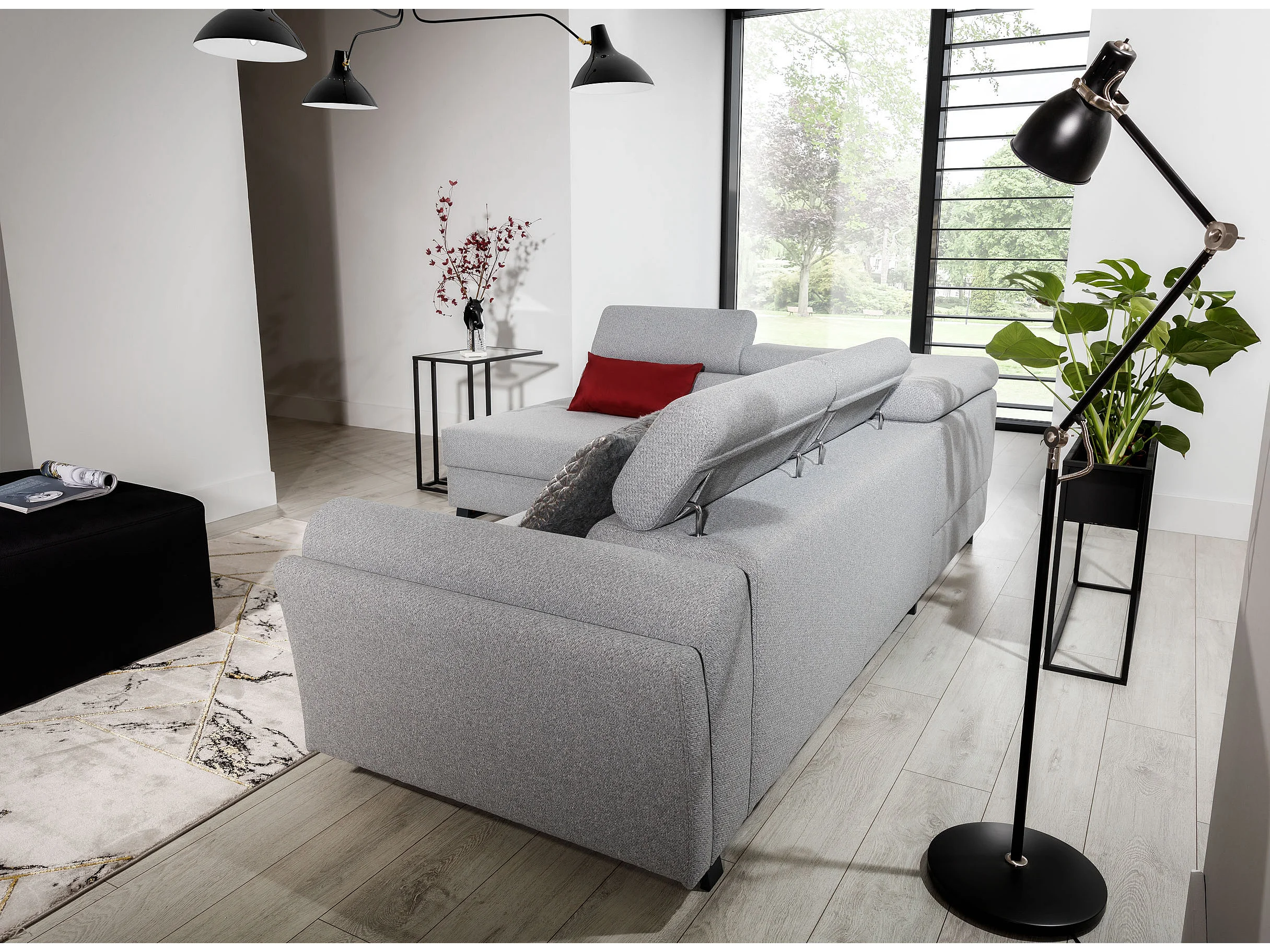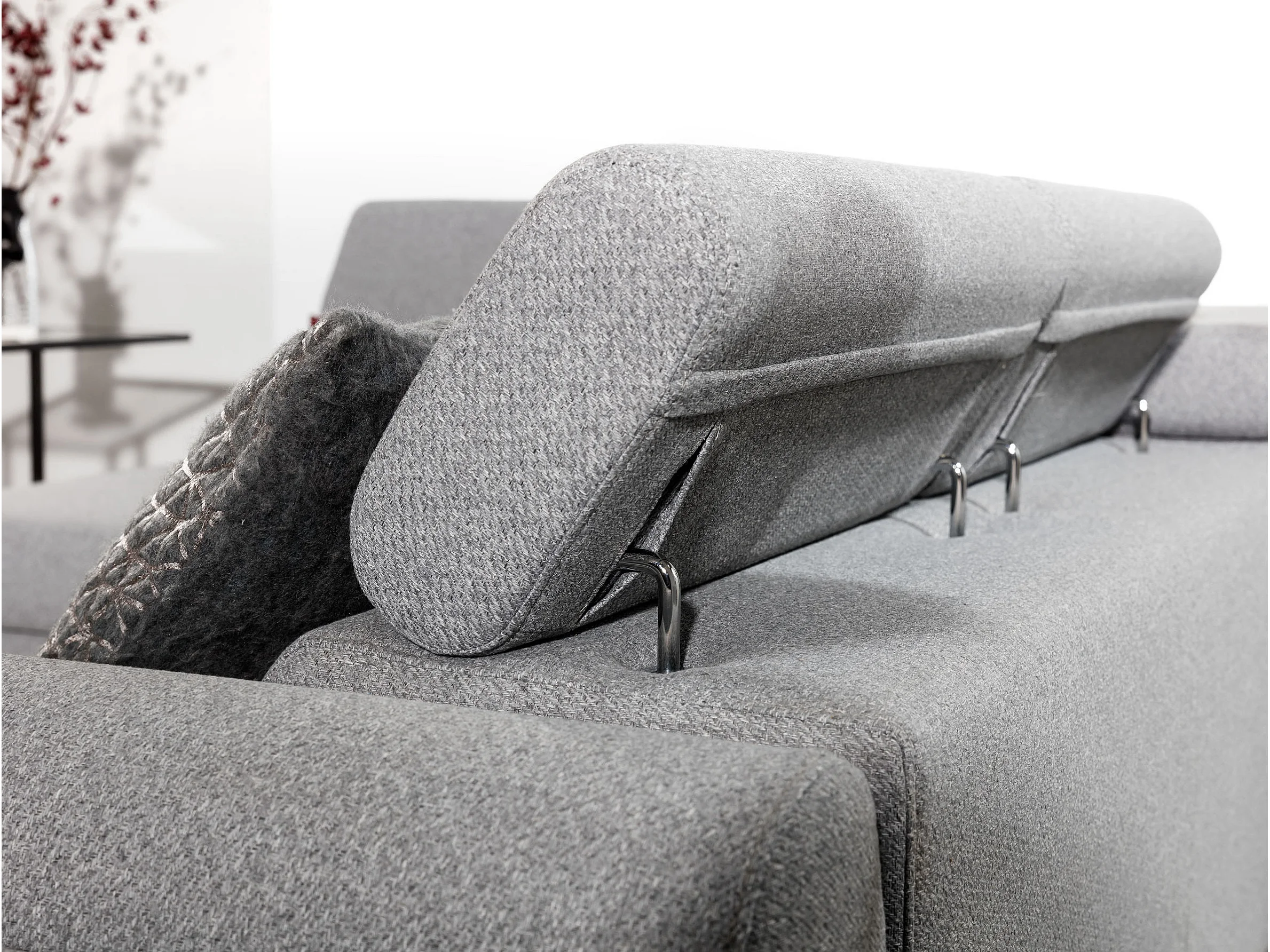 Canapé angle gauche convertible tissu vert d'eau avec têtières réglables Nikos 265cm