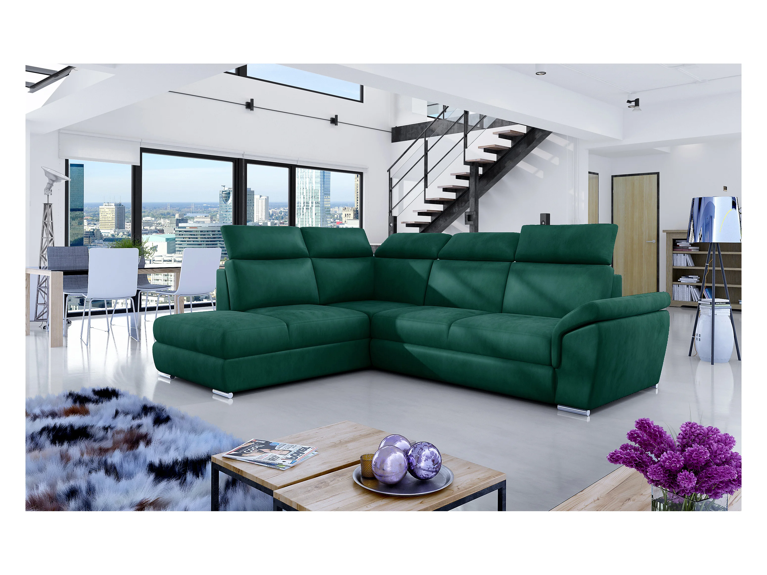 Canapé angle gauche convertible velours vert foncé avec appuis-tête réglables Kepita 260cm