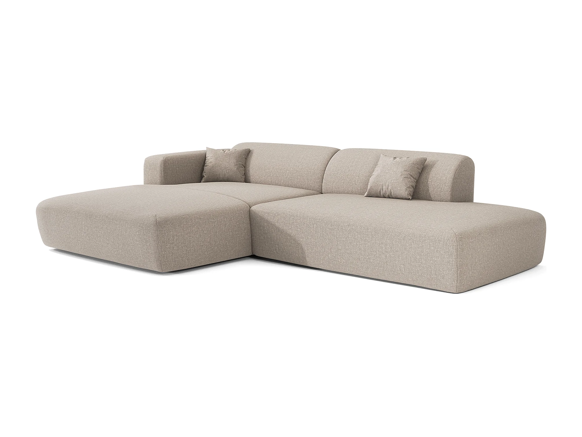 Canapé angle gauche ouvert tissu tramé beige 5 places MYRA