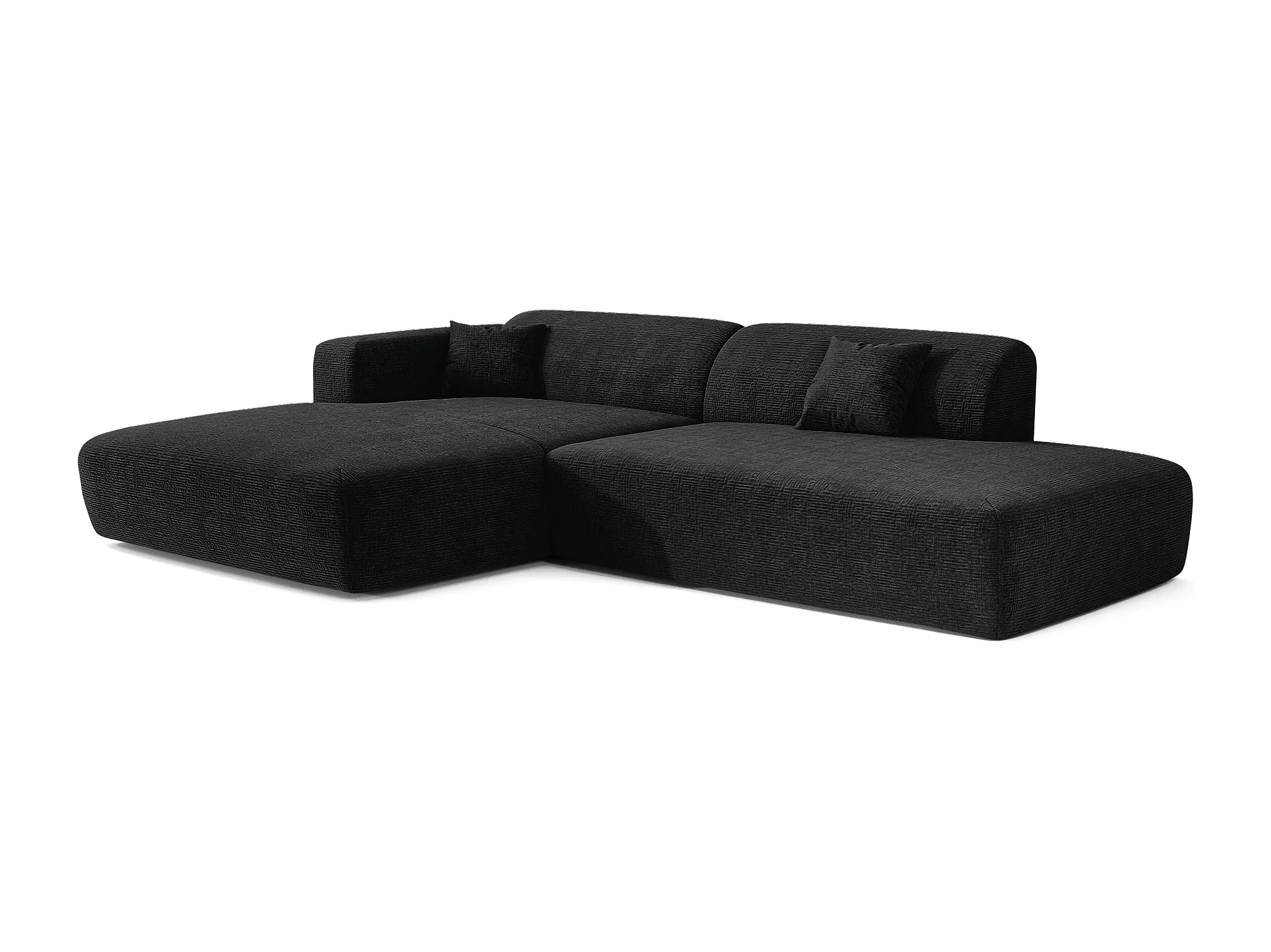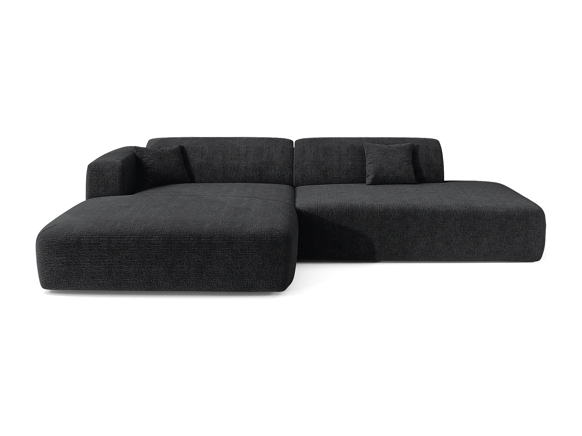 Canapé angle gauche ouvert velours à motifs anthracite foncé 5 places MYRA