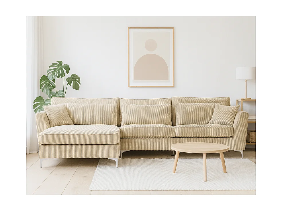Canapé angle gauche velours côtelé beige Isla