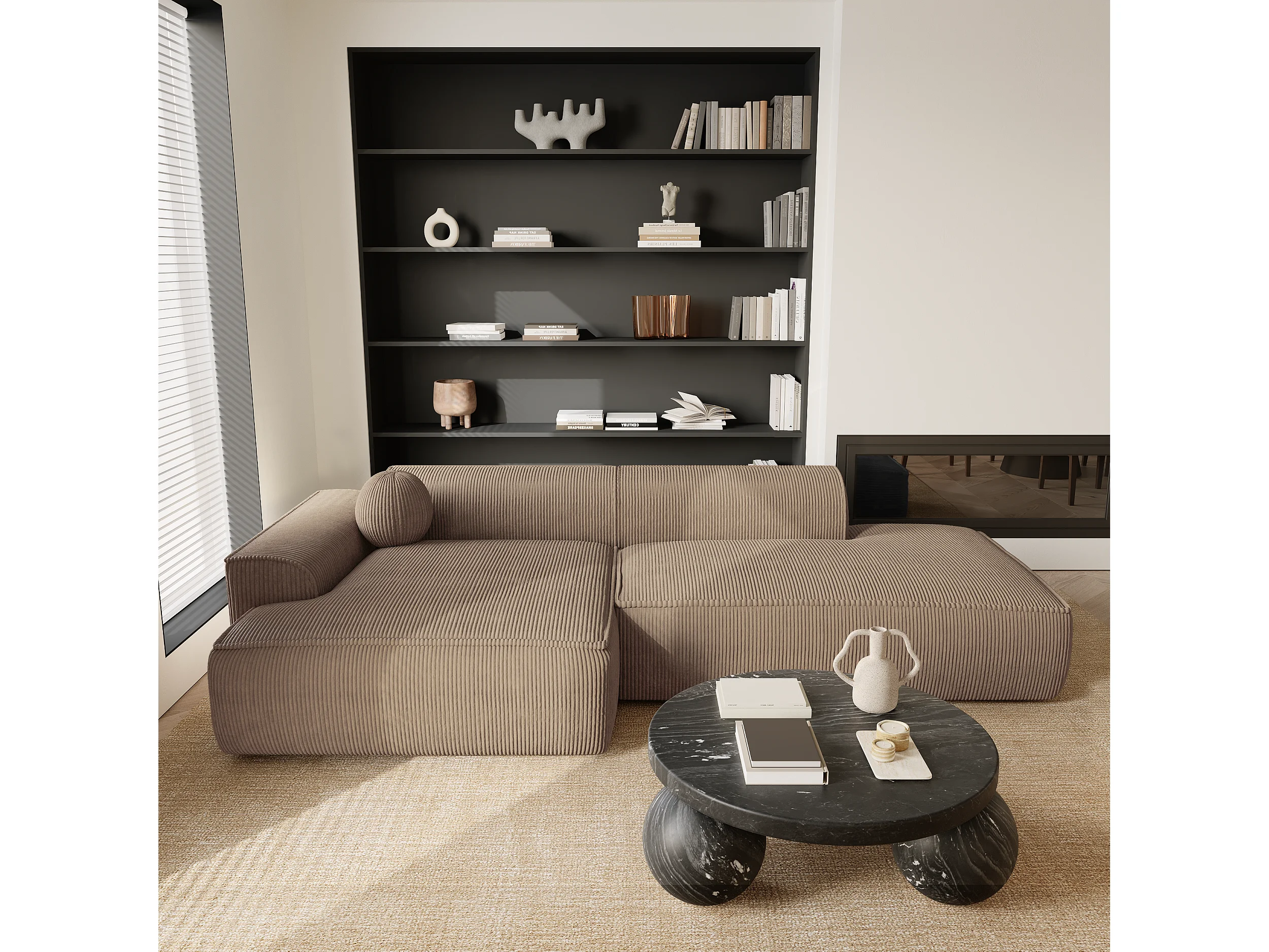 Canapé angle gauche velours côtelé taupe 300cm ANIA
