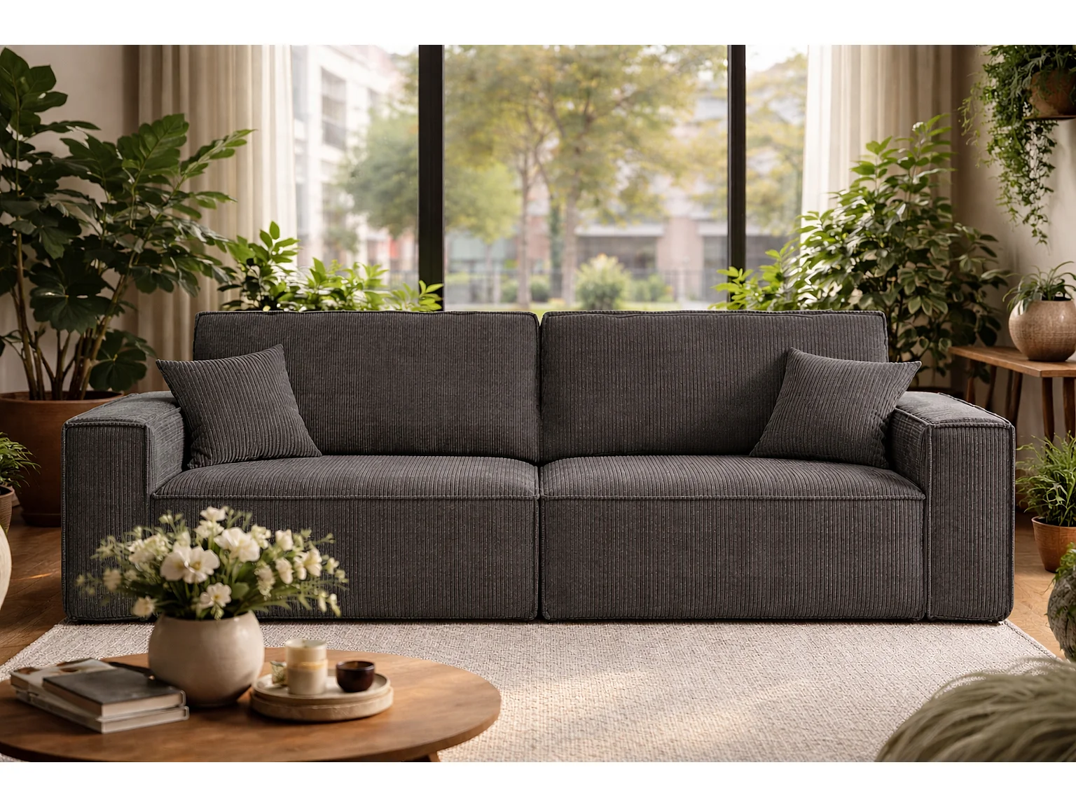 Canapé avec 2 grands coffres de rangement, couleur grise, idéal pour le salon, qualité fabricant direct CARLOS – VINOTTI