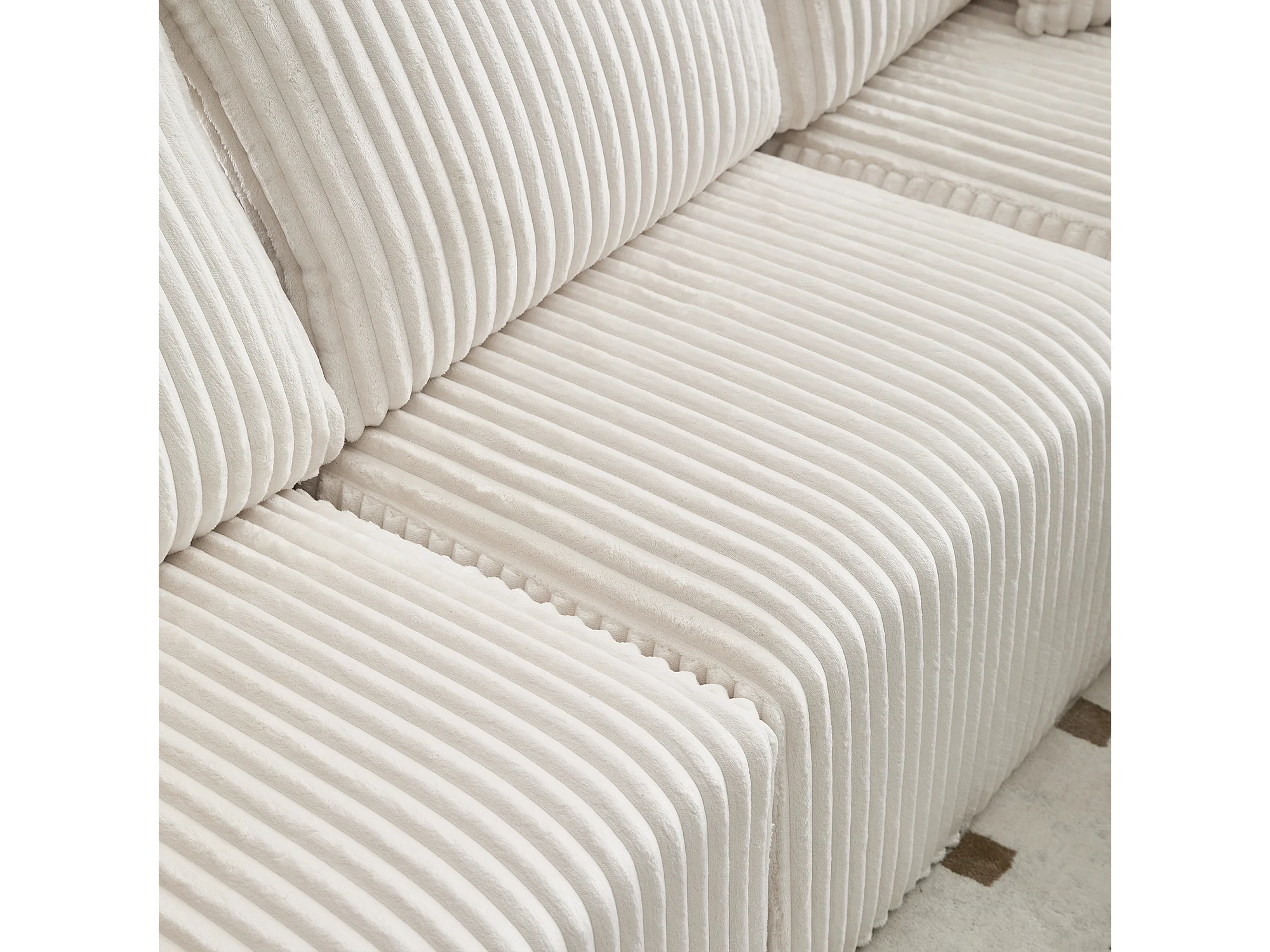 Canapé avec porte-gobelet - Canapé 3 places avec cinq coussins et poches latérales - velours côtelé beige