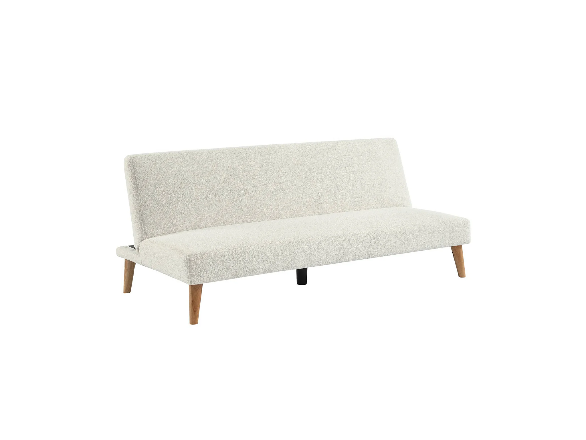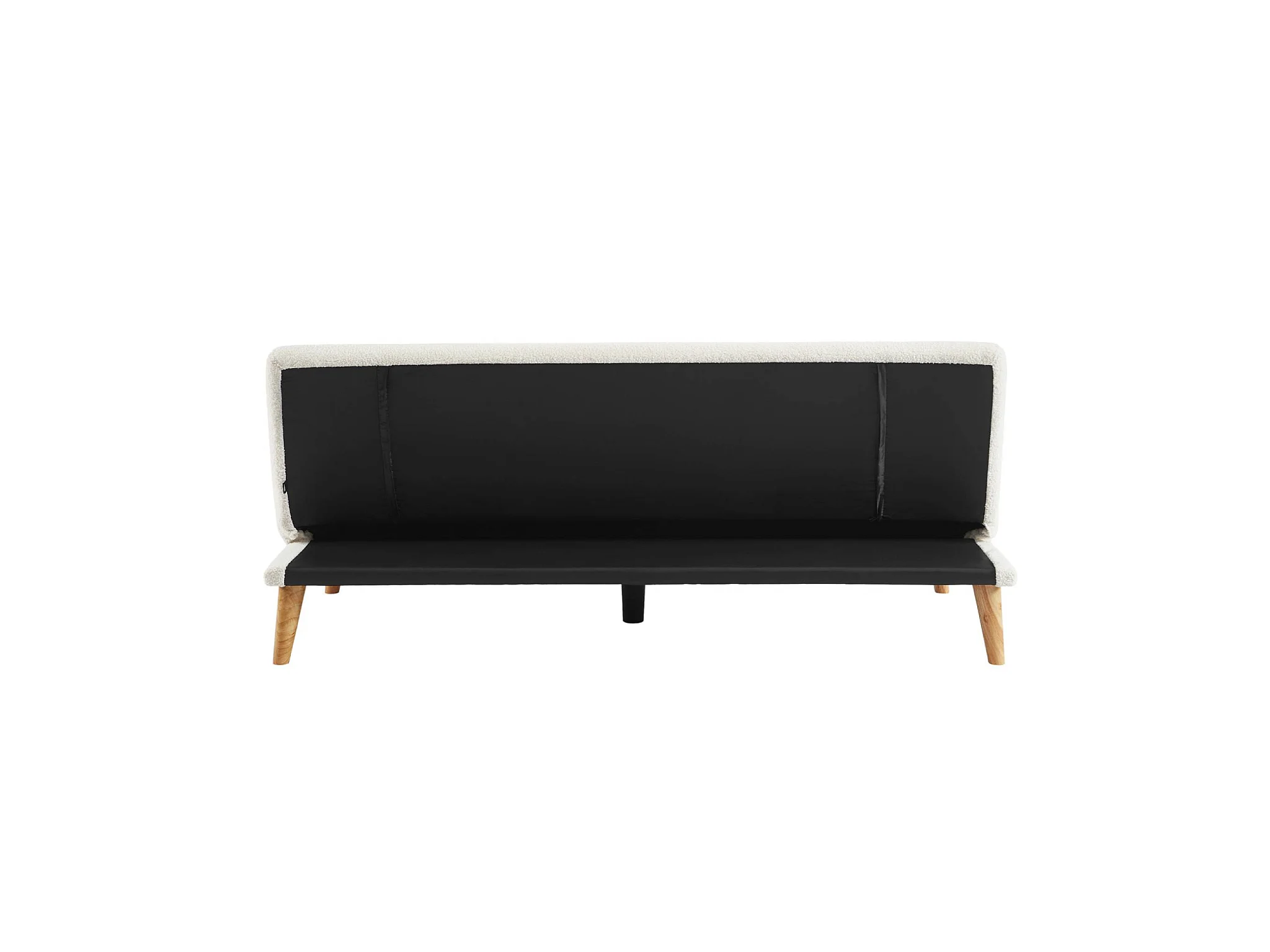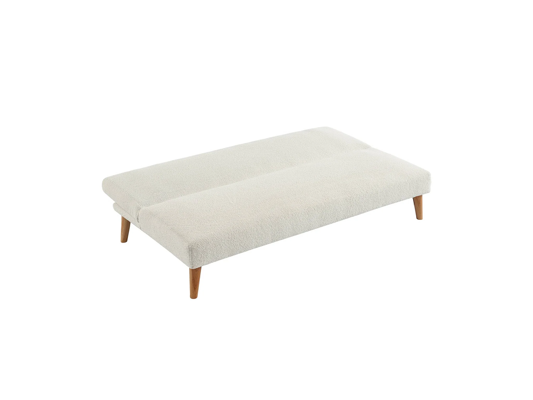 Canapé banquette convertible 3 places bouclette blanche piètement bois d'hévéa L 180 x P 100 x H 74.5 cm - Tom