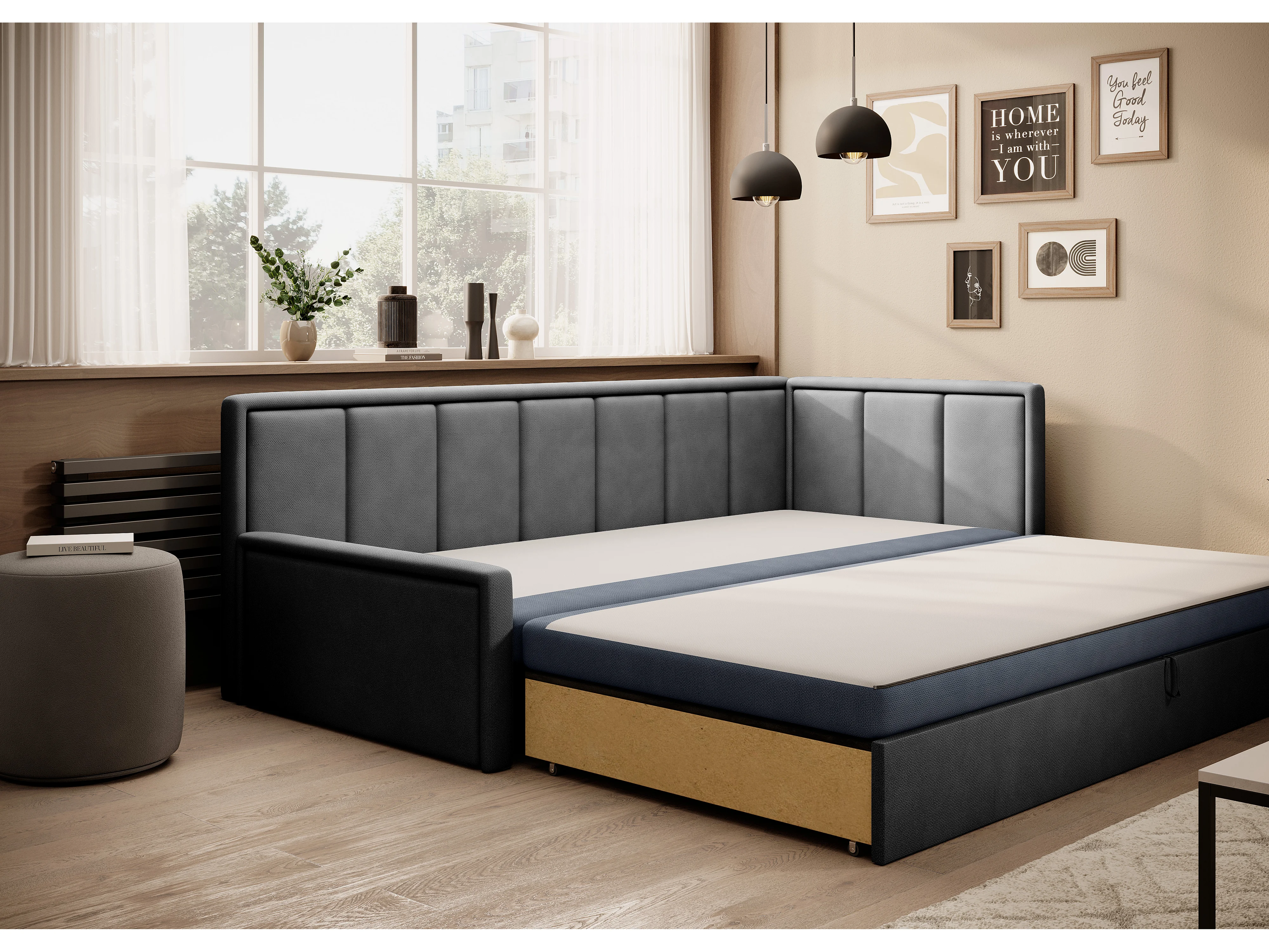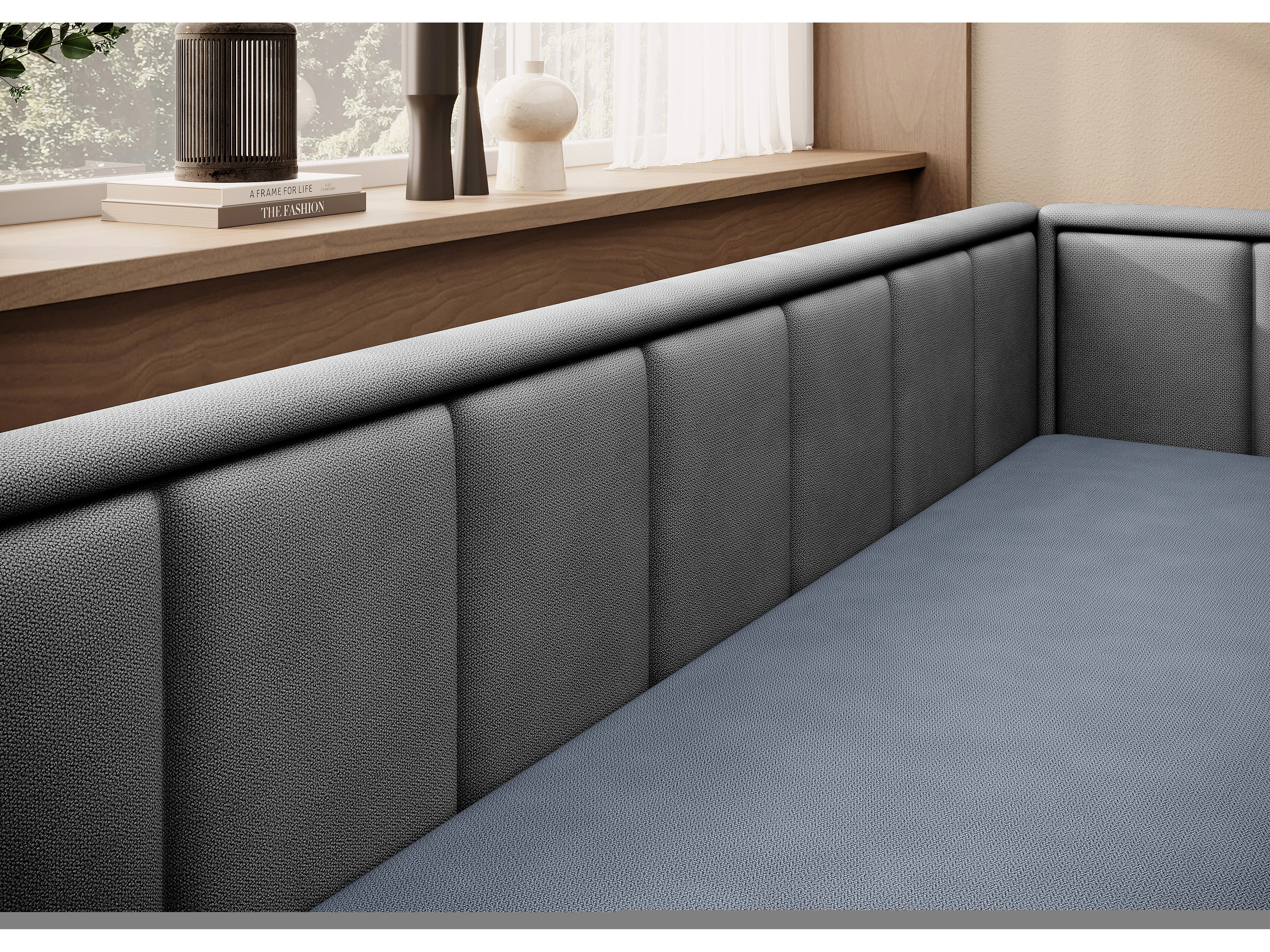 Canapé banquette convertible 3 places tissu doux Figo 214cm-Couleur Gris clair-angle droit