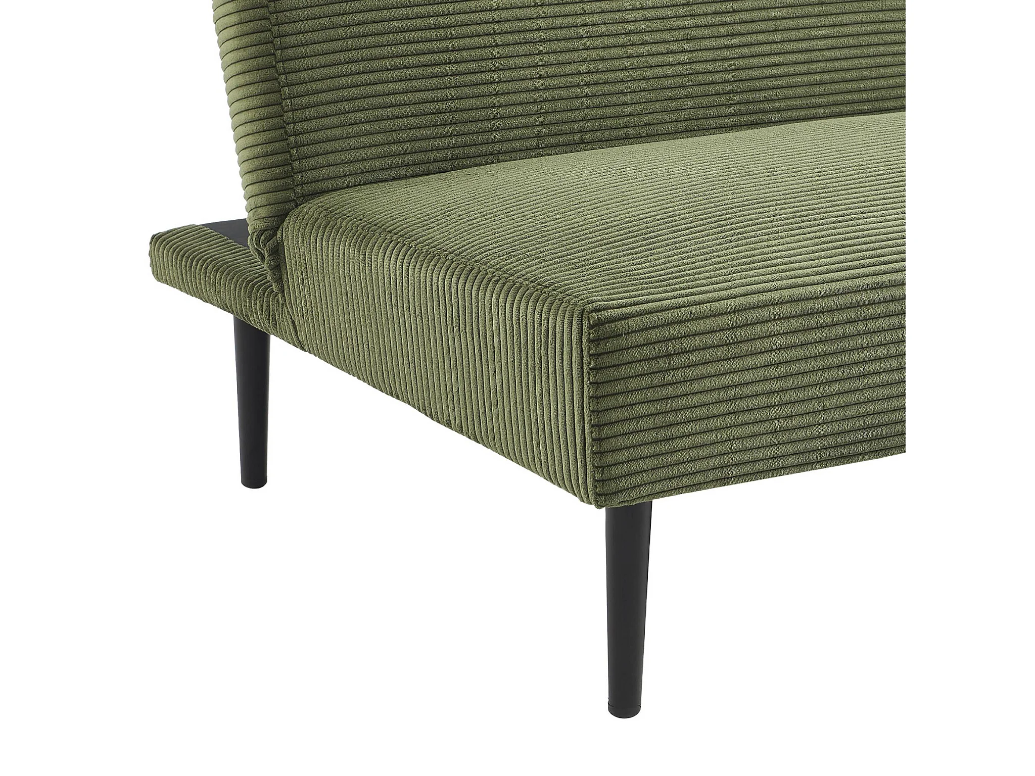 Canapé banquette convertible 3 places velours côtelé kaki piétement métal L 180 x P 100 x H 74.5 cm - Max