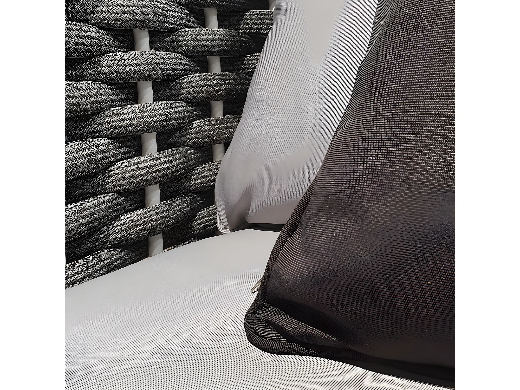 Canapé bas de jardin 3 places en aluminium blanc, tressage gris - RISE
