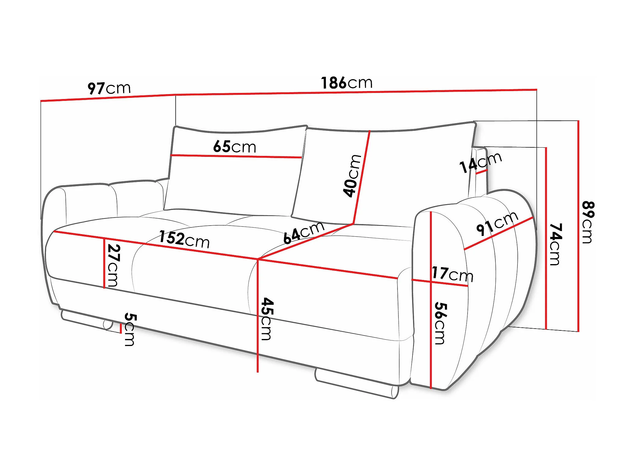 Canapé Camden 102, Rouge, 186x97x89cm, Tissu, Pieds: Plastique