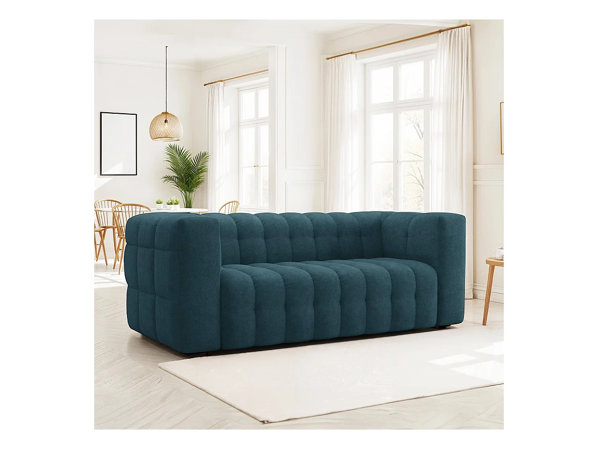 Canapé capitonné 3 places en tissu chenille bleu foncé - Cester