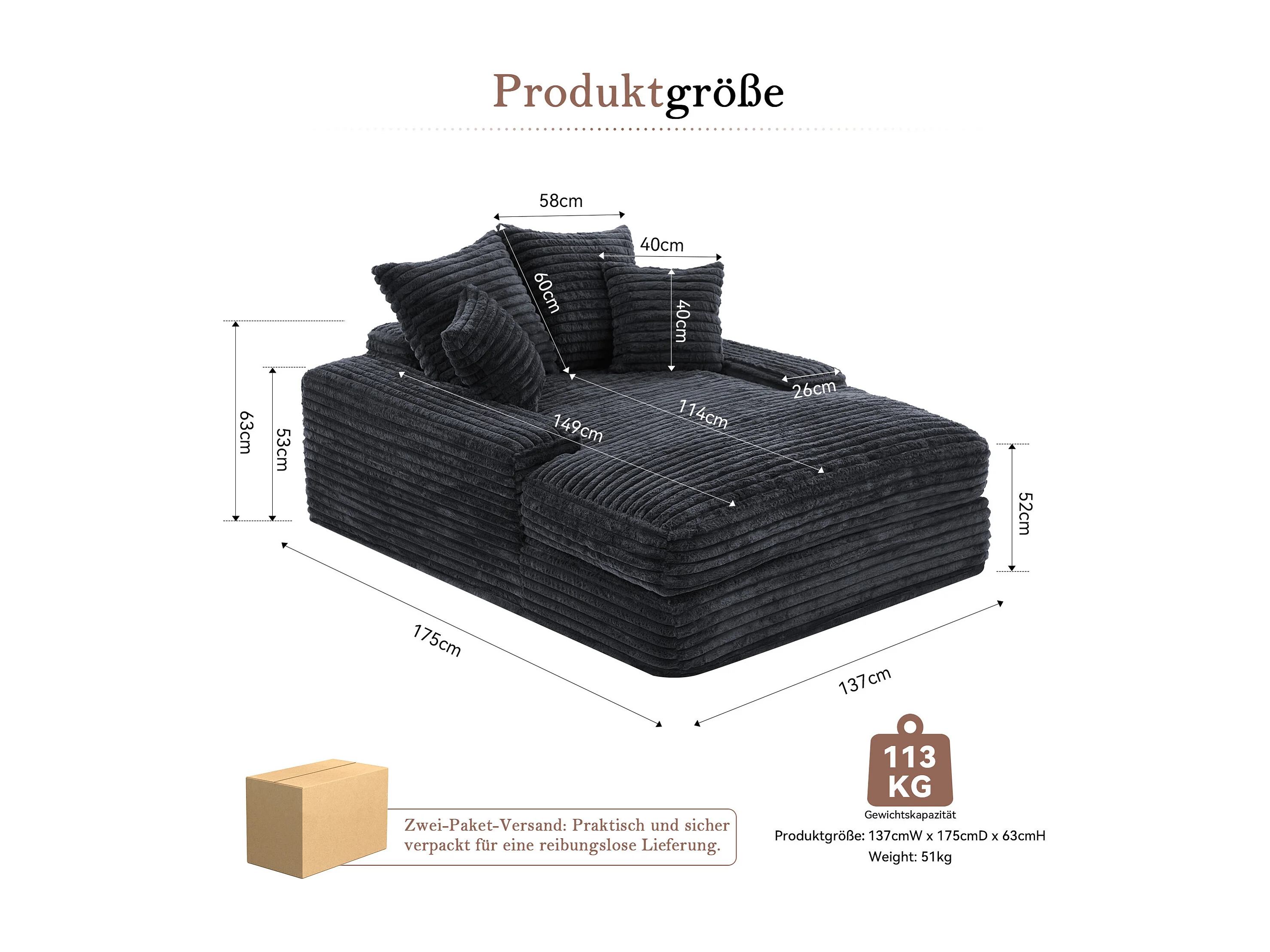Canapé capitonné, canapé en velours côtelé gris avec dossier et coussins - pour salon et aux chambre
