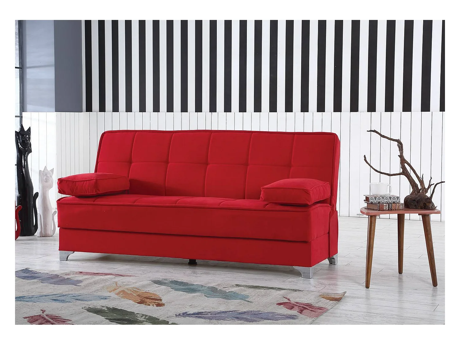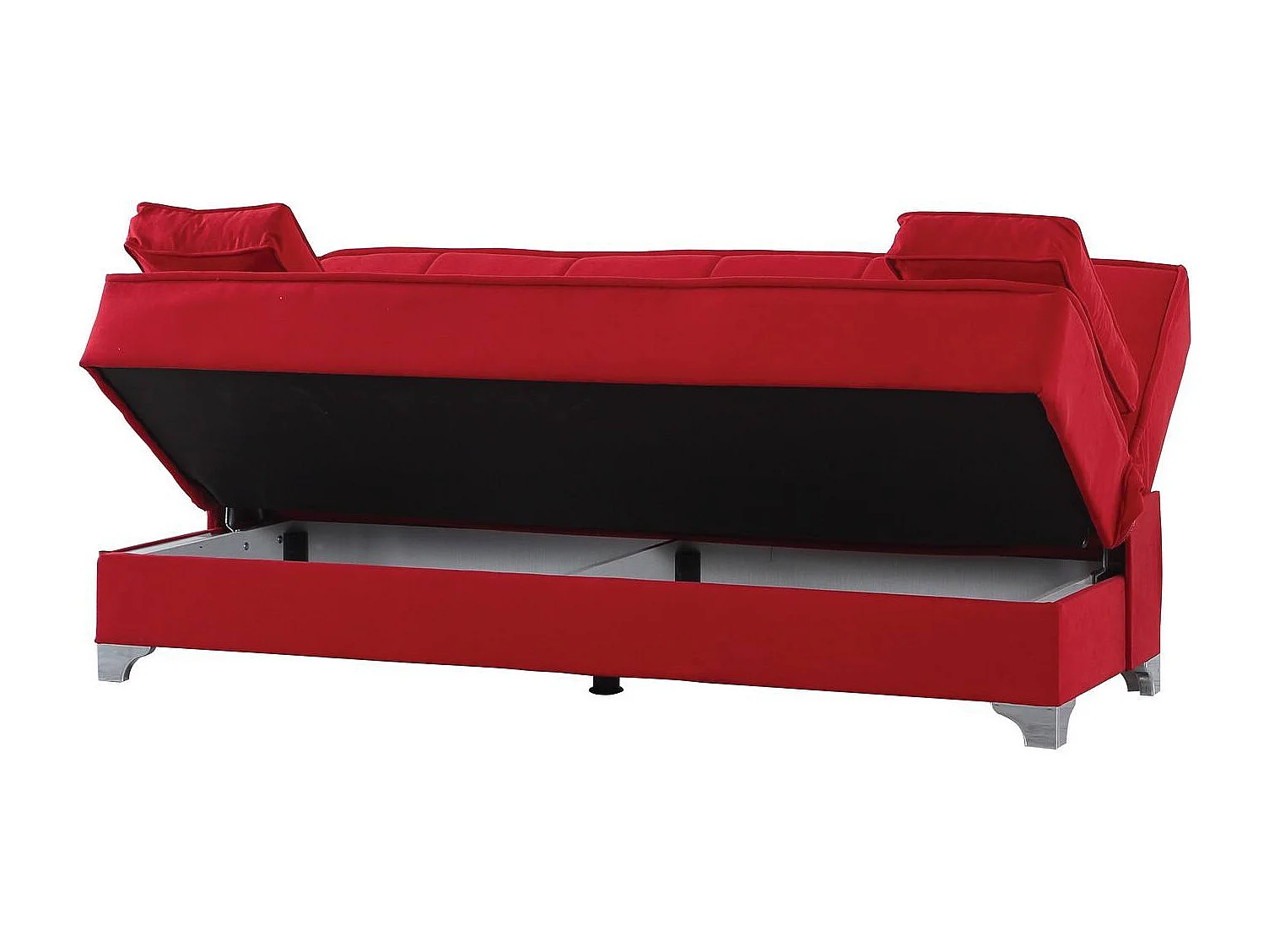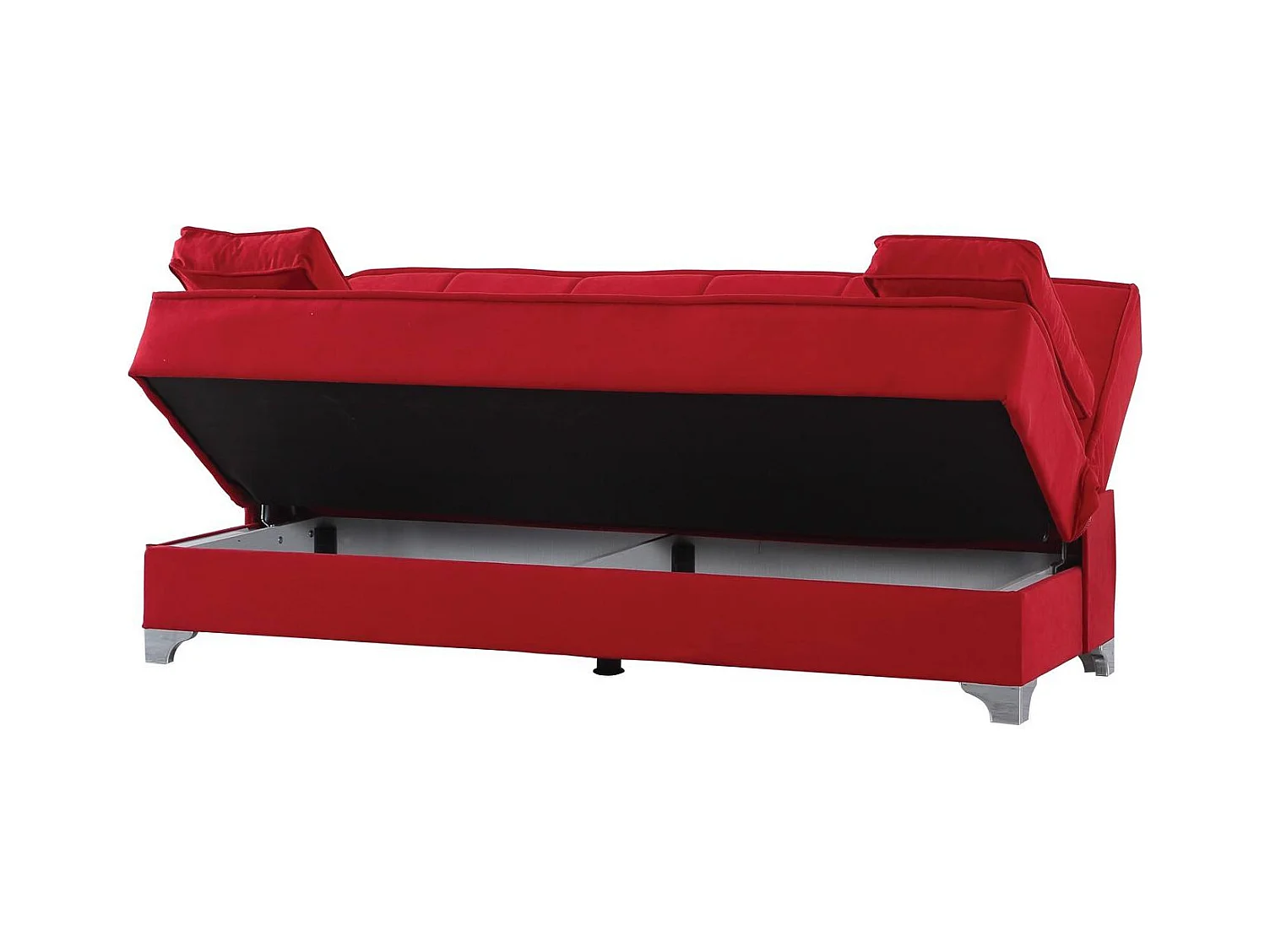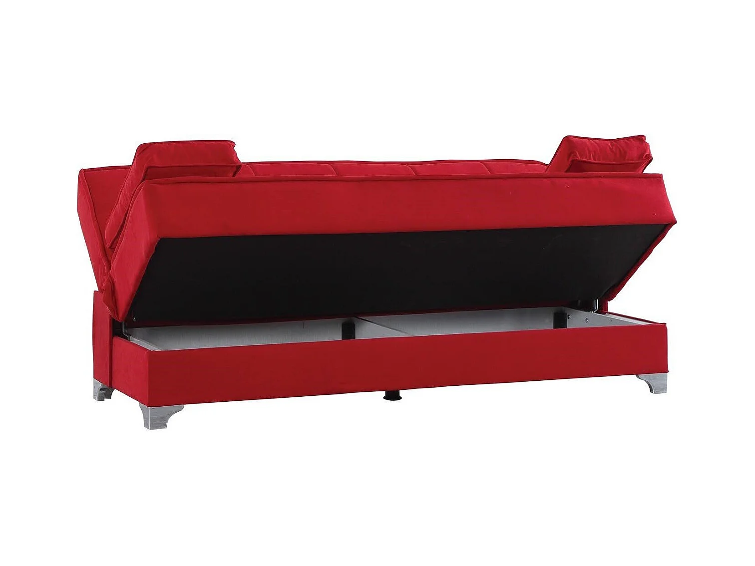 Canapé Carlos, Canapé à rangement linéaire avec 2 coussins inclus, Canapé de salon en tissu rembourré avec ouverture clic-clac, 190x87xh91 cm, Rouge