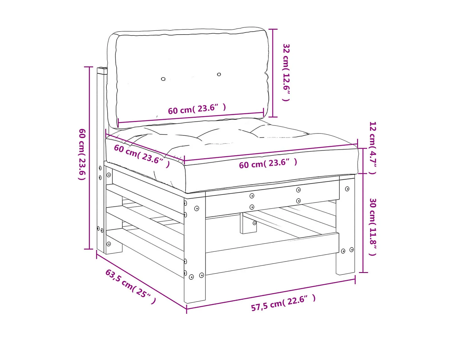 Canapé de jardin accoudoir avec coussin bois massif de pin