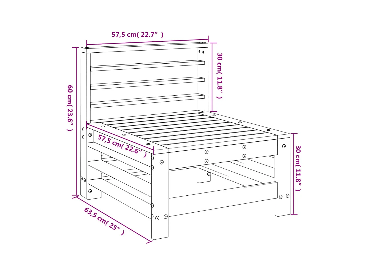 Canapé central de jardin coussins anthracite Bois de pin massif