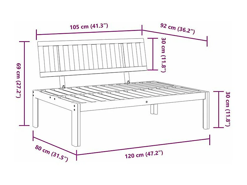 Canapé central palette de jardin bois massif d'acacia