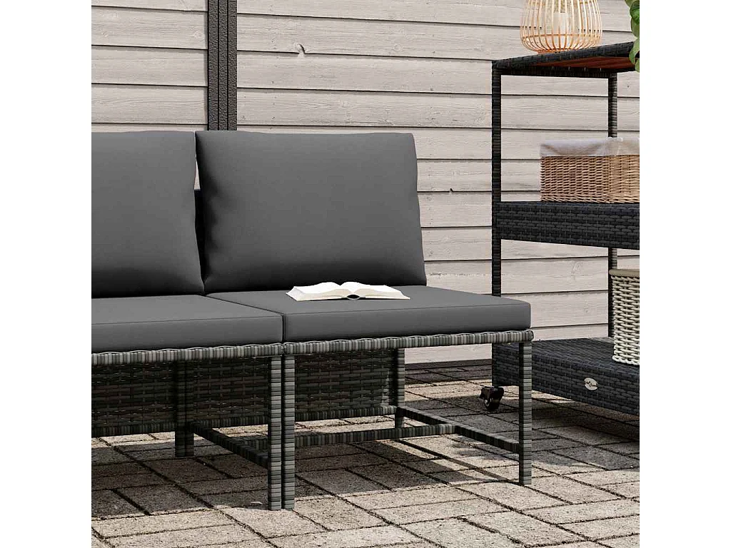 Canapé central sectionnel avec coussins Gris Résine tressée